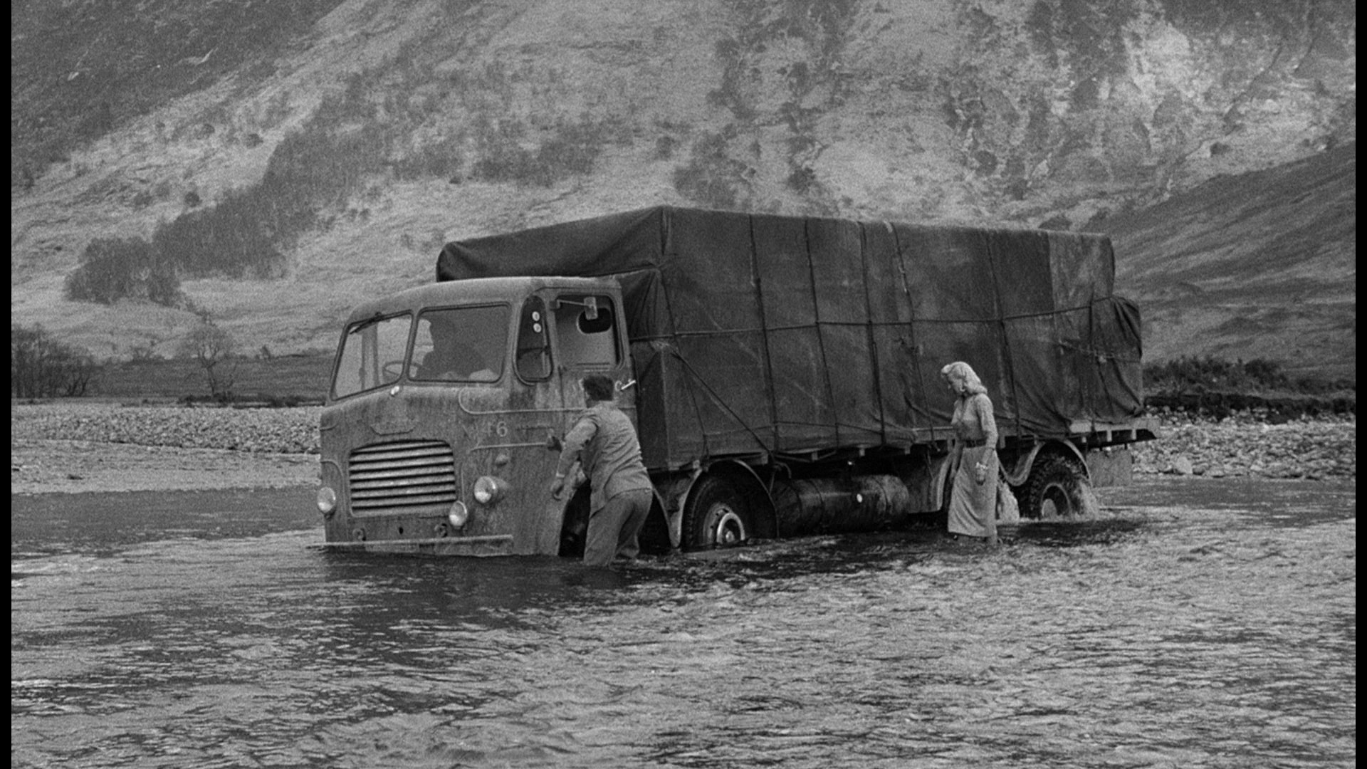 Visually speaking this is definitely the darkest film in the set with an intentionally grainy, sometimes distressed look that gives it a documentary feeling at times. That's reflected in the accurate transfer here which certainly can't be called pretty but does deliver the atmosphere. An insightful new audio commentary with Will Fowler and Vic Pratt covers the frequently rain-choked Liverpool setting, the logistics of the main job, the Frankie Goes to Hollywood connection (yes, really), a surprising detour into borderline Gothic horror territory, and backgrounds on pretty much every actor you see. The 2010 featurette "In for the Long Haul" (9m40s) features interviews with third assistant director Ted Wallis and focus puller Alec Burridge about Dors' often underrated abilities, the process of getting promoted and moved around behind the scenes in the British production system, some noteworthy tricky shots, and the challenges of working with large vehicles in front of multiple cameras. The 1956 short The Long Night Haul (19m40s) is an in-depth