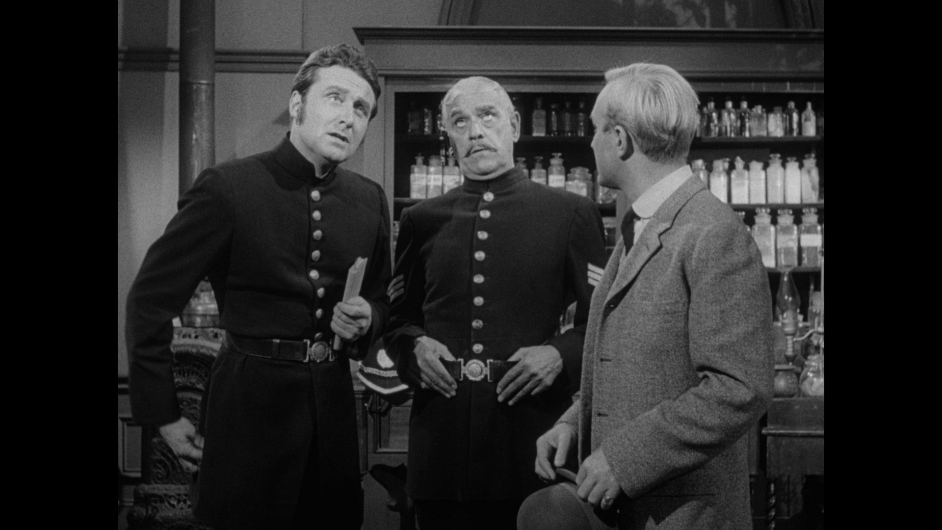 Macnee, proving tricky to convince. The twist ending is actually fairly dark and satisfying, making it a minor but reasonably satisfying entry. Wrapping up disc one is "No Food on the Table" (26m27s), written and directed by Bibas himself and one of the highest points of the series. Karloff gets an especially meaty role here in