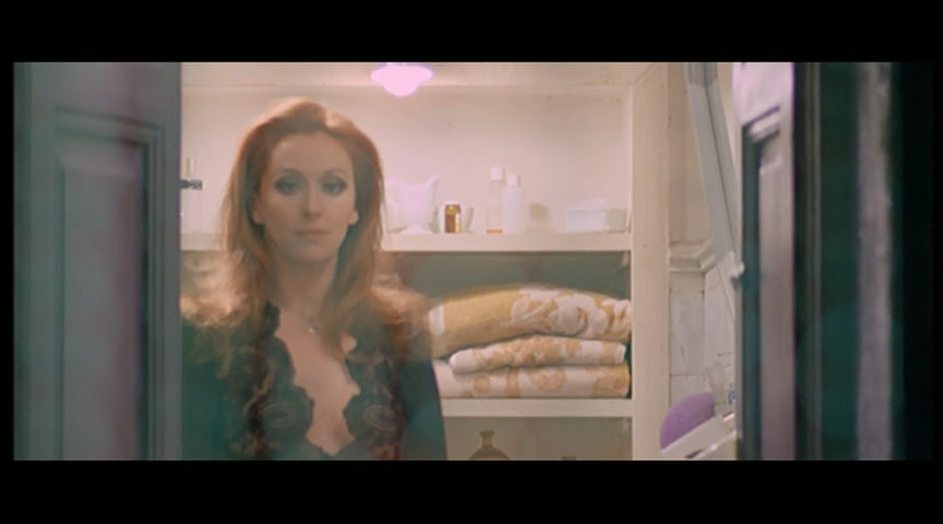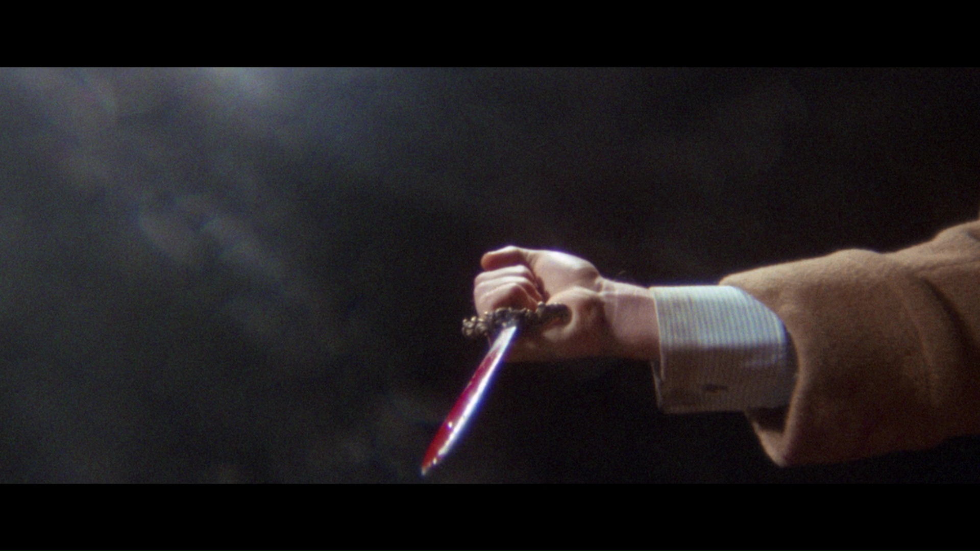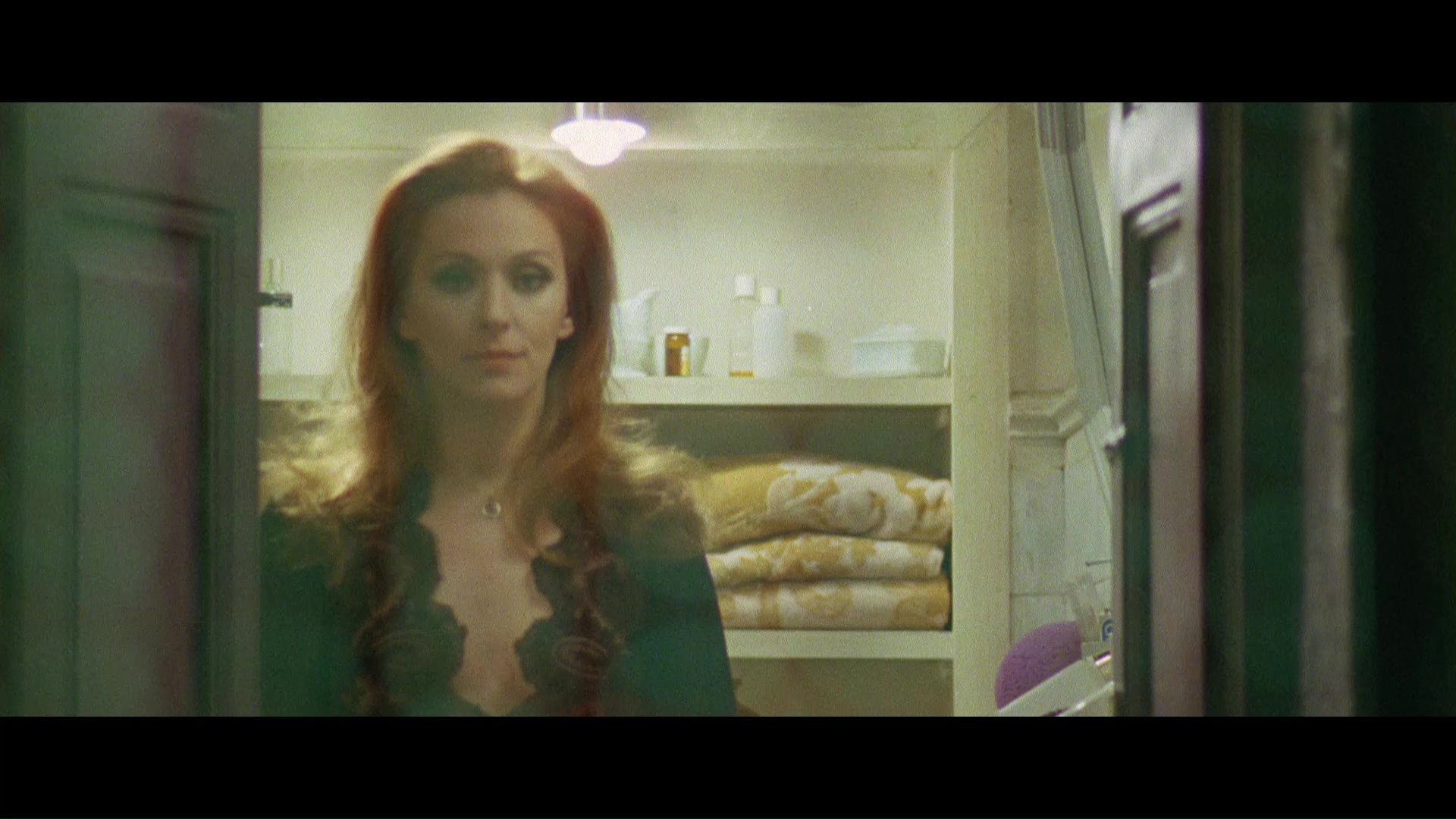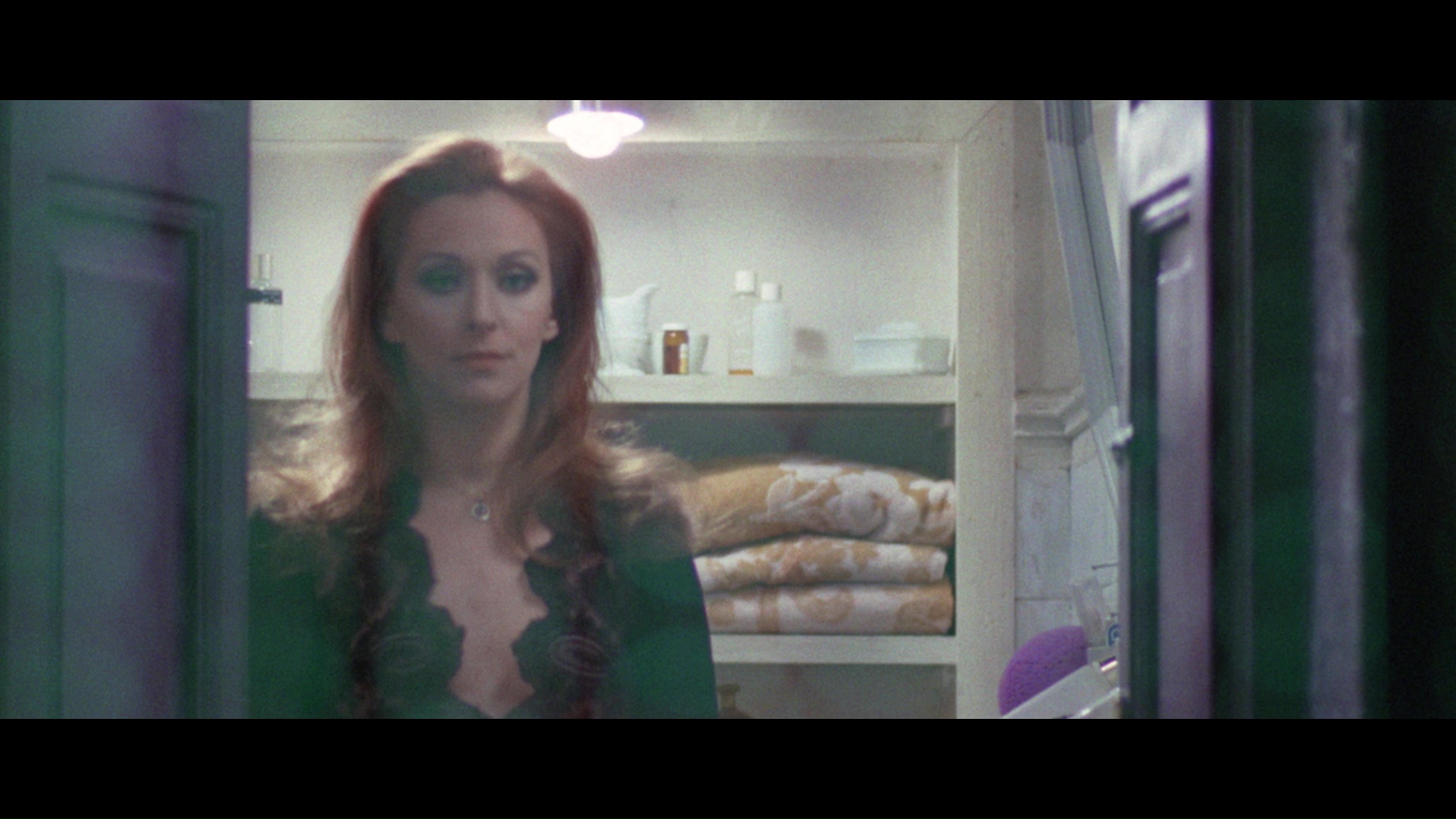 In early 2019, Severin Films brought Martino's thriller to American Blu-ray in both a standard edition and a limited slipcase variant announced during its 2018 Black Friday promotion. Either way you get the Blu-ray and a bonus CD containing the film's original soundtrack, containing the same contents as the superb Digitmovies standalone CD. In the early going the transfer looks very similar to the Shameless one, albeit with better resolved grain and a tad more detail, but as it goes along the differences become obvious as the white balance stays more regulated throughout and minor variations start to turn up in the framing and color timing. Frame grabs seen in the body of this review are from the Severin, with comparison ones below; note the fifth one for perhaps the most striking color difference in the entire film. Both English and Italian options are provided in DTS-HD MA mono, both quite good, with optional English SDH (for the English track) or translated English subtitles provided. The audio commentary here features Ellinger going solo, with a heavy Martino focus (which makes sense as she wrote a book about him!) and thoughts on the film's elements of occultism, folk horror, and eroticism swirling