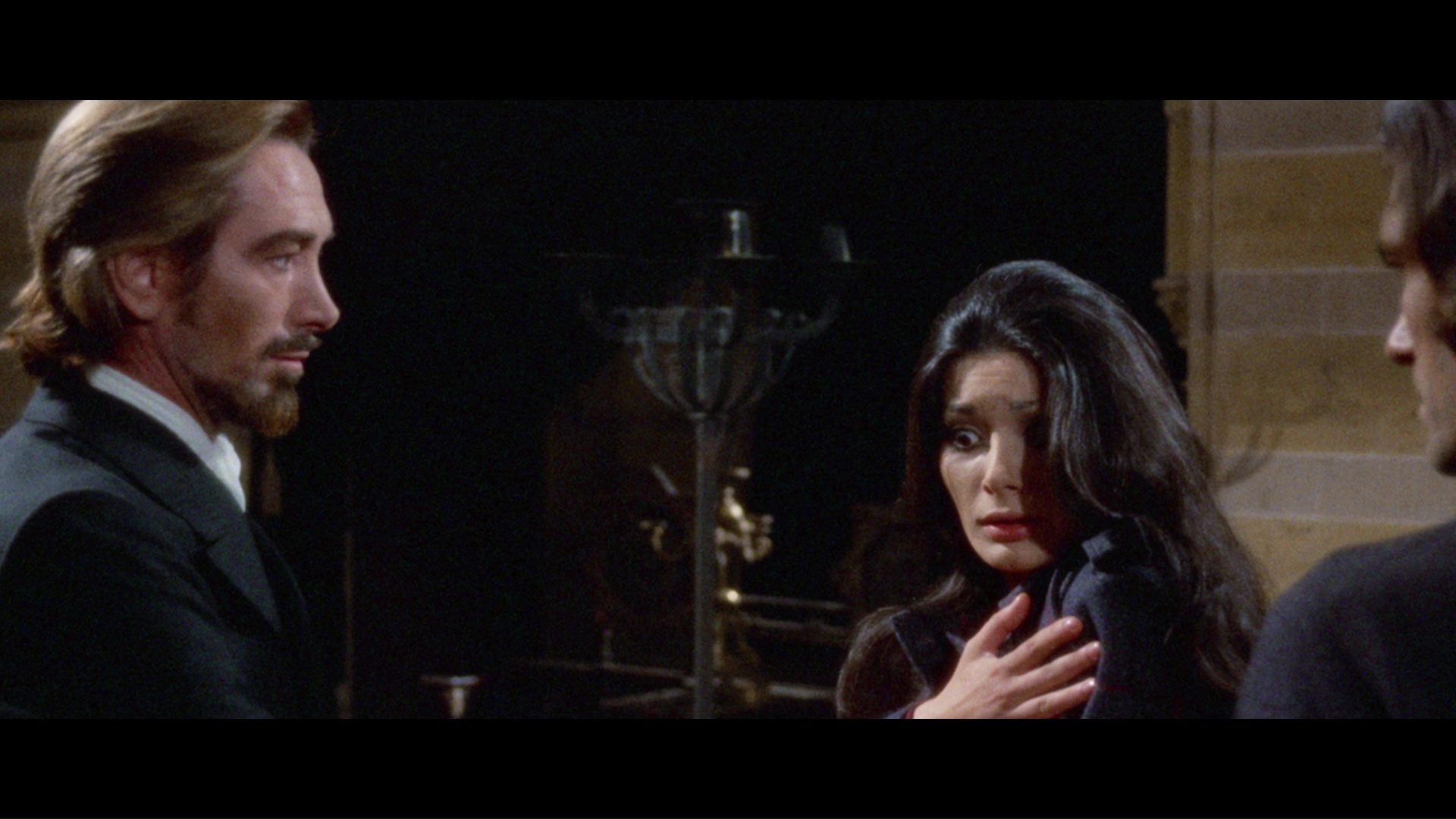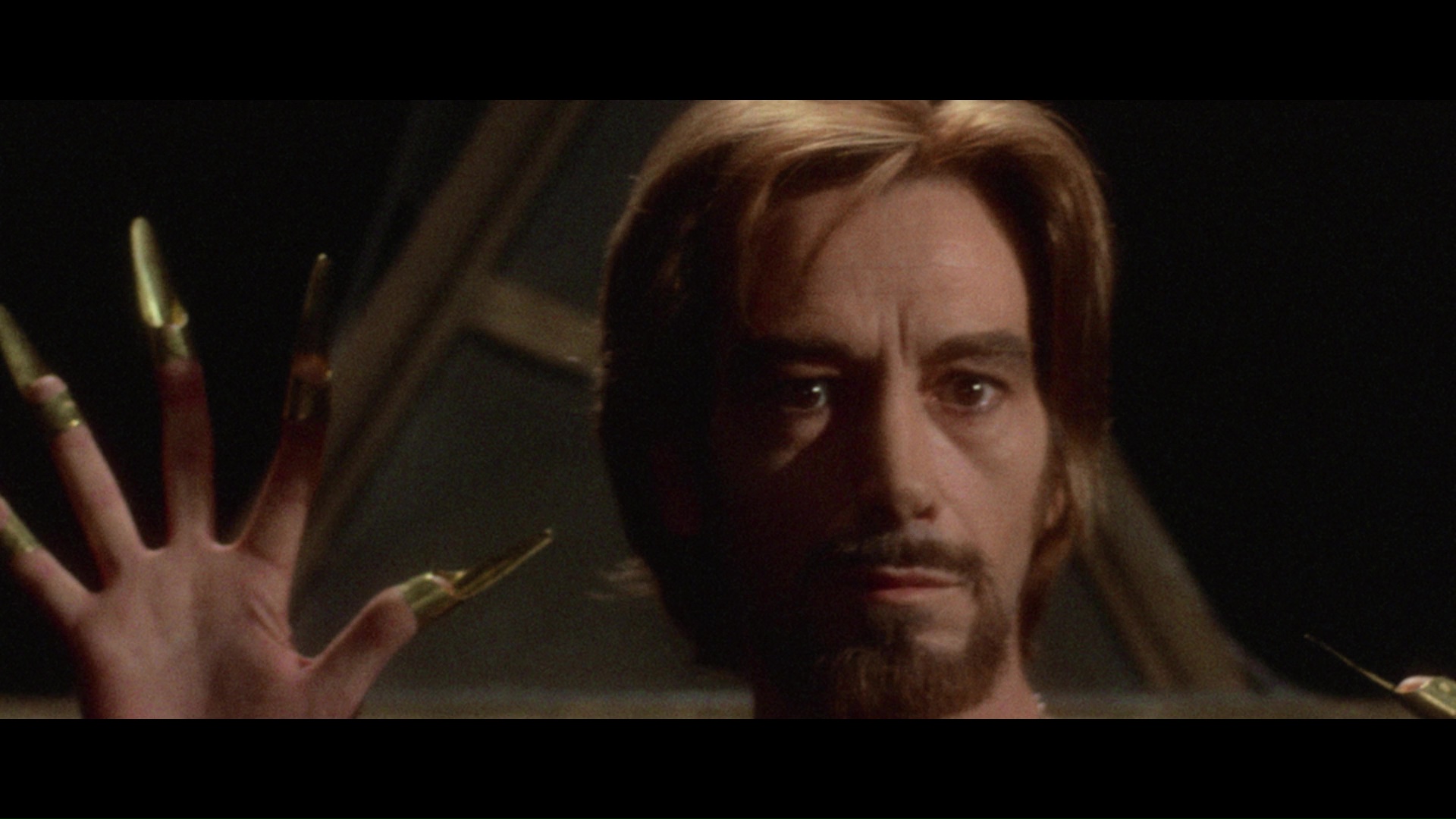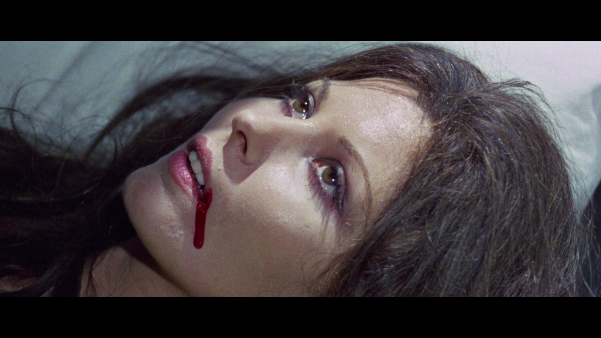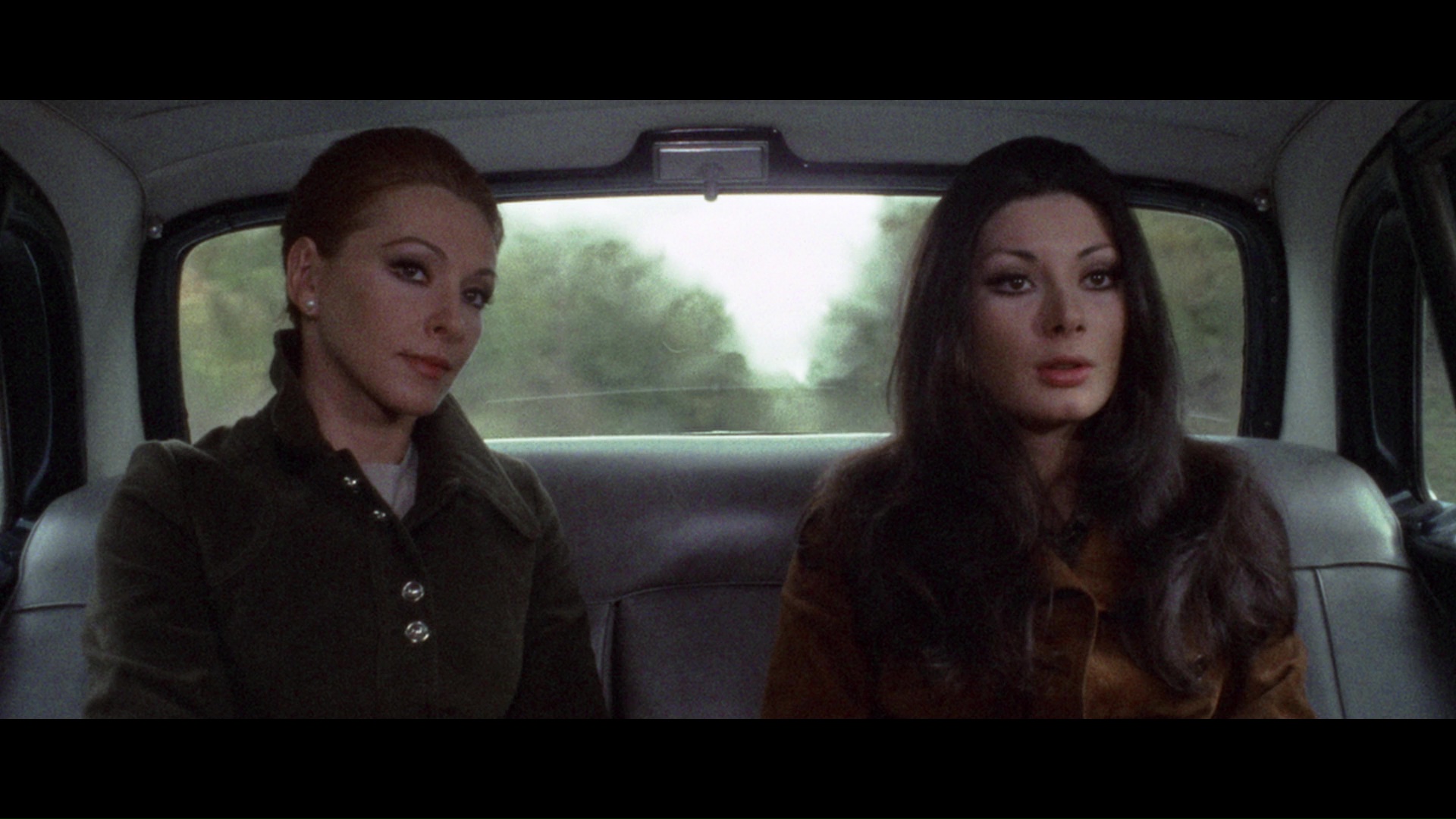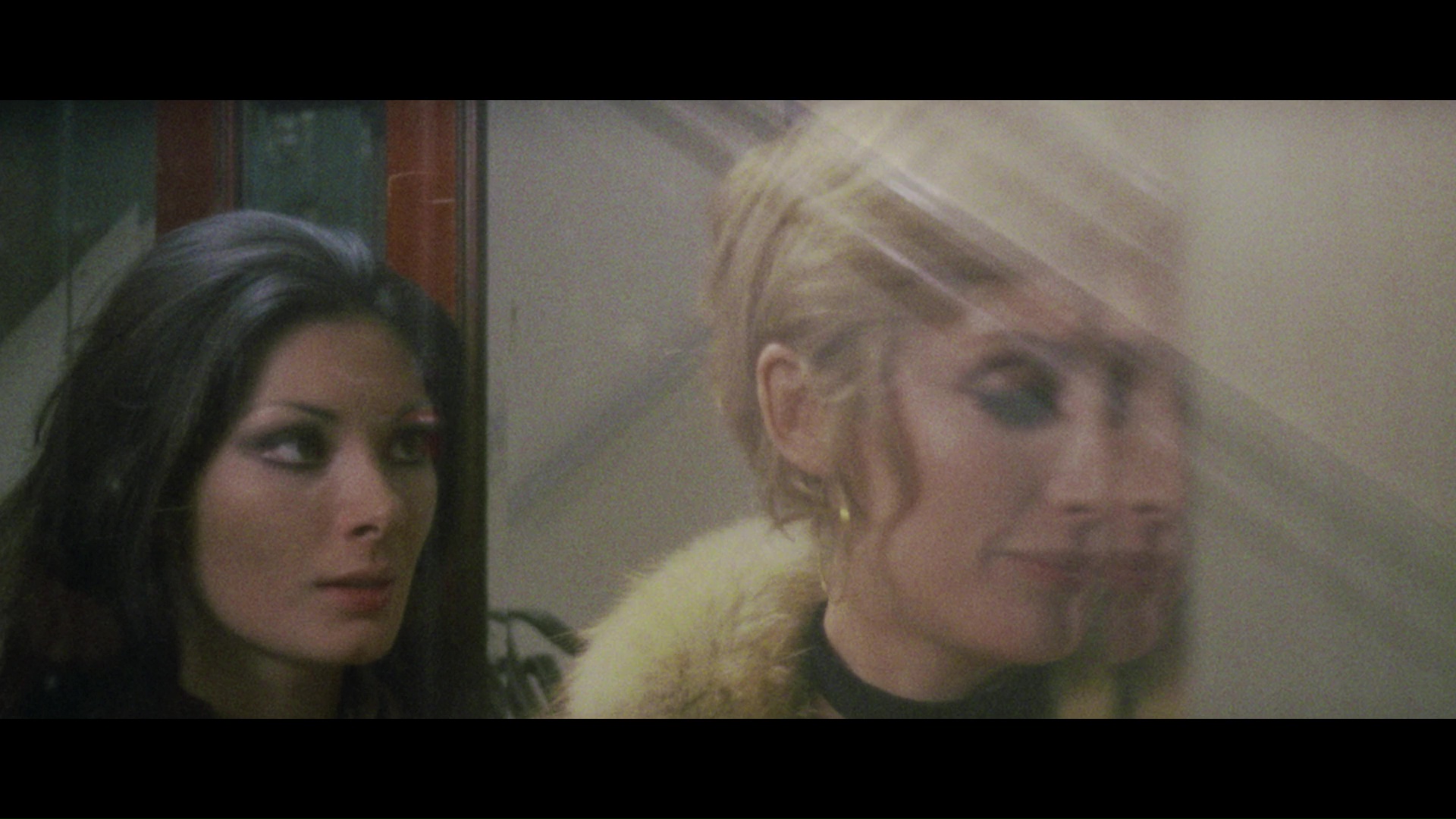 pushes the inherent digitized harsh grain inherent in the original scan (ID'd now with near certainty as scanner noise)a bit too high for comfort. Otherwise it's colorful and detailed enough to pass muster, but it's really only good for those fluent in either German or Italian. More satisfying is the U.K. 2017 Blu-ray release from Shameless, which comes from the same scan but does a better job of dealing with the noise issue and looks less disruptive in motion. Colors are beautifully saturated in that early '70s Italian film stock sort of way, a substantial amount of extra image info is visible in the frame, and the source material bears Spanish credits, oddly enough. Options are wisely provided to watch in either LPCM English or Italian with optional yellow English subtitles, both of which sound fine. The main new extra here is an engaging audio commentary by Kat Ellinger and Samm Deighan from Diabolique magazine and the great Daughters of Darkness podcast, who go into deep detail about the conventions of giallo cinema at the time, probable influences of Lucio Fulci's A Lizard in a Woman's Skin, Fenech's status as a current giallo icon and her dabbling in other areas like sex comedies, Martino's tradesman approach to filmmaking and genre, and much more. It's well worth a spin and especially recommended if you've had trouble before with this film's dreamy, nonlinear plotting. A new Martino interview conducted by Freak-o-Rama, "Dark Is the Color" (32m16s), starts off on familiar ground with the chatty filmmaker covering his start in the movie business and entry into gialli, but it kicks into gear when he gets to this film and explains how he and his producer brother went wild with ideas after