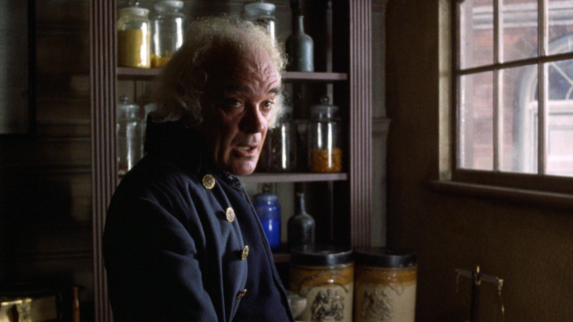you can't help but notice all the make-up putty lines around the ghost's hollow eye sockets! The period detail really stands out here perfectly, and it's a ravishing presentation all around. (And contrary to the back of the packaging,