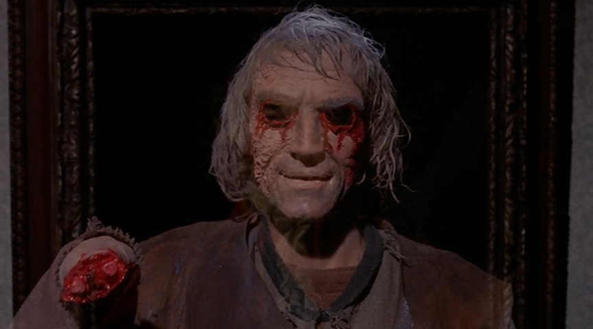 In the late 1700s, Charles Fengriffin (Ogilvy) brings his new bride, Catherine (Beacham), home to his family estate where she immediately gets the shivers when looking at a painting of his brooding ancestor, Sir Henry (Lom). Meanwhile a disembodied, bloodstained hand skulks around the stairways, and during the night Catherine is molested by an eyeless, grinning apparition. No one believes her, of course, even when the domestics are also terrorized by various supernatural manifestations. Catherine's increasingly erratic behavior forces her husband to call on Dr. Whitte (Magee) and ultimately Dr. Pope (Cushing) to unravel the mystery, which is rooted in a barbaric act of upper-class sadism that still taints the Fengriffin name to this day.