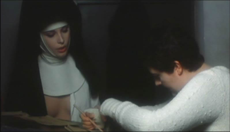 Despite the title and the consistent parade of exposed skin, Behind Convent Walls spends very little of its running time concerned with the nuns actually doing anything blatantly sinful. A couple of darkly shot softcore gropes are included, of course, and there's a showstopping scene involving a very blasphemous wooden self-pleasure device that's considerably more explicit than most audiences expected at the time. However, Borowczyk is more concerned with the playful eroticism bubbling beneath the women's habits that manifests itself in unexpected ways, as when gorgeous Marina Pierro (who went on to become the director's muse in several films after this) inflicts stigmata on herself with a bouquet of roses affixed to a crucifix. Apart from Pierro, the cast consists of several familiar faces from Italian exploitation including Howard Ross (New York Ripper) as a potential fox in the henhouse and a typically exhibitionistic turn provided by Olivia Pascal, star of Vanessa and Bloody Moon.