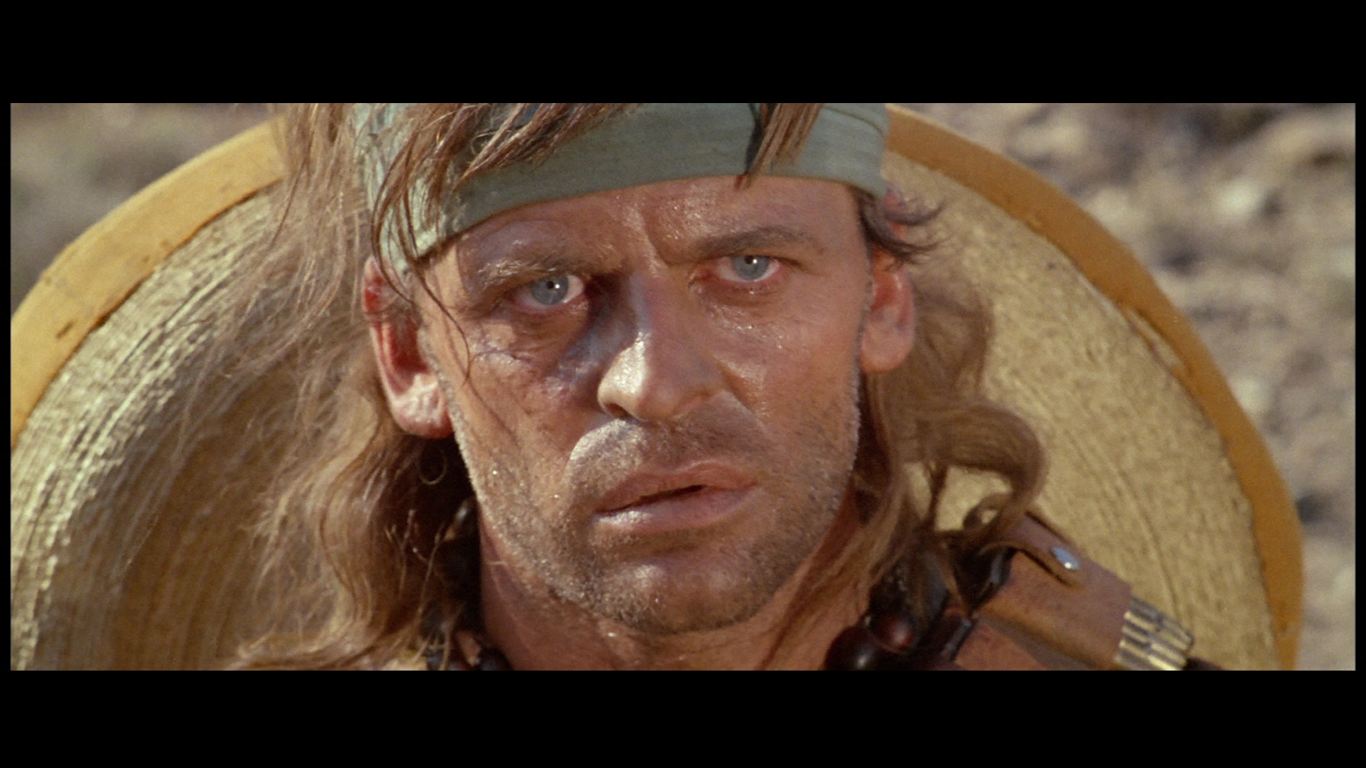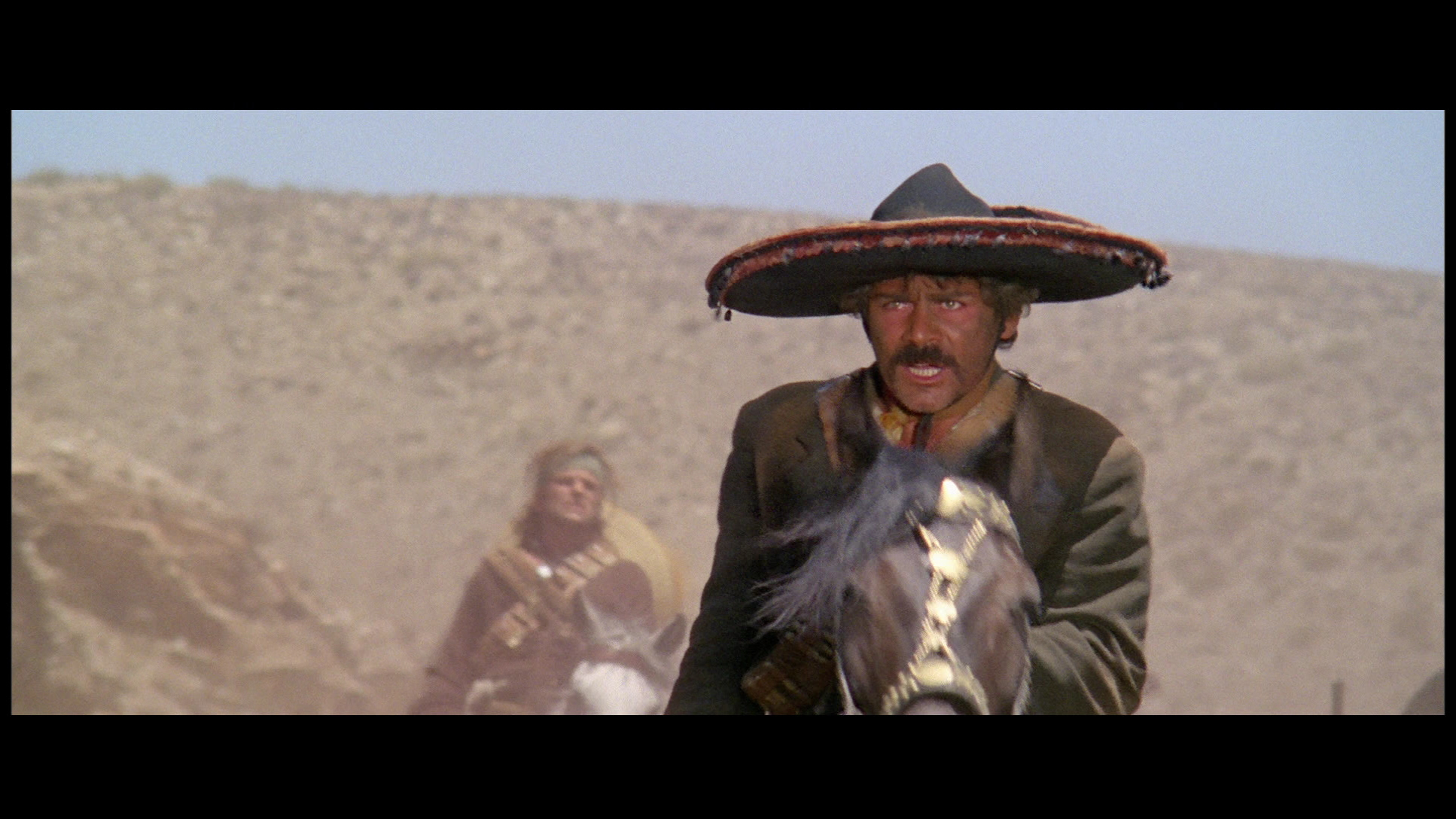 Initially released on VHS by MGM, A Bullet for the General made its debut as one of the Italian releases produced by Bill Lustig for Anchor Bay back in the early '00s. Eventually the title was reissued with the same (very good) 16x9 transfer by Blue Underground, including identical extras (the U.S. and international trailers), and the same video source used for most of the film's international DVD releases as well. However, those are easily laid to waste by Blue Underground's Blu-Ray release, which features not only the 118-minute international English version (El Chuncho, Quien Sabe?) but the very different U.S. version as well. The previously released English dub has always been something of an annoyance, as it features none of the actors' voices and only rarely comes close to being in synch, and the U.S. one -- while not much better -- features some completely different voices including a much more guttural reading for Volonté. The European version is essentially the same in basic content, but right off the bat it's a more expansive and interesting experience as it features a significantly longer opening scene (rather than the abrupt bullet-firing executions most viewers have seen in the opening shot of the U.S. one). The opening credits also play out very differently, with the U.S. one compressing the set up with the train in a less interesting manner. Some other editorial variations occur throughout as well, and the Italian track (which features optional English subtitles) is also included as a very welcome option (easily the best of the bunch). It also includes a few variations of its own; for example, one of the film's final, crucial lines has a completely opposite and more logical reading here.) Some English is also present in the Italian track, including the opening narration and a few verbal mutterings by Chuncho to himself. The aforementioned Damiani interview is included, and though short, it's a nice peek into his thought processes on one of the key '60s spaghetti "westerns." Image quality is at the better end of the scale for an Italian-sourced HD transfer; it has pretty strong detail (especially in close ups), and while some noise reduction appears to have been applied, it doesn't suffer from the glaring blotch-o-vision that plagued some other unfortunate titles. (I won't rattle them off again; that roll call of shame has been pretty well established by now.) Also included are new HD transfers of the American trailer (which looks fantastic and razor sharp) and the international one (which, uh, doesn't).
