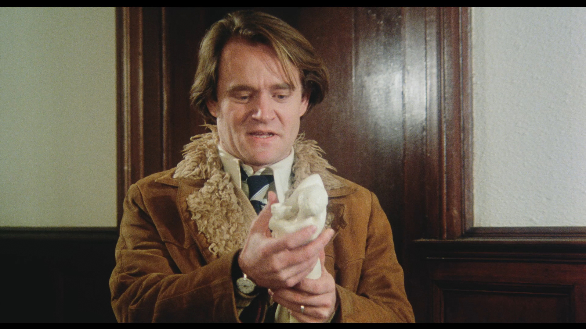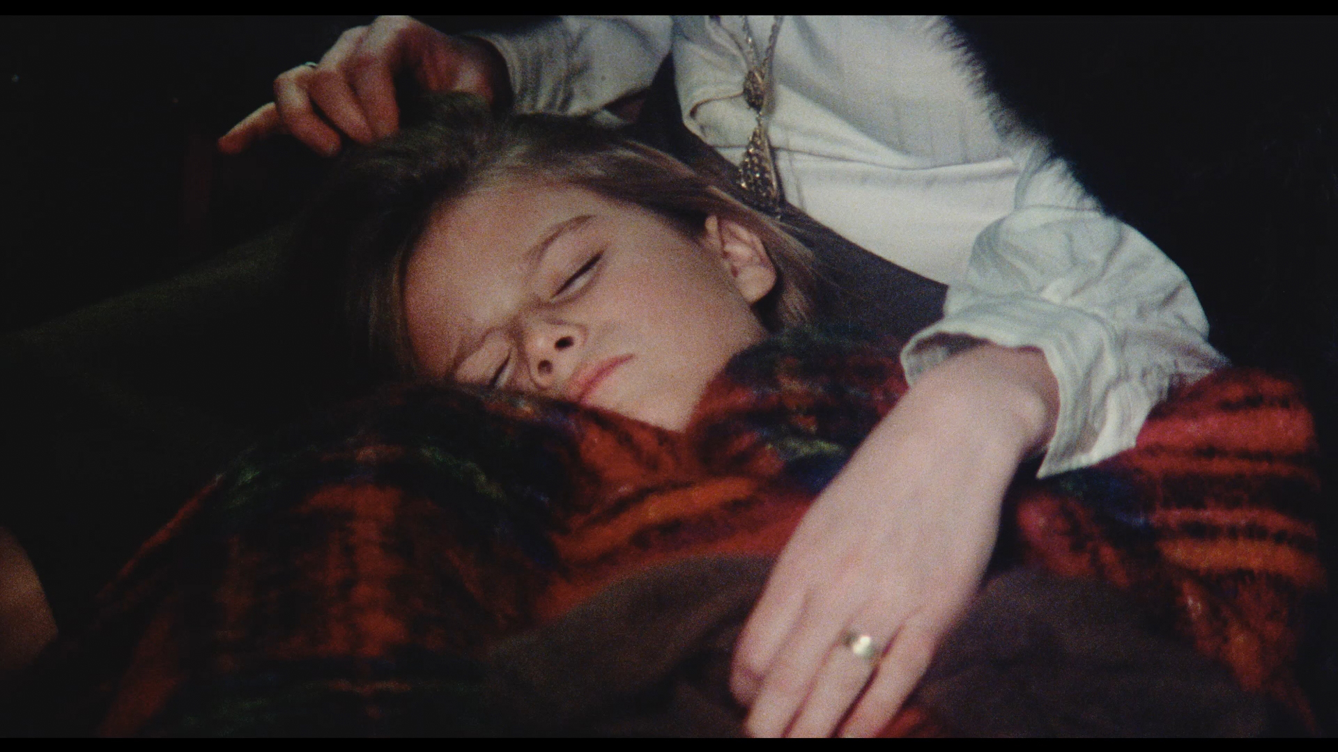 In 2024, Severin upgraded the film to UHD (with a remastered Blu-ray as well) featuring a 4K scan from "the recently discovered negatives," and the difference is obvious right away with greatly improved contrast and detail as well as healthier colors, especially reds and skin tones. The occasional damage from the earlier release is gone here as well, and the DTS-HD MA 2.0 English mono track sounds great with the usual English SDH subtitles provided. The UHD and Blu-ray feature both cuts with the audio commentary ported over for the U.S. version as usual, plus the trailer; the Blu-ray also has the Matalon and Allen interviews plus the American Cinematheque intro. Added here are a second trailer and "Cathy's Daddy" (11m57s) with Scarfe, who went on to a very busy North American film and TV career, looking back at making this film early in his career, playing the "straight man" to his young co-star who got all the difficult scenes, and doing other genre projects like an episode of The Ray Bradbury Theater with Drew Barrymore. Definitely not to be overlooked is the new insert booklet featuring hilarious and highly unorthodox new pieces by Barrett and Collins, which should be read without any further description.