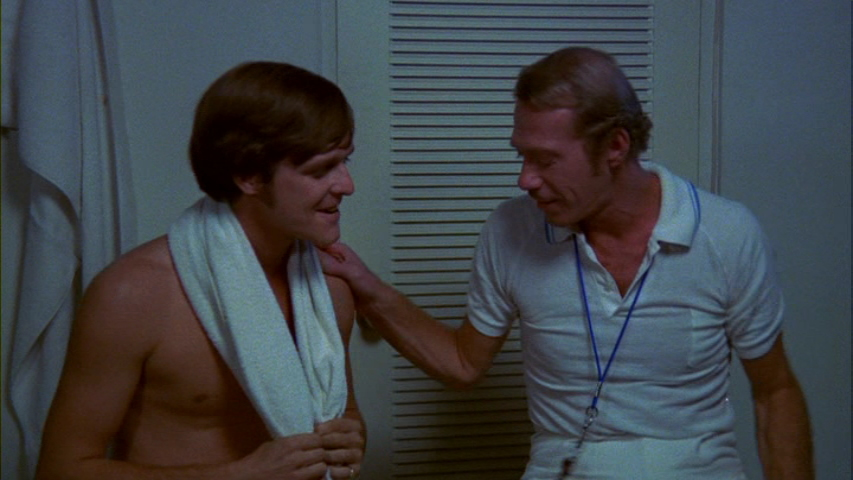 What follows is a cavalcade of flashbacks, sex scenes, and monologues as Gabriella's own life experiences alternate with the new efforts of her friends to help her "get with it." That includes a visit to a seminar called "EROS: Eternal Rights of Sexuality" (and a naked fantasy sequence in the Garden of Eden), including a sex ed demonstration by exploitation vet Linda York (Chain Gang Women), followed by romps on a yacht with a rich older man (Missile to the Moon's Clarke), bickering with a dimwitted surfer, and trippy music montages, plus shots of Gabriella's dad cruising for action in Hollywood (hi, Tower Records!). It's all insanely entertaining, though really nothing is more surprising than the film suddenly switching gears twenty minutes in for an appearance by a guy named Xavier (Lawrence) who explains how self-gratification ruled his life and he became gay after being molested by his creepy phys ed coach-- played by the film's producer, Jack Mattis!