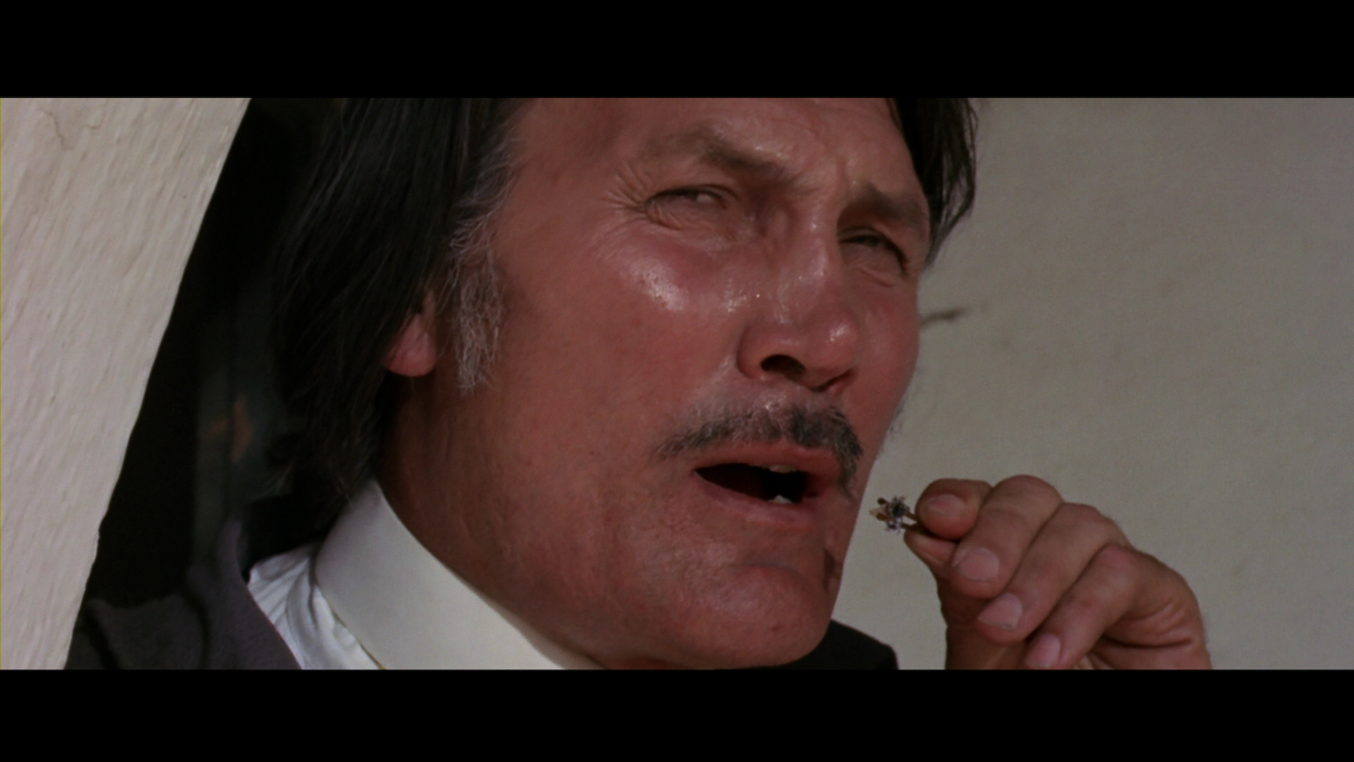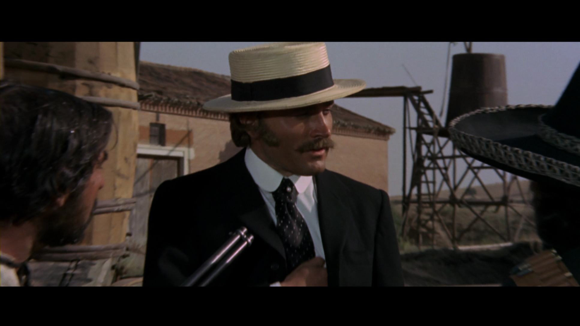 Not surprisingly, the film received a Blu-ray upgrade from Blue Underground in 2014 with a nice extra perk: the 115-minute English-only version or the 118-minute Italian version (with the same English hybrid or Italian-only with subs options). Image quality between the two is very similar with identical framing, though the English-only version is a slight notch paler with slightly less intense colors. This isn't the most razor-sharp film in the world thanks to all the heavy sunlight, diffusion, dust, and smoke pervading many scenes, but the transfer looks pleasing in motion with vibrant colors and far more detail than the DVD. All audio options are DTS-HD mono and sound great. Video extras include the same featurette and the Italian and English international trailers, two TV spots, and a poster and stills gallery. The big new extra here is an audio commentary on the longer cut by western writer C. Courtney Joyner and Westernpunk's Henry C. Parke, who earlier performed the same duties for The Big Gundown and The Grand Duel. As usual they're very well versed in the genre and manage a nice balance of factual info about the players behind and in front of the camera and drawing out some of the relevant themes and historical tidbits that distinguish this among the pack of other spaghetti westerns. It's a very solid track for fans of this, one of the quirkiest and most entertaining entries from the genre's golden age.