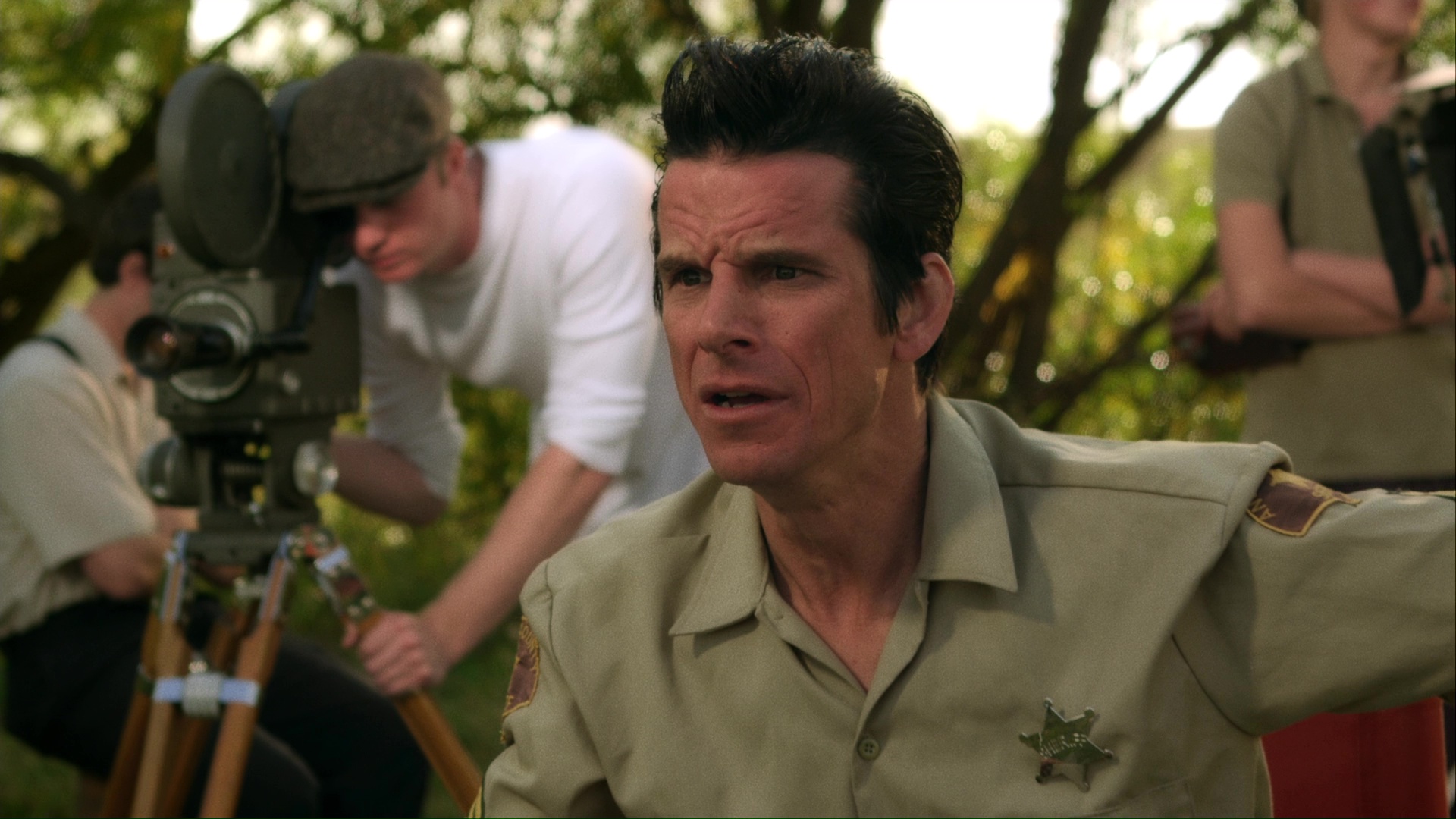 interspersed with dramatic reenactments, and even a bit of animation, as the creation of the film (some of it on the Spahn Ranch before Manson notoriety) is contrasted with Nelson's real-life hell for both himself and others, especially his much-abused wife, Lois Wiseman (Thomas).