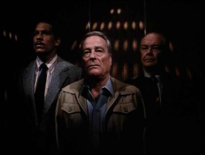 Following a creepy Steadicam opening sequence (probably inspired by The Shining) in an empty house which hurdles toward a sinister darkroom, each episode features our turtlenecked host, James Coburn, wryly introducing tales of terror and the uncanny. The first episode contains two tales; in "Closed Circuit," an over-the-hill newsman played by Robert Webber is offered the opportunity to keep his livelihood if a digital double takes his place, and "Stay Tuned, We'll Be Right Back" is best known as the "inspiration" for the film Frequency as a man who lost his father in World War II discovers that his son's crystal radio can communicate with the German ship that killed his dad. Both feature nasty little twist endings, not to mention interesting supporting casts including Richard Anderson, John Randolph, and Joanna Miles. The first episode was also directed by Halloween II's Rick Rosenthal at the height of his horror career. It's a solid start, but the real fun begins with episode two. In "The Bogeyman Will Get You" (adapted by Psycho's Robert Bloch from his short story), young horror fan DiDi (Quinn Cummings) comes to believe that the handsome new guy in town hanging around her older sister (Helen Hunt) might be a vampire. The short but incredibly potent "Uncle George" (an original tale directed by Rosenthal) features Claude Akins and June Lockhart as an aging couple whose livelihood depends on the money being paid to their ailing Uncle George. When he passes away, they decide to persuade an old, impoverished guy named Dixie (Dub Taylor) to take his place... with a little catch. Both stories are excellent and atmospheric, with terrific shock endings that still pack a punch. Episode three, easily the most infamous of the series and the one that landed it in serious hot water, kicks off with the quick but nasty "Needlepoint," in which an old voodoo-practicing woman (Good Times's Esther Rolle) uses her skills to exact revenge on the irresponsible jerk (Welcome Back Kotter's Lawrence Hilton-Jacobs) who drove her daughter to suicide, but things don't exactly go as planned. Then the great Ronny Cox takes center stage in "Siege of 31 August," adapted from a story by Night of the Hunter's Davis Grubb, as a father determined to beat a military career