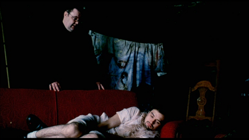 it wasn't until the runaway success of 1992's Basic Instinct that the big and small screens were flooded with countless titles featuring double crosses galore, steamy sex scenes, and sweltering sax music. The ground that had been laid (ahem) with films like Fatal Attraction and 9 1/2 Weeks was suddenly yielding rich crops for hungry producers who could stack video shelves with anything starring Shannon Tweed, Tanya Roberts, and often baffled actors like Jan-Michael Vincent and Andrew Stevens. Scorpion Releasing revisits those golden days of illicit box art and steamy cable programming with a trio of separate DVD releases from the era's golden age, ranging from 1994 to 1996. First up we have the only one granted a full-on special edition and easily the least traditionally "erotic" of the lot, Dark Side of Genius, which was given a VHS release by Paramount with the tagline, "Creating an erotic masterpiece can be murder." (Weirdly, the same year saw another painting-themed erotic thriller called Fleshtone, which confused more than a couple of video store customers.) What we actually have here is a very dark film -- literally, as it's shot in vast pools of inky blackness that look like a cracked homage to Derek Jarman, Rinse Dream, and Roberta Findlay. Brent David Fraser, a character actor from films like Wild at Heart and the fake sequel Wild Orchid II: Two Shades of Blue, wrote a couple of songs for the soundtrack and stars as Julian Jons, an eccentric painter who's been locked away for a few years after supposedly bumping off one of his models. Now he's back on the street and ready to pick