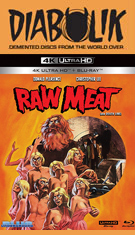On the featurettes side, Sherman returns and is joined by executive producers Jay Kanter and Alan Ladd Jr. for "Tales from the Tube" (18m51s), which starts Death Lineoff with an expanded version of a Jonathan Demme anecdote heard in the commentary and goes through some of the ins and outs of the film's production, including an attempt to wrangle in Marlon Brando! "From the Depths" (12m41s) features David Ladd and Maslansky having a cozy chat about the Ladd family connection that was instrumental in getting the film made, the ice-cold shooting conditions, the intimidating challenge of acting opposite Pleasence, and lots more. Finally, Armstrong gets his turn in "Mind the Doors!" (15m36s), recalling how his segued from an ill-advised stint in the military to acting which led to theater, this film, and subsequent projects including How to Get Ahead in Advertising and lots of Death LineBritish TV. Also included are both the Death Line and Raw Meat trailers, a trio of U.S. TV spots, two radio spots, and a 110-image gallery of extensive posters and stills including the ballyhoo-crammed American pressbook and some pretty wild double features and international designs. The reversible art features designs for both titles, and an enclosed booklet features a new rundown of the film's production history by Michael Gingold and a Pleasence bio by Christopher Gullo.