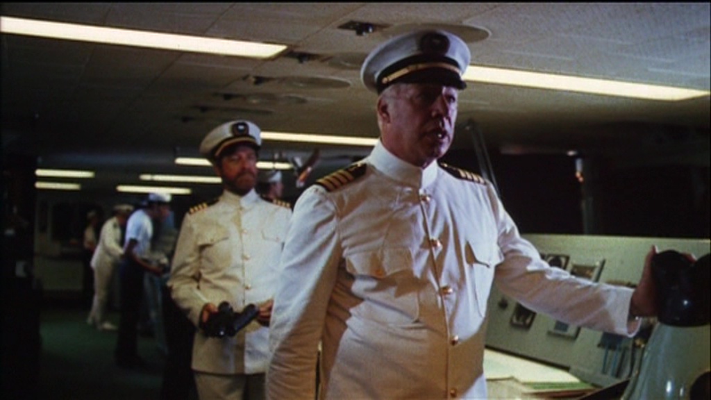 When a luxury liner filled with partying guests gets blind sided by another boat, the survivors of the disaster manage to climb aboard a lifeboat. Out of the fog comes the same ship that caused the incident, a decrepit and foreboding vessel that still offers what may be their only chance of survival. Captain Ashland (Kennedy, cashing a check in between Airport and Naked Gun movies), second commander Trevor (Crenna, hot off of The Evil), and Nick (Mancuso, not so hot off of Nightwing) are among the unlucky few who decide to hang out on the ship until rescue arrives. Soon Ashland is slipping on a sinister black military uniform and acting very suspicious, while one by one, the passengers are getting bumped off. As you can probably tell from the title, this ship has some serious nasty plans in store.