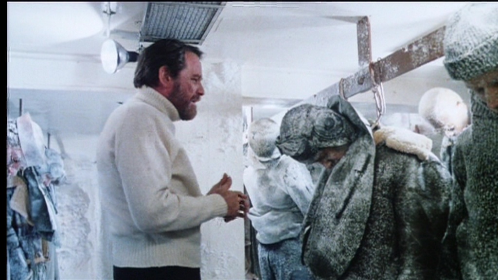 Early home video versions of Death Ship were a lousy bunch, beginning with the muddy Embassy VHS release and continuing to DVD with a very murky Japanese release. The 2007 UK version from Nucleus fared better thanks to fresher source elements and a much-touted brighter presentation of the shower scene, showing off some anatomical blood-smeared details obscured on prior editions. It also has the first batch of substantial extras: an audio commentary with Rakoff and frequent extras contributor Jonathan Rigby, a fun "Stormy Seas" featurette (41ms15s) with Rakoff, Hill, Kennedy, and Mancuso, a batch of minor deleted footage (mostly dialogue), selections from Hill's original story, three trailers, and a poster and stills gallery. Optional English subtitles are also included.