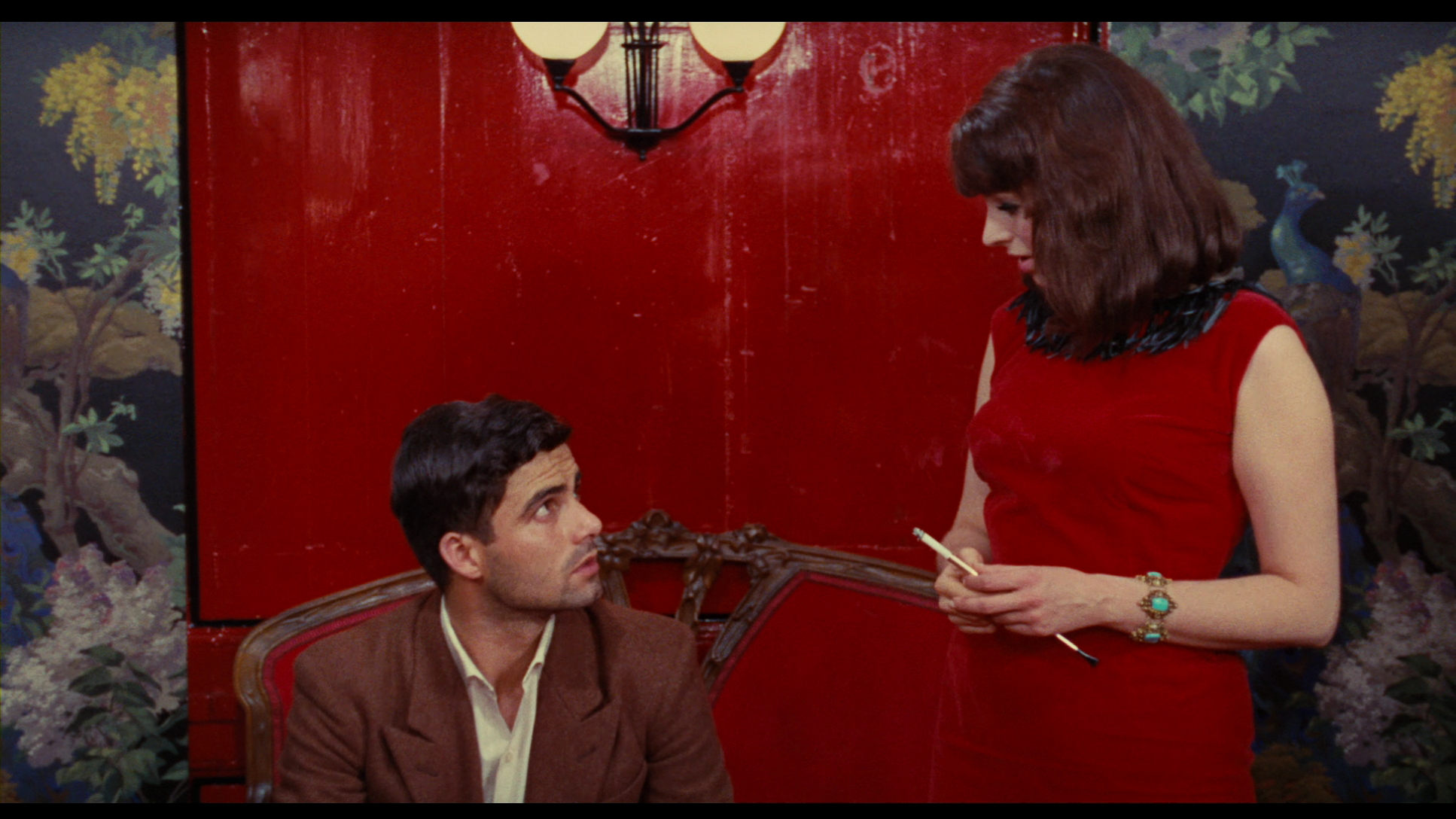 Subdued, tender, and intriguing, the film moves quickly through its 90-minute running time and is beautifully filmed, with Mendelssohn music coursing delicately through the soundtrack. This rarely seen gem makes its home video debut in Arte's box set and looks fine in this new film transfer in the original full frame TV aspect ratio. The same disc also contains Demy's first narrative work, a 1957 half-hour short version of Jean Cocteau's play, Le bel indifferent. Reputedly written for Edith Piaf, the spare drama charts the emotional torment of a woman known only as "C" (Jeanne Allard) waiting in a red-saturated hotel room for the arrival of her "indifferent" lover. When he shows up, she doesn't exactly find the happiness she expects to find. A great find for Cocteau and Demy-philes alike, it's a stylized and striking character study that stills plays beautifully. Agnes Varda contributes chats about both of the films on this disc in French only.