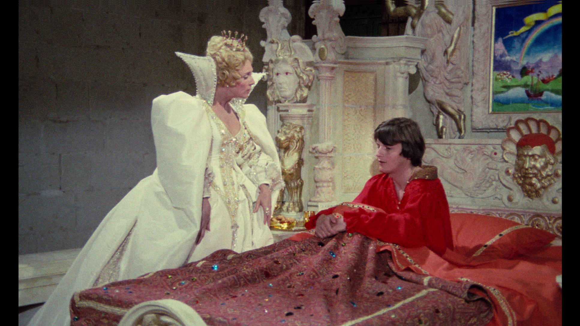 A delightfully odd and visually stunning experience, Peau d'âne features the same vivid Demy colors, costumes and Legrand musical numbers, but the sweeping camerawork has been replaced here with a more classical approach, framing almost everything in storybook-style medium shots. The sets are