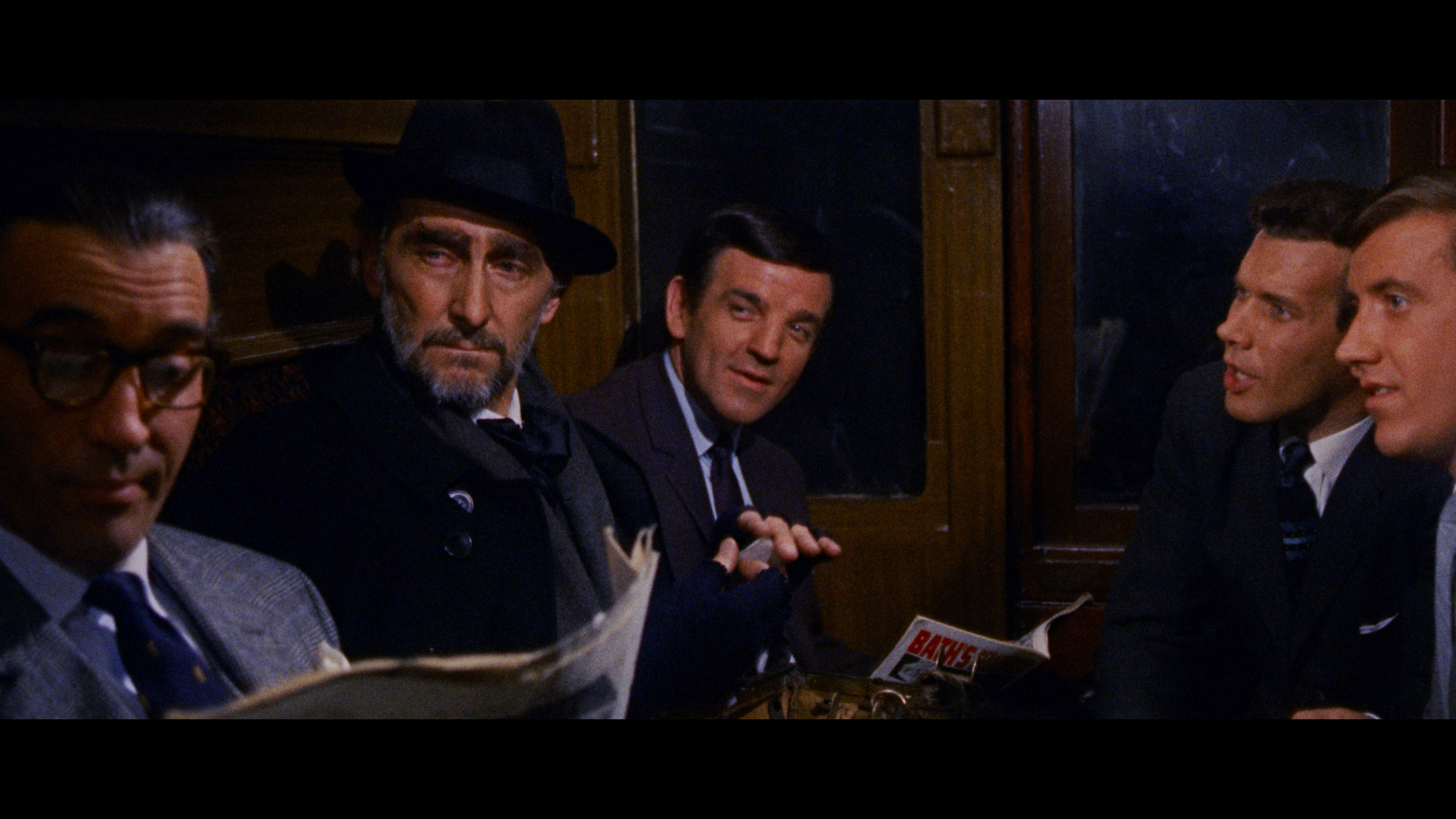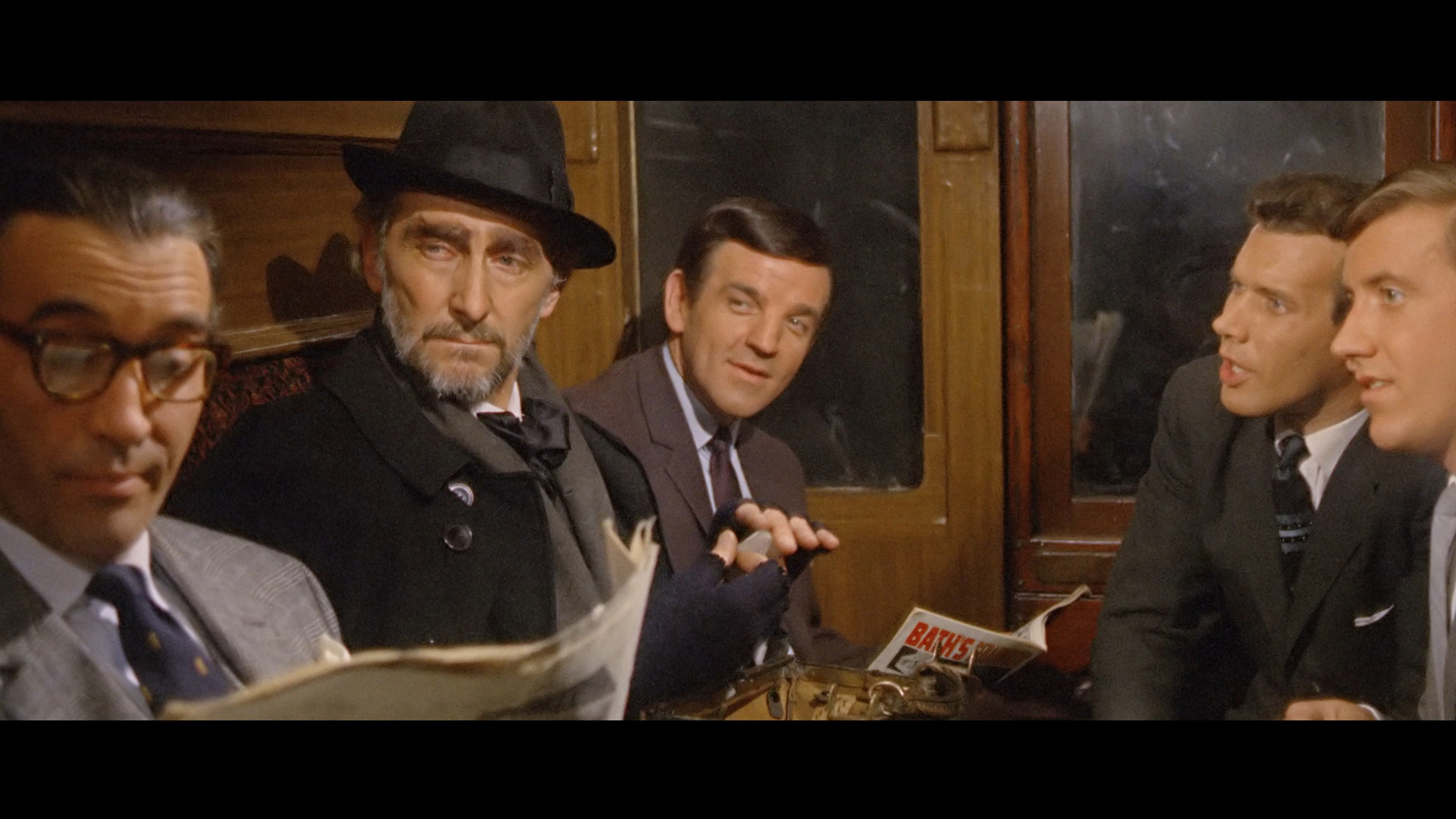 without Dr. Terror's House of Horrors, the first of numerous successful anthology horror films from Amicus Productions. Founded by Americans Milton Subotsky and Max Rosenberg, Amicus was the closest thing to a competitor to Hammer at the time, even casting stars Peter Cushing and Christopher Lee in this film, and the anthologies including Torture Garden, The House That Dripped Blood, Asylum, Tales from the Crypt, The Vault of Horror, and From Beyond the Grave were the foundation of its legacy. This initial outing is fascinating for how it lays out the conventions of what would become staples in the Amicus portmanteau film as well as how it differs, particularly its moody and hyper-saturated scope photography which appears in no other anthologies (but does add a dreamy touch to Amicus' single-narrative The Skull).