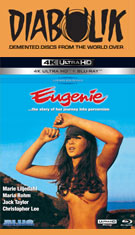 In 2023, Blue Underground added Eugenie to its slate of 4K upgrades as a two-disc edition featuring a UHD and a remastered Blu-ray, with a new restoration from the camera negative. The already excellent prior release is improved on here with more robust skin tones, deeper blacks, and increased detail (even in the blurry shots), and the DTS-HD MA 1.0 mono English and French tracks sound great (with optional English SDH, French, and Spanish Eugeniesubtitles). The slipcase and title card for the film itself now tout it as Marquis de Sade's Philosophy in the Boudoir Eugeniewhile the actual disc sleeve and menus still call it Eugenie... The Story of Her Journey into Perversion, so you could find it under either title depending on the retailer. Both formats feature the trailer (now tweaked to feature the Philosophy title) and a new audio commentary by Troy Howarth and yours truly, so no evaluation of it here but hopefully you'll enjoy. Both of the preexisting featurettes are ported over on the Blu-ray, but you also get the new "Jack Taylor in the Francoverse" (24m43s) with the busy actor chatting about the origin of his screen name, his earlier Franco work including the multilingual Succubus, the Towers-Franco glory days, and the director's mix-and-match approach to shooting multiple films at once with an affinity for exotic cabaret scenes. An expanded gallery of international posters and stills is also included.
