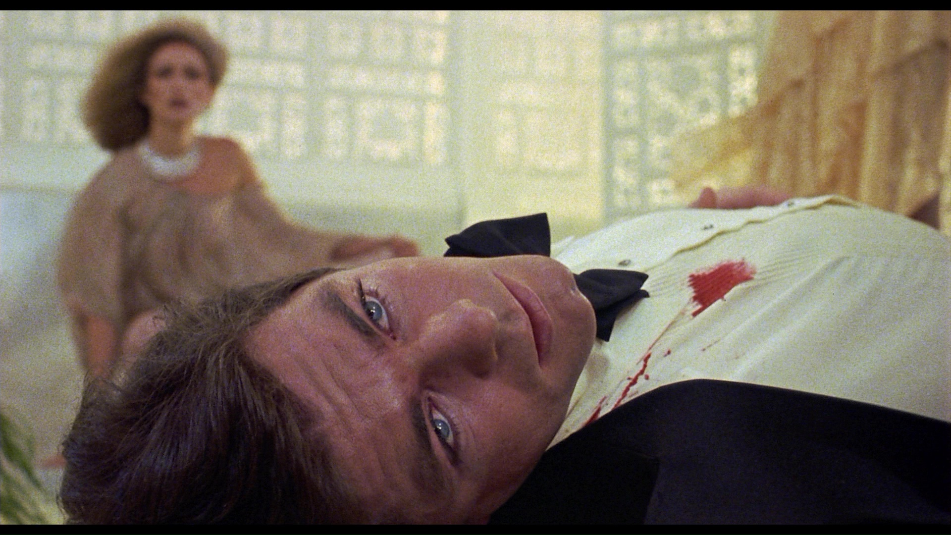 In 2017, UK label Indicator finally gave the film its worldwide Blu-ray debut with an expanded package using what appears to be the Sony HD transfer as its centerpiece. The film looks great here if you're familiar with the intended look, a sort of combination of gritty, grainy New York photography with blasts of harsh white light and sometimes gaudy, extravagant color schemes during the photo shoot sequences. The LPCM English mono audio sounds pristine and features optional English SDH subtitles. The Kershner commentary, "Visions" and "Eyes on Laura Mars" are ported over from the DVD, while new insights are provided in "The Eyes Have It" with Kat Ellinger (13m24s) exploring the giallo-esque aspects of the film and its recurring eye motifs in the vein of other titles like Peeping Tom. The theatrical trailer is also included (finally for the first time on any home video release, in great quality), with an option to view it with very enthusiastic Trailers from Hell commentary by David DeCoteau as well, along with an extensive image gallery that's every bit as eye-popping as you'd hope. The limited edition first pressing also sports a liner notes booklet featuring a new Rebecca Nicole Williams essay and a sampling of press coverage and reviews from the film's original theatrical release.
