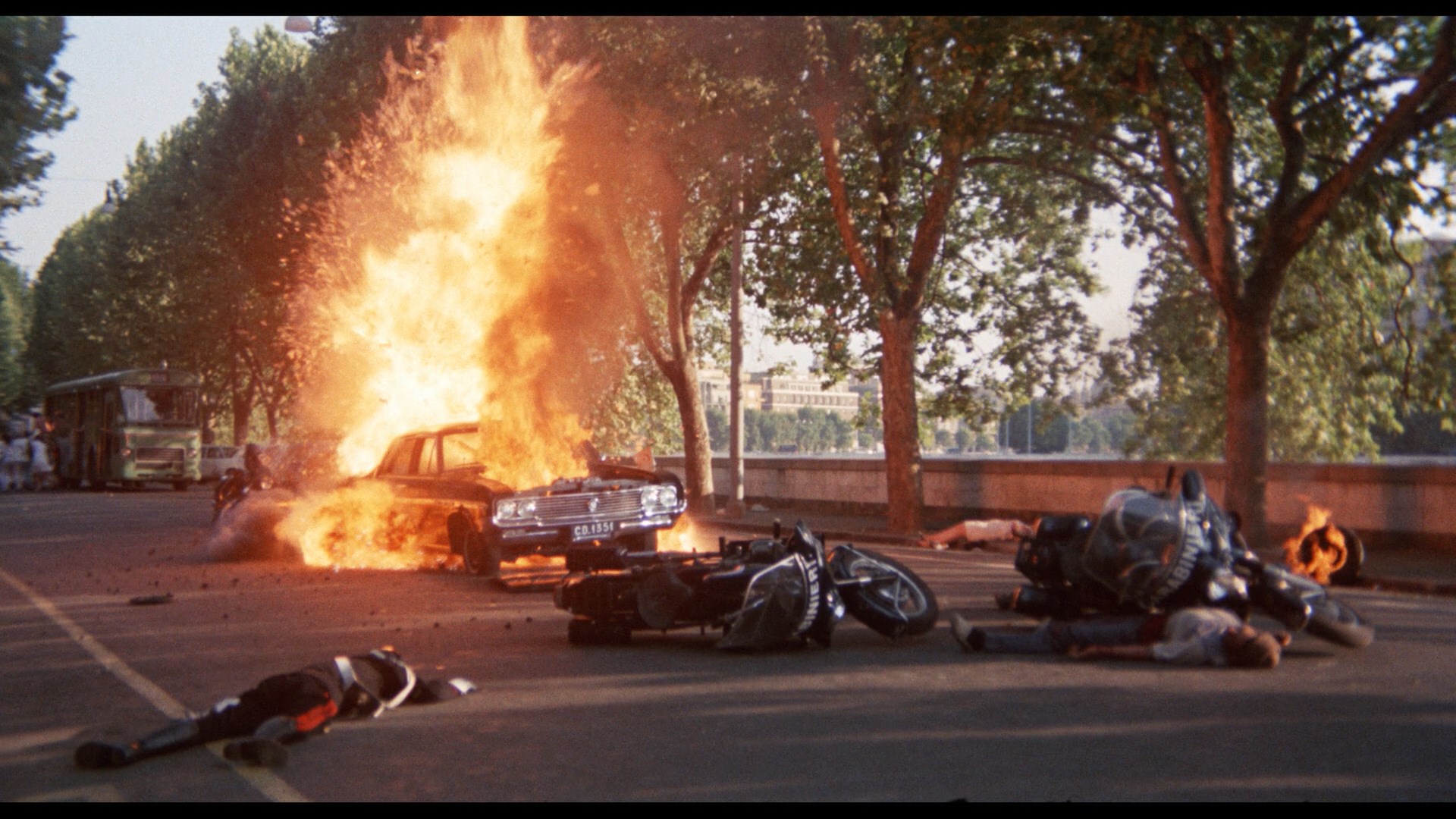 The source for this new 4K restoration by the Cinematheque of Bogona and Severin isn't specified, but apart from some minor on-and-off damage visible during the first reel, it looks spectacular with those intense colors looking as impressive as possible. The DTS-HD MA 2.0 audio options include the English track and the Italian dub with optional English SDH subtitles. Janisse provides a welcome video intro (5m27s) about Spark (who also wrote The Prime of Miss Jean Brodie) and her own identification with the main character and overall story, while a new audio commentary by TCM Underground's Millie De Chirico goes further into the novel, Taylor's separation from Richard Burton just before filming, the rewards of multiple viewings, the symbolism of the frequent mirror usage, the prevalence of real-life terrorism that filters into the film, and more. Her comments are very sparse after the 40-minute mark, so be ready to fast forward quite a bit. In "A Lack of Absence" (22m3s), Chandra Mayor takes a deep dive into the themes of Spark's often challenging work, including some footage of the writer herself talking about her process. Also included are the main and end titles from The Driver's Seat version (4m7s) complete with MPAA card, plus a standard def trailer and the closest approximation of it as possible reconstructed from the HD source.