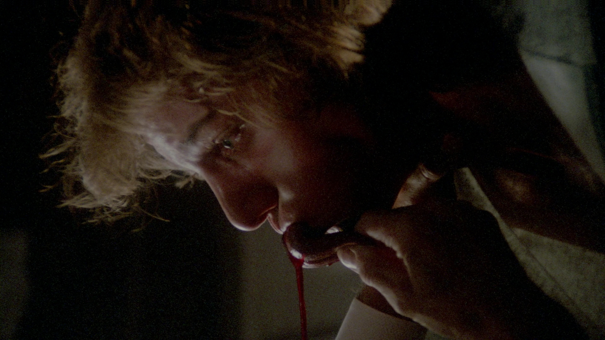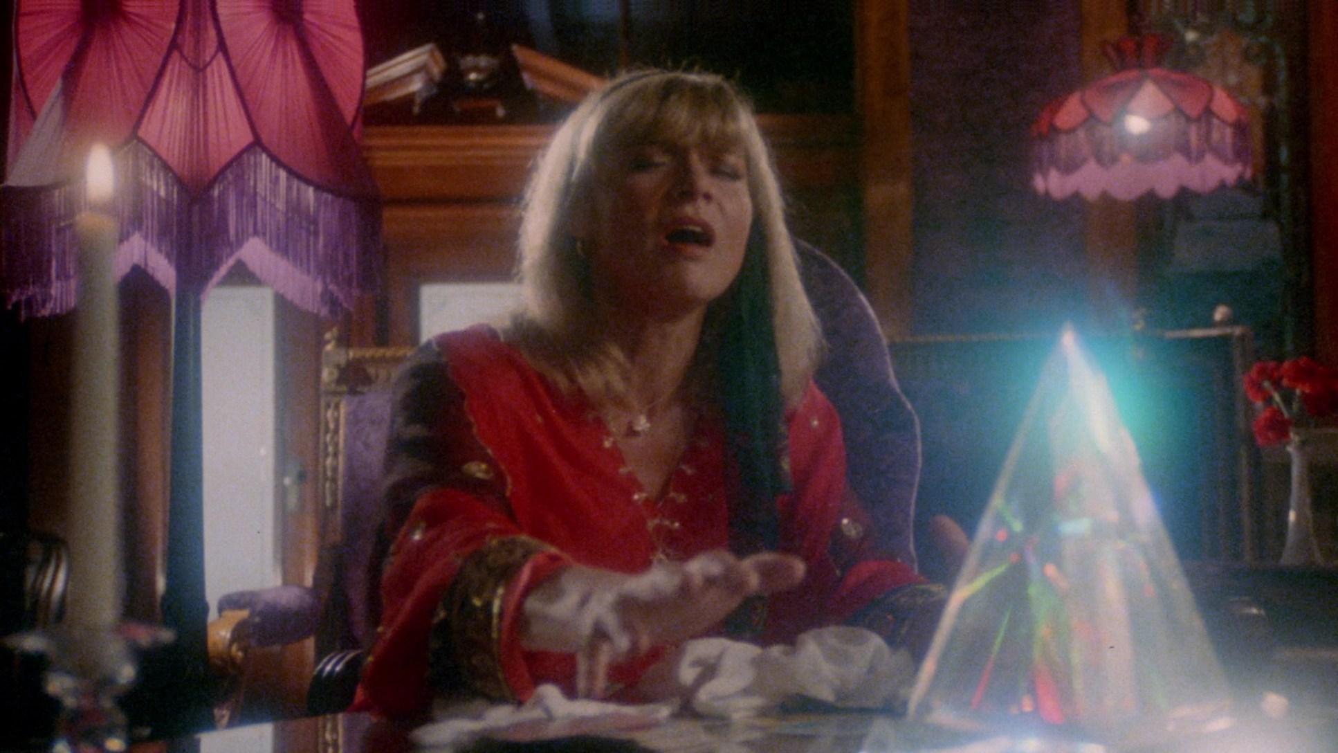 one gets no less than three audio commentaries: a new one with the gang at The Hysteria Continues (well, three out of four of 'em), an archival audio interview with late director Norman Thaddeus Vane (covering his entire career and recorded on what sounds like a tinny speaker phone), and a new commentary with David Del Valle and David DeCoteau, with the former sharing lots of stories about his friendship with Mayne and encounters with other famous horror personalities over the years. (The fact that Forry Ackerman gets a prominent credit at the end and supplied a lot of the horror memorabilia should have older horror fans chuckling throughout the film.) The chats are a fascinating study in contrasts as the first one focuses on the film's odd position between classic personality-driven horror and the '80s slasher craze, with the crew also offering a solid snapshot of the VHS culture of the era in both the US and UK. All are worth checking out, but be warned the Vane interview is best enjoyed in small doses since the sound quality will induce migraines over long periods of time. There's also a new "Man with a Camera" interview with cinematographer King (21 mins.), which focuses on the importance of lighting over composition, his early photography days on movie sets, his first movie assignments with Hal Needham and Steven Spielberg, and the shots he "stole" here from his tenure as a camera operator on Carrie. He also talks about the presence of cocaine as an incentive on the set, going into rehab with Dennis Hopper, and reveals that the original intention was the release the film in black and white with color inserts for the blood shots, so try watching the film with the color cranked all the way down on your monitor if you want an idea of how that might have looked. The closing credits will make your jaw drop, too. The package closes out with the theatrical trailer (as The Horror Star) and a gallery of poster art, video covers, and international lobby cards.