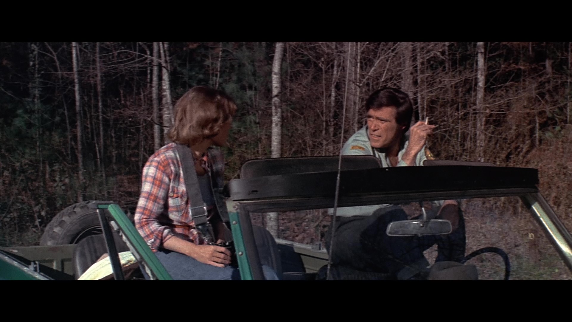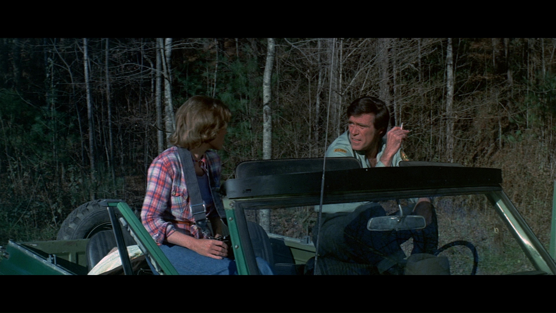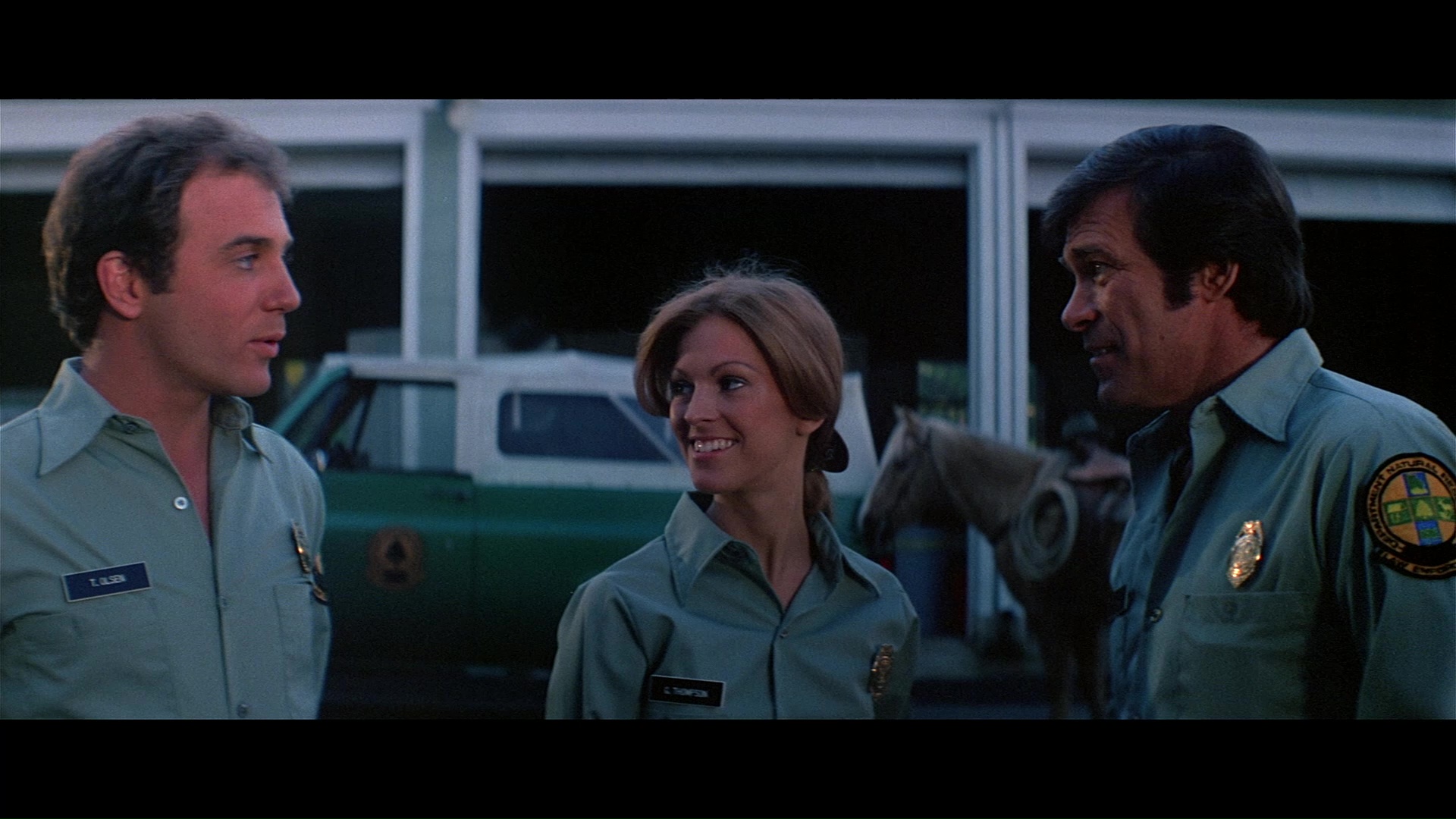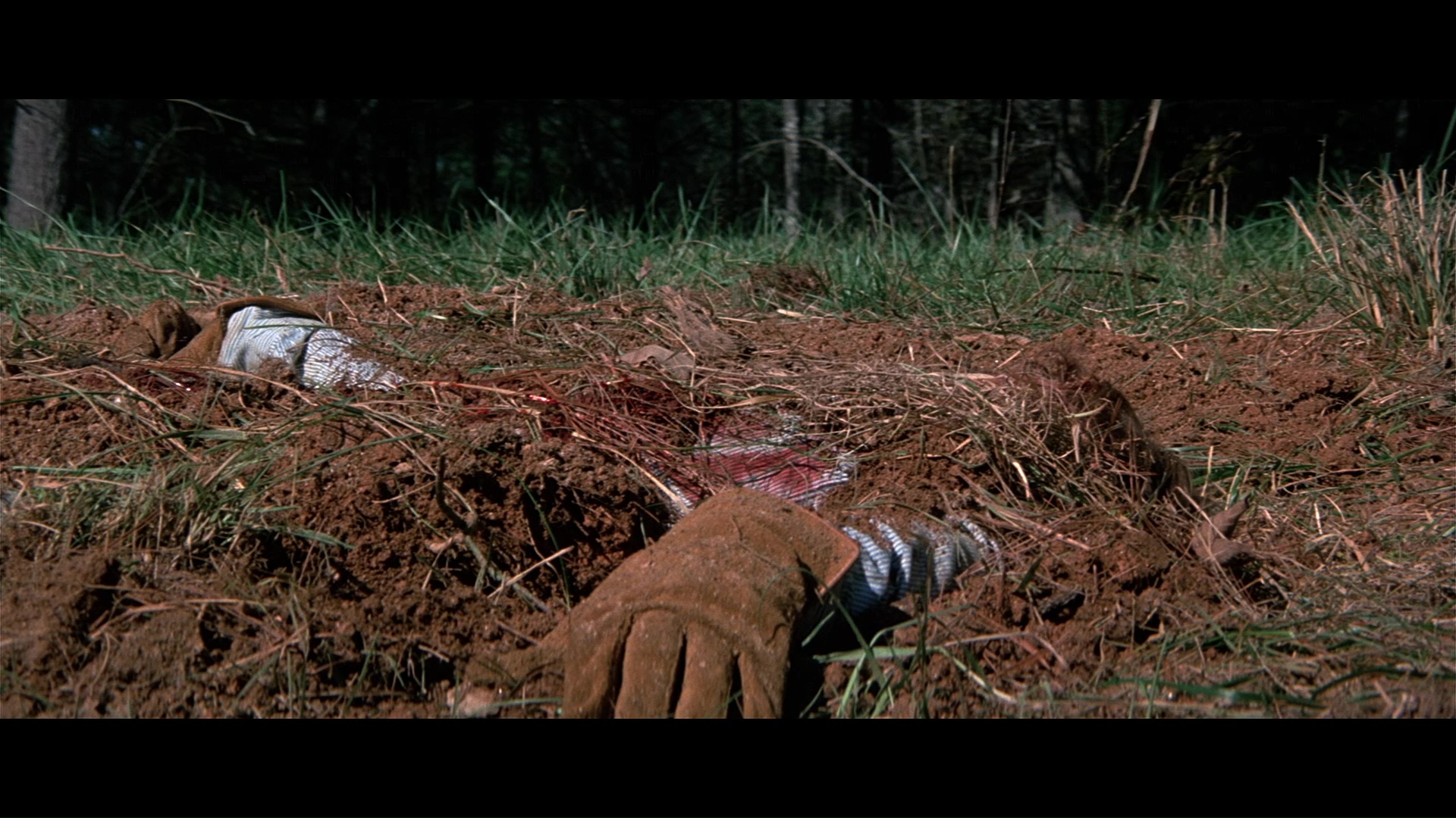 Later the same year, Scorpion brought the screen's favorite rampaging bear back to the Blu-ray with a remastered edition featuring a new scan from the interpositive. As you'd hope, it marks for a substantial upgrade with a more natural presentation of film grain, fresher colors, and a very substantial amount of additional image info visible on the edges during the second and third reels in particular a la the old DVD. (Images in the body of this review are from the 2018 Scorpion release; comparison ones can be found below.) Audio options include the standard 2.0 stereo track, a spacious and surprisingly boisterous 5.1 mix (both DTS-HD MA), and a mono music and effects track (Dolby Digital). English SDH subtitles are also provided. Almost everything from past U.S. releases is finally collected here together in one place: the Sheldon/McCall commentary, "Jaws with Claws," vintage making-of, the New Beverly panel, still gallery, and Katarina "fun facts." One major new bonus here is a very lively and informative audio commentary by Lee Gambin, whose peerless expertise in the animal attack subgenre is in full bloom here as he tackles one of the decade's most essential entries. He touches on Edward L. Montoro (the infamous head of distributor Film Ventures International), other killer bear films like Claws, other potential casting choices like Clint Walker, the joys of animal suits (making this a commentary sequel of sorts to Night of the Lepus), the unreleased sequel, the Jaws influence, and the sweeping score by Robert O. Ragland, just for starters. Two theatrical trailers are also included along with a sampling of radio spots, and the first pressing sold via Ronin Flix and Diabolik features a limited slipcover.