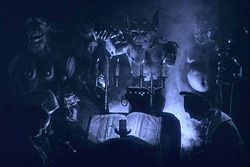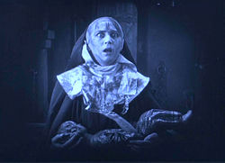 Ostensibly beginning as a documentary, Häxan begins with woodcuts and period recreations to depict the rise of witchcraft in medieval times, where demons were said to roam the land and interfere with the lives of peasants. Through a series of vignettes we see the interaction of clergy and witches, with the priests either persecuting their satantic foes, suffering from the onslaught of demonic forces, or even complying with the supernatural agents. Witch hunting is depicted in an unflattering light not unlike Carl Dreyer's later Day of Wrath, and even Satan himself makes a cameo with the director made up in an elaborate, terrifying facsimile of a woodcut monster. Nocturnal witches' sabbaths, meals made of toads and children, and other unsavory elements are depicted for the viewer's edification before a truly bizarre finale which makes analogies between witchcraft and modern day technology.