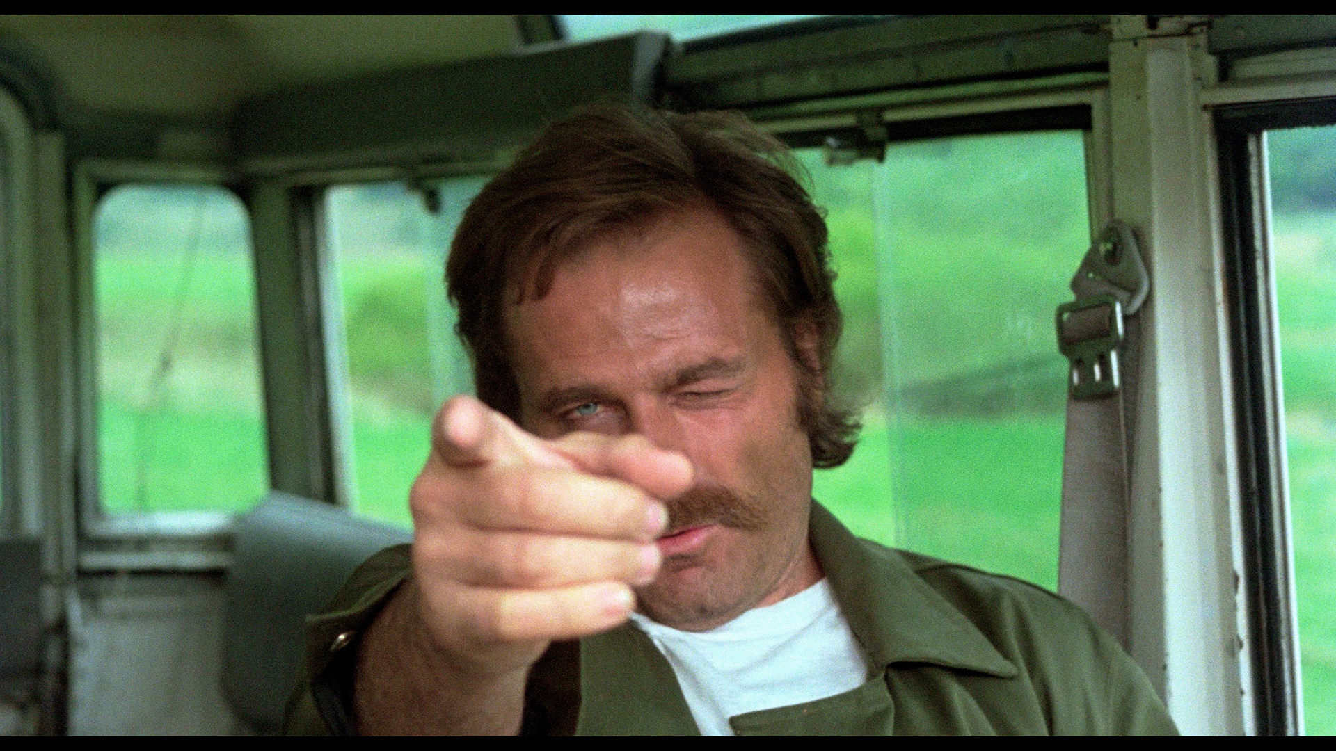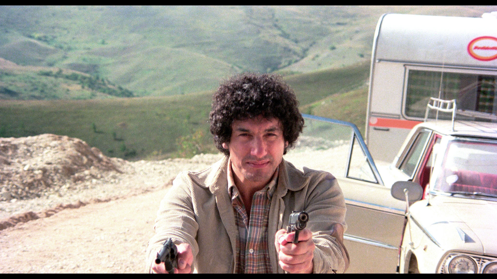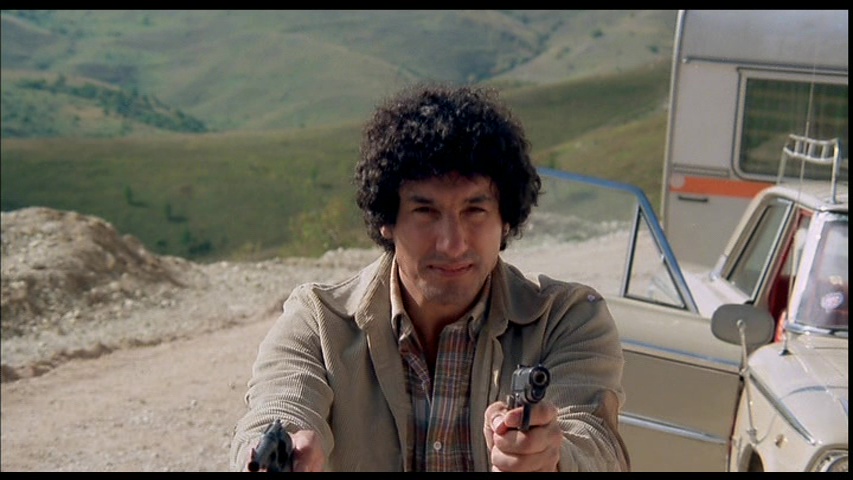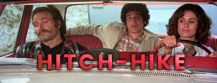 Left like Night Train Murders and Last House on the Beach to scuzzier and more original variants like House on the Edge of the Park and Terror Express. Somewhere in the middle and one of the most prestigious of these is Hitch-Hike (a.k.a. Autostop Rosso Sangue and also shown as Death Drive and The Naked Prey), the first of several films made by David Hess in Italy thanks to the recommendation of his co-star in 1976's 21 Hours at Munich, Franco Nero. Both men seem to be trying to outdo each other to see who can be the most loathsome character, with Corinne Cléry, fresh off her star-making role in Story of O, stuck in the middle.