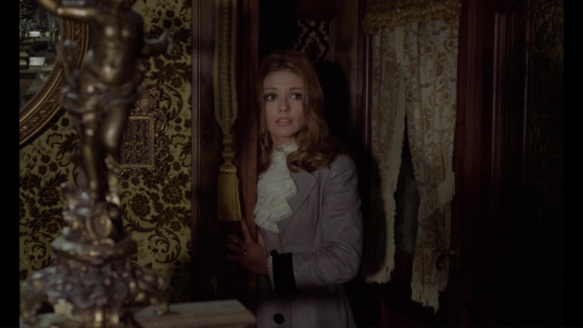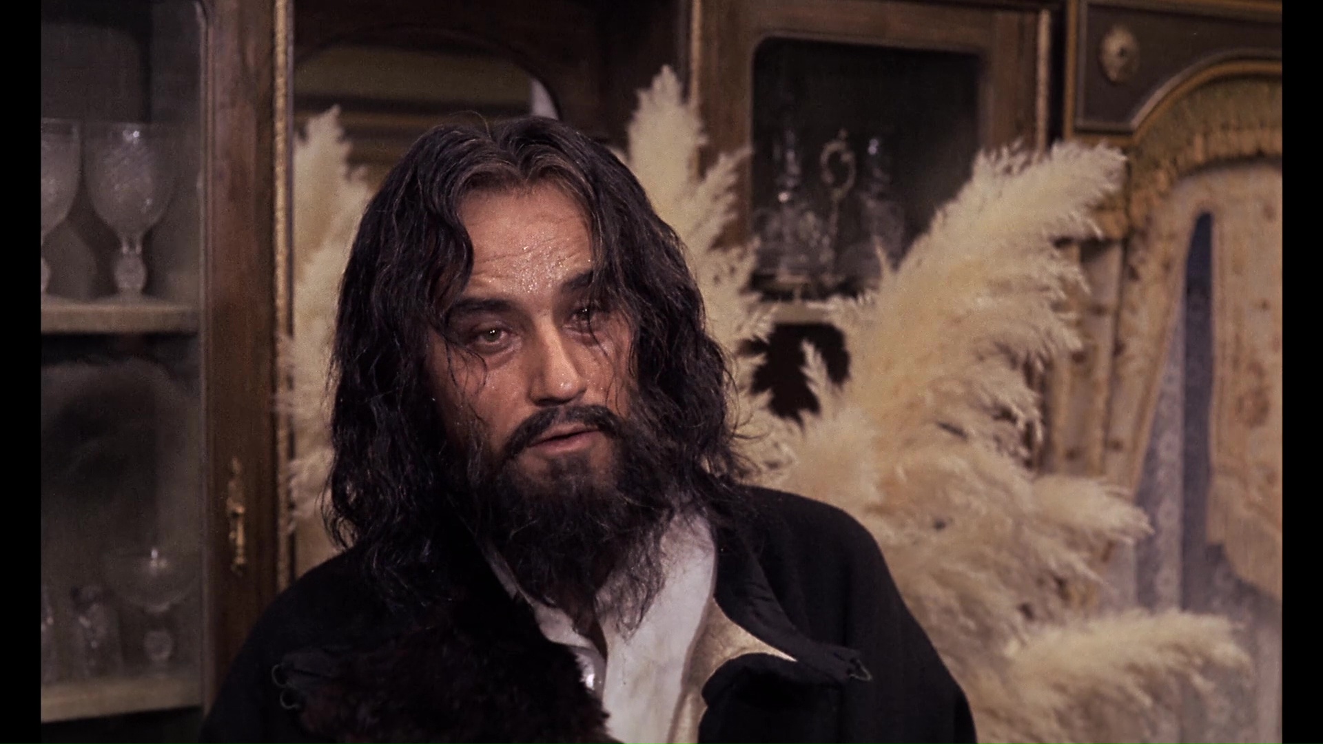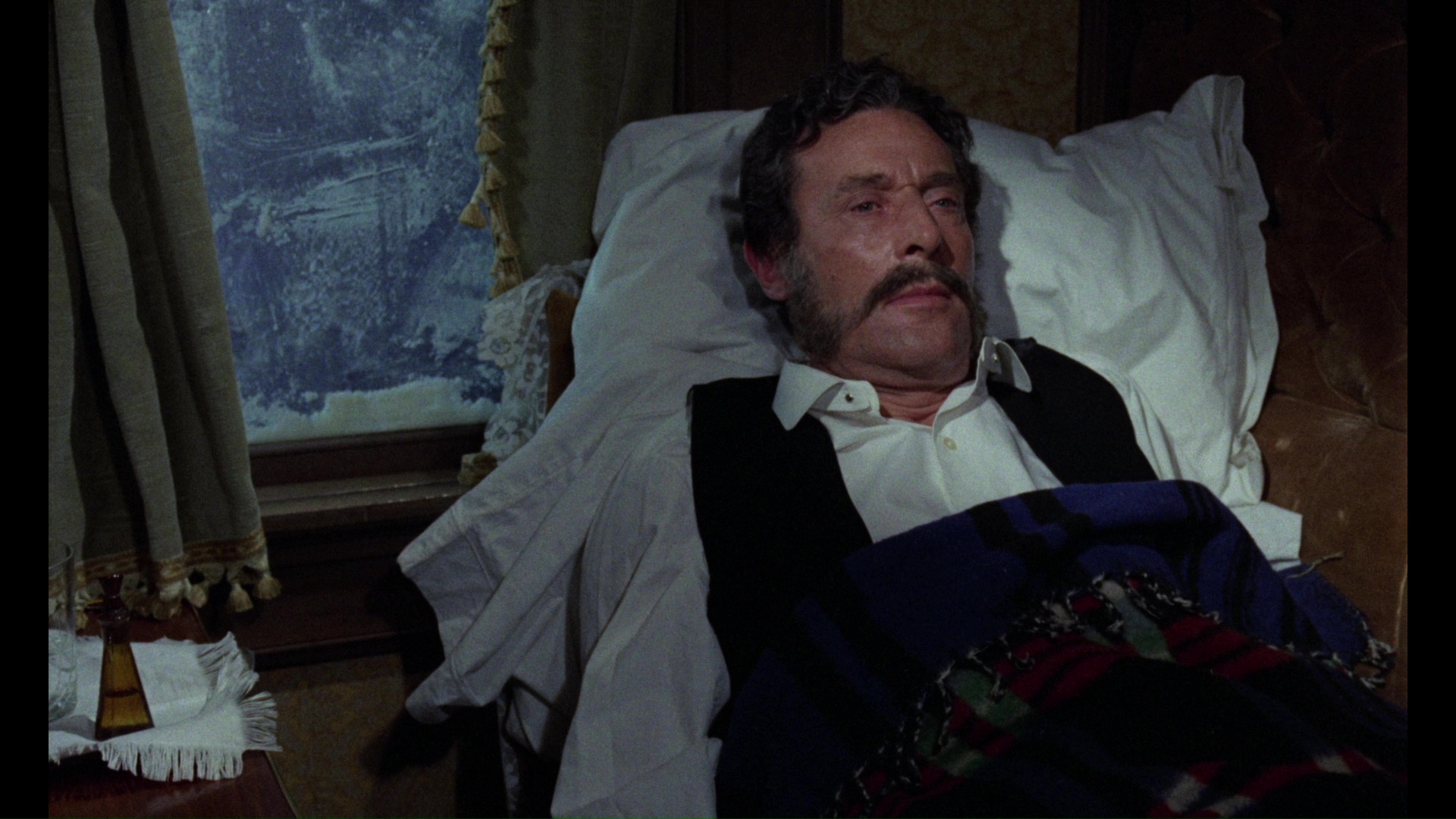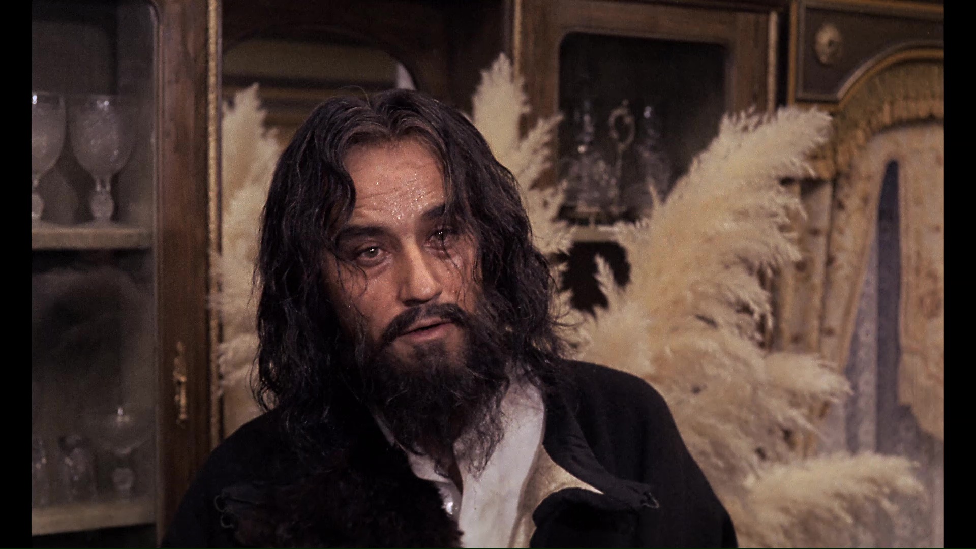 Chris Alexander (6m50s), followed by a new HD video interview with Martin, "Murder on the Trans-Siberian Express" (13m59s), in which he talks about the genesis of the idea for the film, his methods of creating a lush visual texture on a limited budget, and a correction to the oft-repeated story about how Cushing (whose wife had just died before filming) was enlisted to remain for the film by his friend Lee. His accent is pretty thick at times, so turn your volume up. The lengthy and very detailed next interview, "Notes from the Blacklist" (30m30s), features the late producer Bernard Gordon, who goes through the process of blacklisting in the '50s, the making of 55 Days at Peking (which he wrote), and much more. "Telly and Me" (8m4s) is a fun video interview with Cacavas, who got his big break as a film composer through Savalas, arranged two of his albums (including an inexplicably popular spoken version of "If"), and went on to become the regular composer for the TV series Kojak. He also speaks warmly of his score for this film and the positive reception it received from everyone involved. Cacavas passed away three years after this was recorded, so it's a poignant preservation of his thoughts on his career definitely worth seeing. The disc rounds out with the original English-language theatrical trailer and bonus trailers for Psychomania, The House that Dripped Blood, and Nightmare Castle. Subsequent 2017 Blu-rays from Japan (very pricey and difficult to obtain) and Germany worked off the same master with a more proficient compression job; the latter also features the German Super 8 version (15m32s), the German trailer, and a bonus trailer for Thirst.