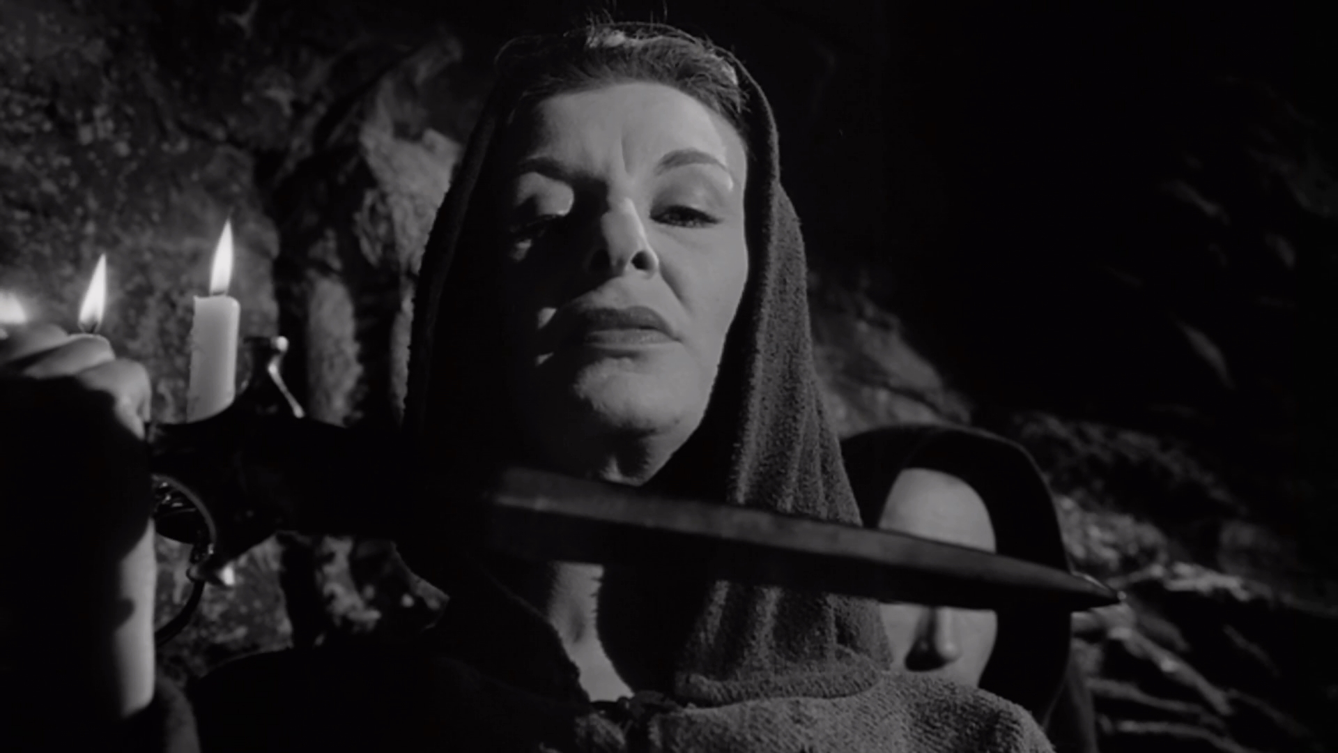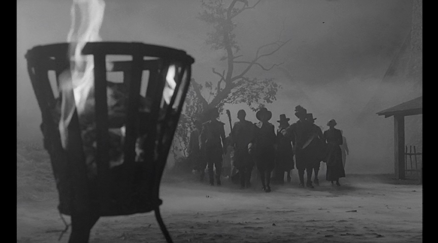 UK title arrived in 2001 and improved things considerably with a richly detailed, sharp transfer for its day. Lee also participates in this version through both a commentary moderated by Jay Slater and video interview (45m6s), along with a nifty video chat with Moxey (26m25s) and Venetia Stevenson (19m37s), who still looks quite lovely and charming. Moxey provides a commentary as well, and it's great hearing the future legend of made-for-TV horror films go into detail about the British film industry at the time and discuss building an entire sinister town on very limited studio means. The US trailer is presented with new digital title cards for some reason. Significantly, this was also the stateside debut of the European cut, which extends the opening execution scene quite a bit and runs almost two minutes longer. In early 2016, VCI brought the film to Blu-ray with all of its DVD extras ported over while adding on a new scholarly commentary by Bruce G. Hallenbeck about the film's significance and role in horror cinema, the shorter Horror Hotel cut, and an additional interview with Lee (16m37s), plus a liner notes booklet by Mike Kenny. Unfortunately the VC-1 encoded transfer (VCI's baffling codec of choice) displayed some significant issues including a very visibly cropped 1.78:1 interlaced transfer (other versions however around 1.66:1 and need that breathing room), a stingy compression rate, and a generally flat, soft appearance.