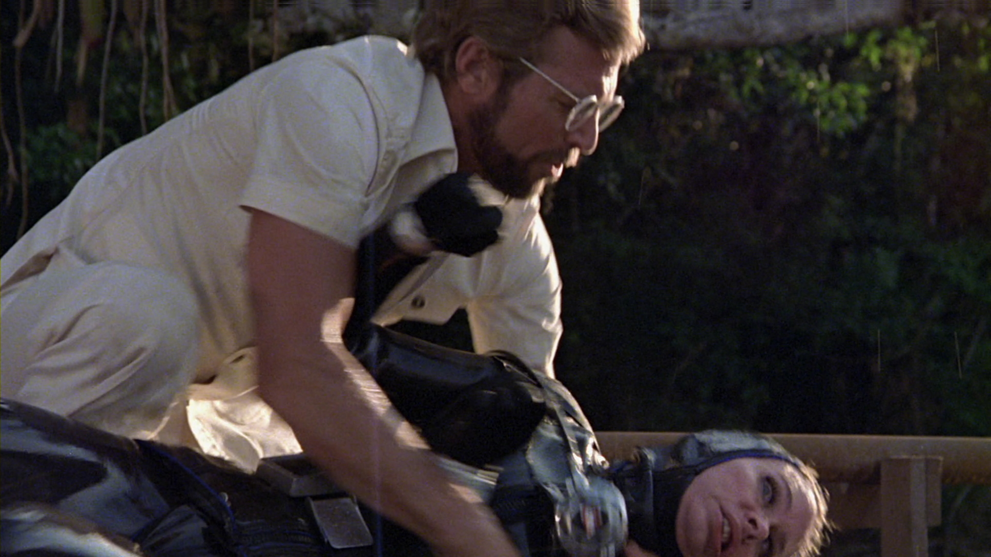 Despite its omnipresence on cable TV in the early '80s, Killer Fish has had a very sparse home video history with a short-lived VHS release from Key Video (a subsidiary of Fox) briefly haunted shelves before vanishing entirely from America for decades. A handful of DVDs popped up in Europe, sourced either from a very dated full frame master or a mediocre flat letterboxed version struck in the late '90s by ITV, but visually they're all easily bested by the HD upgrade from Scorpion available on DVD and Blu-ray. There wasn't much competition in the a/v department but the presentation looks quite impressive, actually more vibrant than the film appeared in theaters (thanks to some lackluster 35mm prints struck by AFD). For some reason it appears the interpositive used here is the PG-rated version in the U.S. with a slightly shorter version of Brocksmith's death scene, which may still be on film somewhere in the world. Barring the insertion of those extra seconds from a vastly inferior video source, this may be about as good as it can get for now. The original English mono track sounds just fine here, though of course disco fans can only wish for an isolated music track.