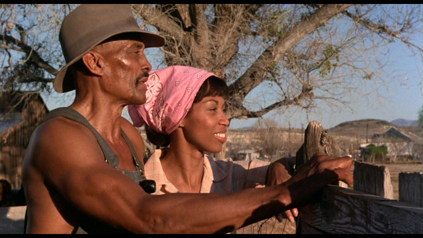 with the Blu-ray generally featuring more but not always. It's interesting to see how boosted the whites look by comparison on the DVD, as the Blu-ray modulates the levels more carefully with far more detail visible in bright areas. The color timing is also interesting to compare as the daylight scenes look similar with gorgeous, vivid colors, but some sequences (such as the first scene on Strode's ranch and Bolling's arrival) have a more dusky, blue appearance versus the uniform "all sunlight, all the time" look of the DVD. The DTS-HD MA English mono track sounds excellent. In addition to the old commentary, the Blu-ray adds a lively new track with Kantor and Bolling moderated by Marc Edward Heuck, with a lot of trivia about the cast members, Kantor's career shift from music supervision to production, Bolling's ease with spiders and partially self-provided wardrobe, the extensive use of library music, and plenty more. Ported over on the video side from the prior release are the Brockett and Lodge featurettes as well as the behind-the-scenes footage and trailer, though instead of the previous 4:3 presentation, they've been formatted with soft-focus sidebar fillers like what you see on a lot of HD local news programs. In addition to a quick and puzzling intro to the film with the label's Banana Man, the wonderful Bolling also appears for a new video interview (9m9s) covering more of her career including TV's The New People, The Wild Party, Bonnie's Kids, and her singing jobs as well as more of her pro-animal thoughts that she was happy to see reflected in the screenplay. Like just about any other cult favorite interview, she also has to drop Quentin Tarantino's name in there, too!