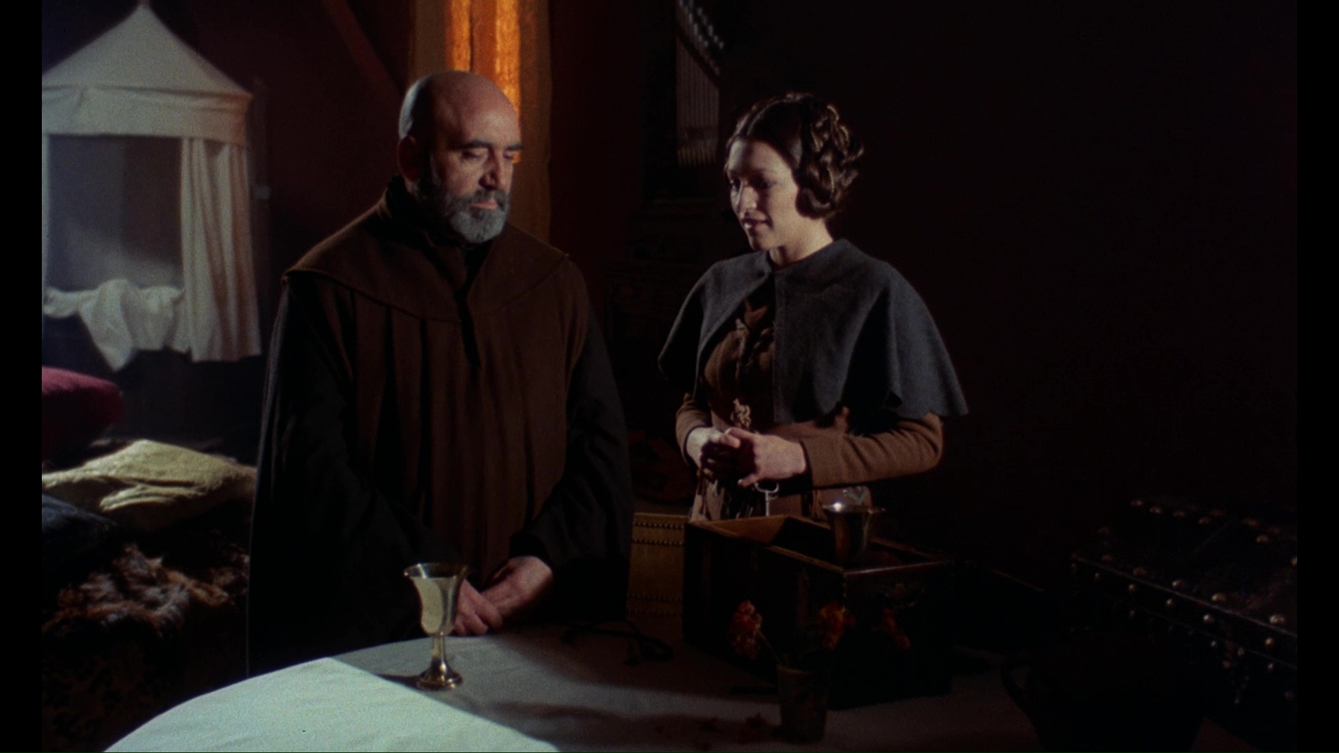 A truly sumptuous and haunting film, Leonor is definitely not for all tastes but comes highly recommended for those who like their horror on the suggestive side. It isn't even clear that this is a genre film at all for the first 45 minutes or so, but once the story start to plumb the macabre depths of its central concept, the rewards are plentiful with both leads handling their performances exceptionally well. It's a little disorienting to see the normally urbane and very modern Piccoli running around with a sword and crossbow in such an antiquated setting, but he turns out to be the perfect choice with his natural affinity for sadness and middle-aged ennui clicking perfectly with the character. On top of that the film features one of Ennio Morricone's most beautiful scores, a progression from the melodies and arrangements he had already explored to tremendous effect in his earlier masterpiece, 'Tis Pity She's a Whore. Then there's the striking cinematography by the great Luciano Tovoli, who would go on to shoot Suspiria and Tenebrae (and shot The Passenger the same year as this one), and some notable writers credited for adapting the Ludwig Tieck source novel including Bernardino Zapponi (Deep Red) and French New Wave legend Jean-Claude Carrière. The comparisons to the elder Buñuel may be inevitable given the helmer, but the experience is actually far closer to Roger Vadim with several sequences echoing Blood and Roses and his "Metzengerstein"