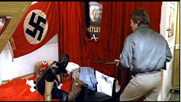 some serious repercussions as the filthy fascists later ambush the pair, roughing up our main-man and raping his barely-legal babe. Not one to take this sort of thing lightly, Hal then calls on a local clan of kickboxers (!) who set out to get even with the "gang of hoodlum bastards." The coteries collide at an amphitheater funeral pyre and engage in Dolemite-esque bouts of martial arts, during the climax of which Der Fuhrer is castrated and force-fed his own Bratwurst! And this is literally just the first twenty minutes! Things soon escalate into a full-on blitzkrieg of the senses with good ol' Hal doin' his best Robert Ginty impression as he tries to wipe out the rest of the Wolfpack once and for all.