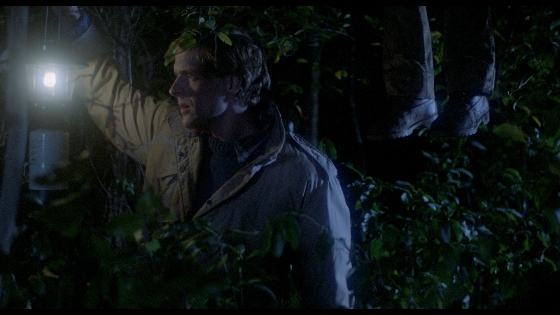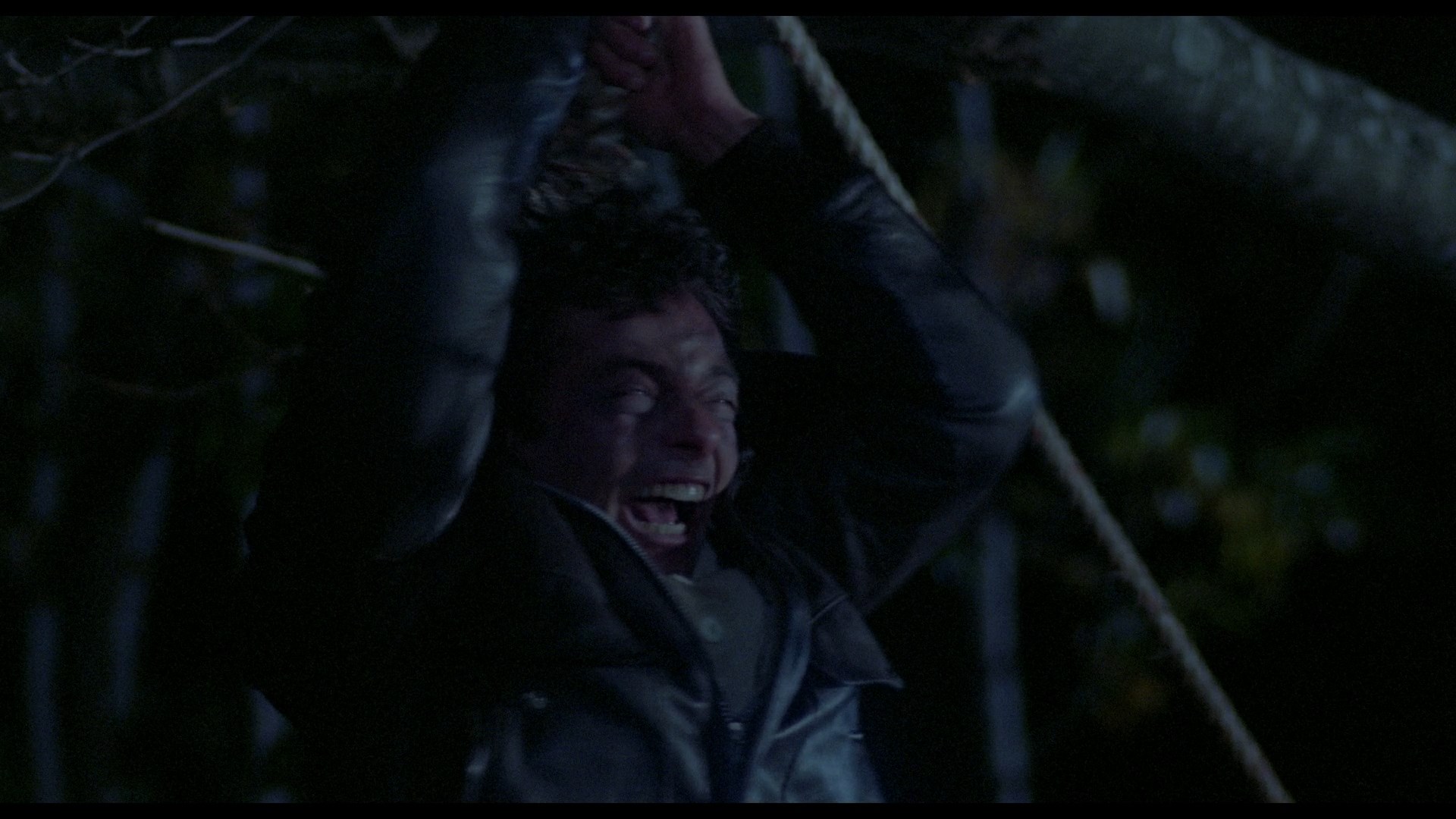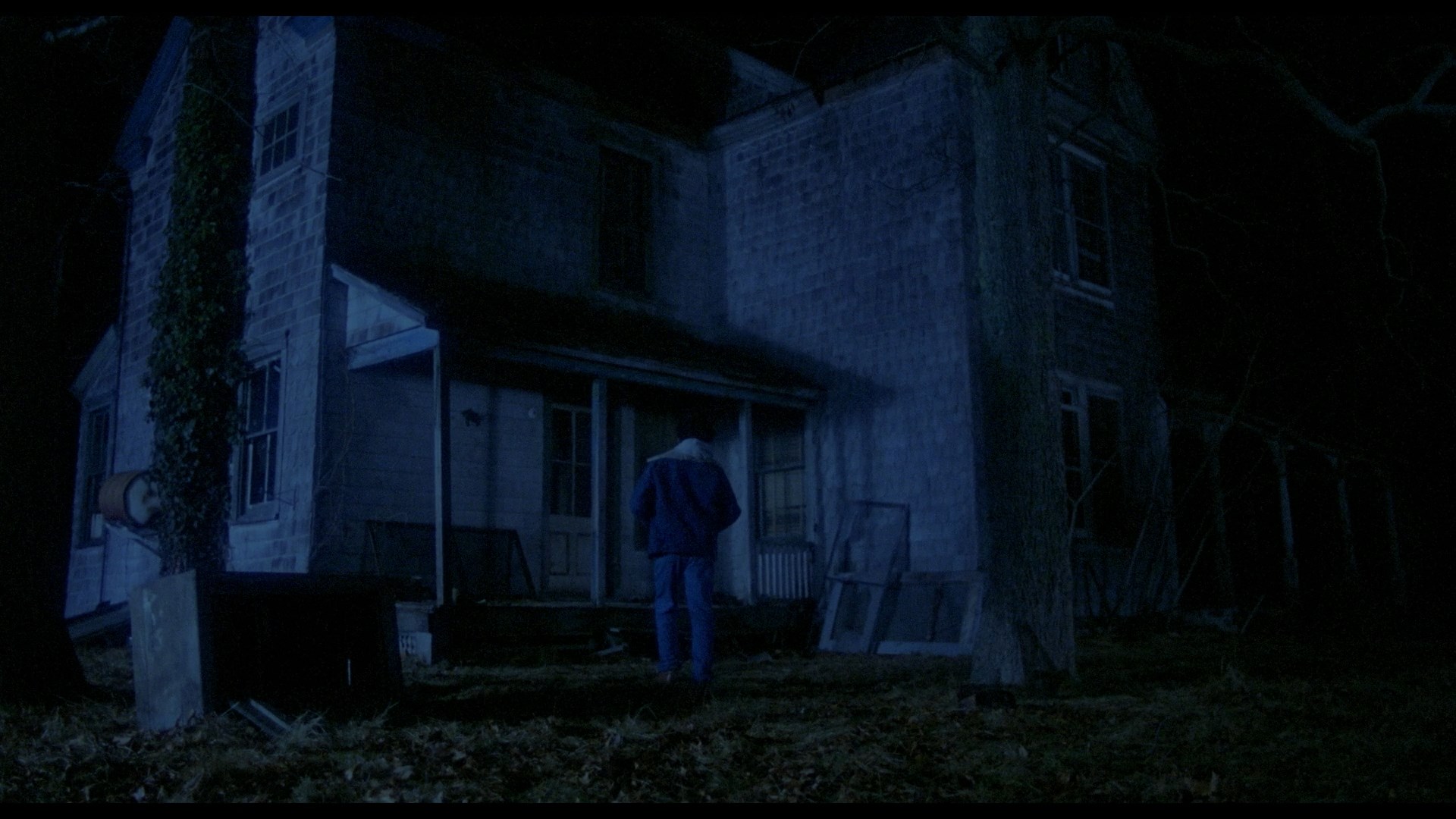 In 2015, the film revived again from Vinegar Syndrome courtesy of a dual-format release containing a Blu-ray and DVD featuring a new 4K HD transfer from the original negative. Of course the big question here is what the color timing is like, and it definitely veers closer to the Anchor Bay side as the blue tint is now back for the night exterior scenes and flashbacks. The image quality is very impressive given the modest nature of the source; the film has an intentionally shadowy look, and it actually looks even better if you knock the brightness down on your TV a couple of extra notches to get the blacks nice and deep. The fine layer of film grain here looks natural, and colors are vivid and seem to be accurate. At 88 minutes and 42 seconds, the transfer also clocks in a few seconds longer than the previous releases (88 mins., 16 sec.), which appears to be due to the more immaculate element used without the print damage seen in the past. (Those weird purple lines appearing in some shots are still there in some shots apparently due to what looks like a faulty camera.) Audio is presented in English DTS-HD MA mono with optional English subtitles and sounds great for what it is. The film can also be played with an optional new HD intro by Sales (52s) talking about his pleasure with the new HD presentation. On the audio side the previous commentary is carried over, while a new commentary is added with the gang from The Hysteria Continues podcast (two of them under the weather but soldiering along admirably) with an additional guest, Johnny Krueg, who has since passed away. They're all in very familiar territory here as the