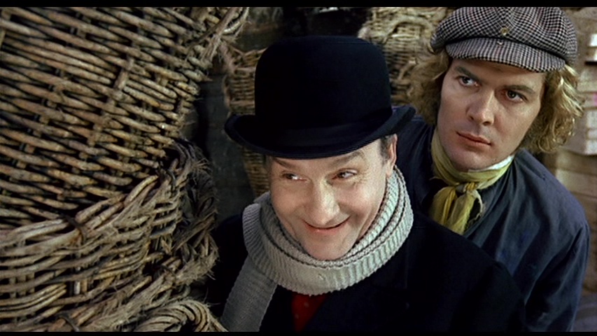 reveal the truly bizarre third-act revelation which explains the true nature of the house and its inhabitants, which is a shame since this is a film best experienced with as little preparation as possible. The unique atmosphere is unlike any other film ever made, veering from humorous fantasy to delicate eroticism to all-out monstrous horror, sometimes all within the same scene. Though his screen time adds up to only a few minutes, Welles makes a strong impression in his key role, while Hampshire shines in three very different roles (or is it more?) as the pure Nancy, the unearthly red-haired Euryale (who won't look anyone directly in the eye), and one of the prudish sisters. Cinematographer Gerry Fisher (who lensed the great See No Evil the same year) helps the director conjure up a wondrous palette of colors throughout the film, from the blood-red tavern interior to the weird purple, blue and oak-wood hues of Malpertuis, while composer Georges Delerue contributes a wonderful score with a beautifully romantic main theme.