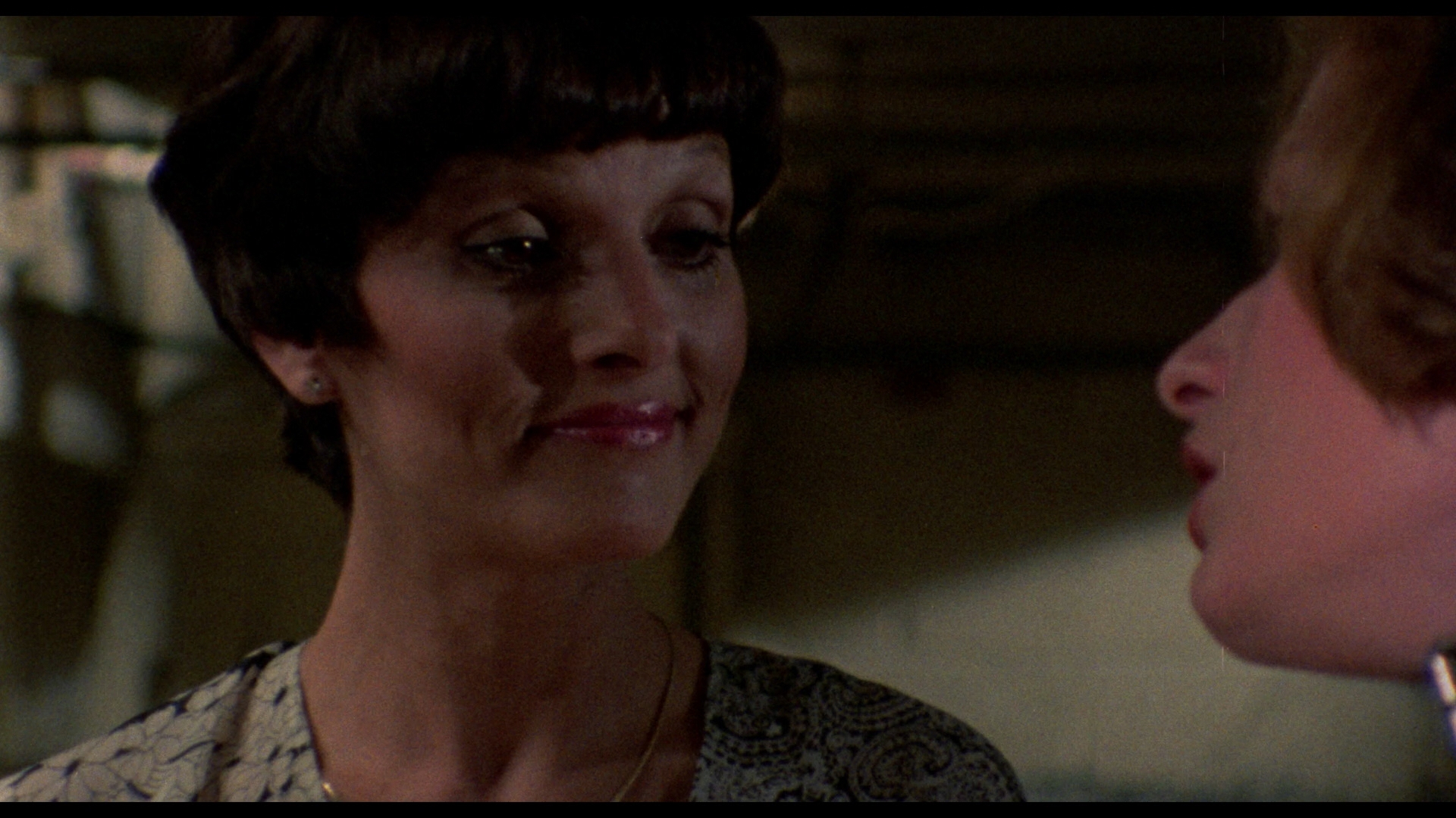 Though widescreen, that release still left something to be desired since it was interlaced and, as with the prior DVD, occasionally had a company watermark slapped in the corner (see below for an example). Extras include a Gloria Leonard interview (5m42s), an irrelevant "classic slideshow," and two bonus trailers (All About Gloria Leonard, Inside Seka), with the second disc featuring a second Leonard interview (29m54s) from the same session, a trailer, a slideshow, and a couple of bonus scenes from All About Gloria Leonard and Misbehavin'.