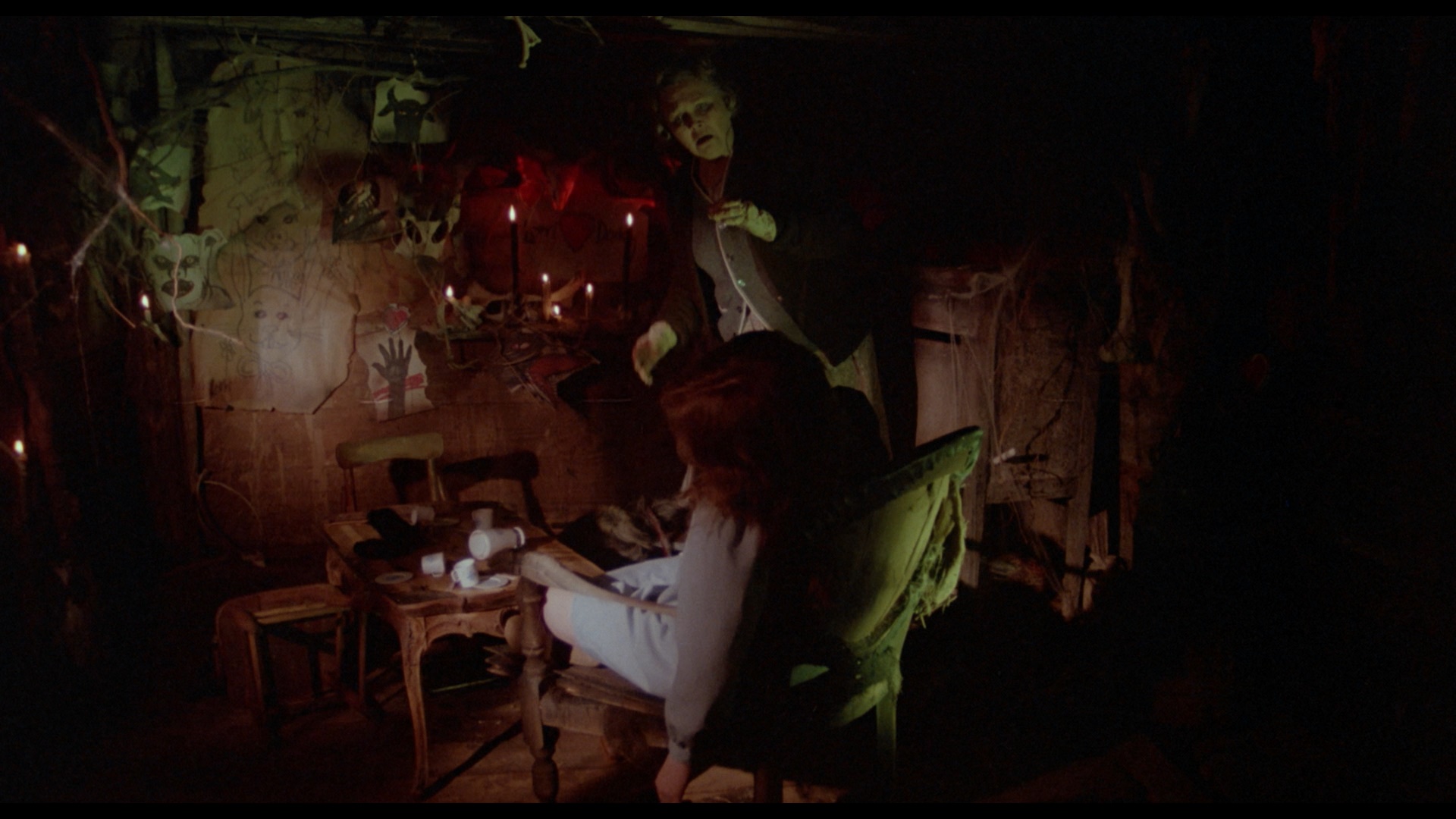 very dark cinematography and features a substantial new featurette, "Mountaintop Motel Memories" (20m58s) with production designer Drew Edward Hunter. He has a lot to share here about the creation of the tunnels off site, his spookshow experience that led to this project, his own written contribution to the revised ending, the various retitlings, and talents of Chappell, who was apparently very sweet and a little unsettled about some of the grislier demands of her role. The disc also contains a gallery of production and promotional images.