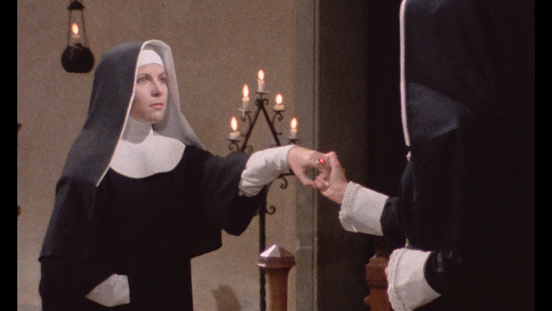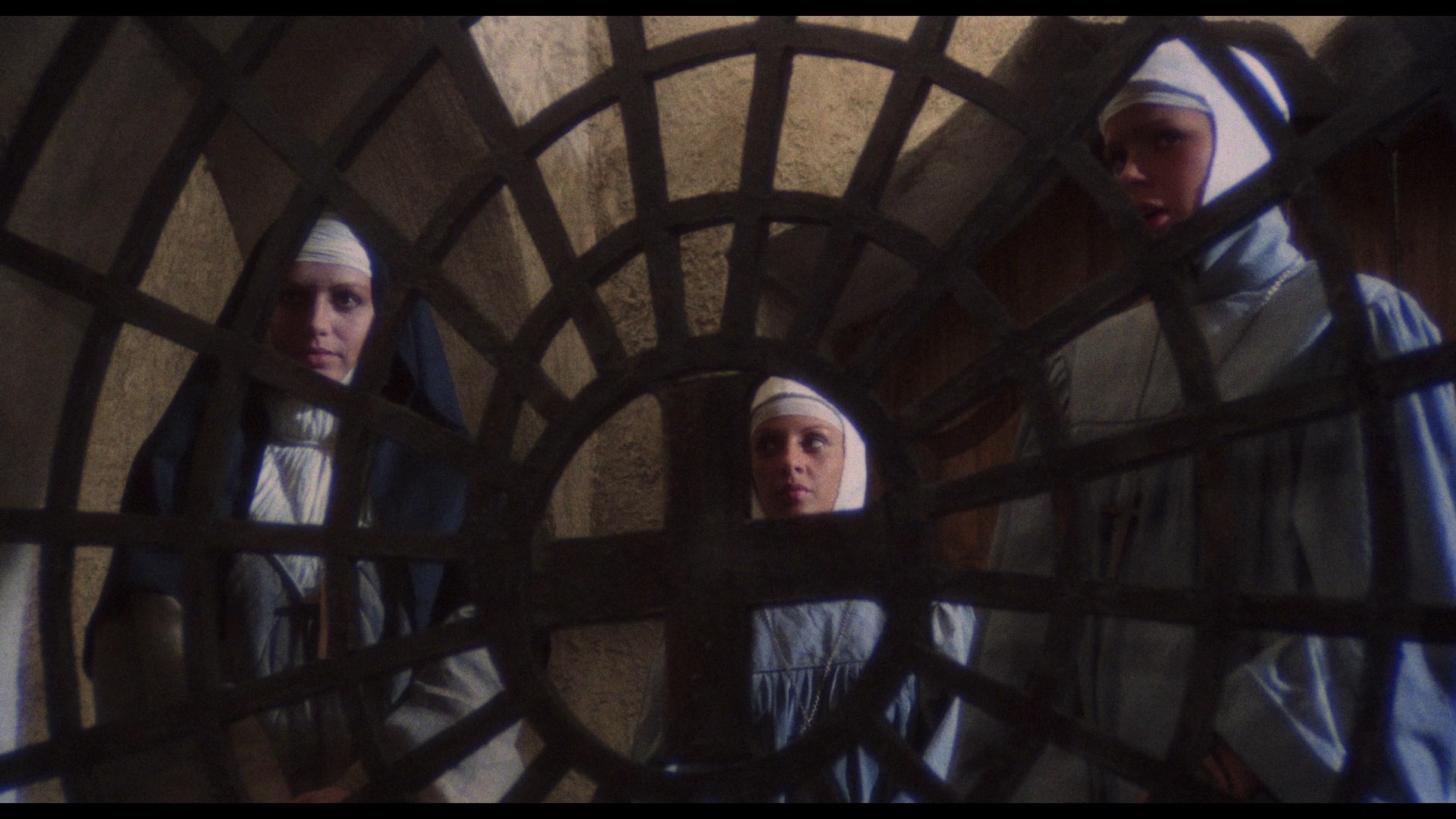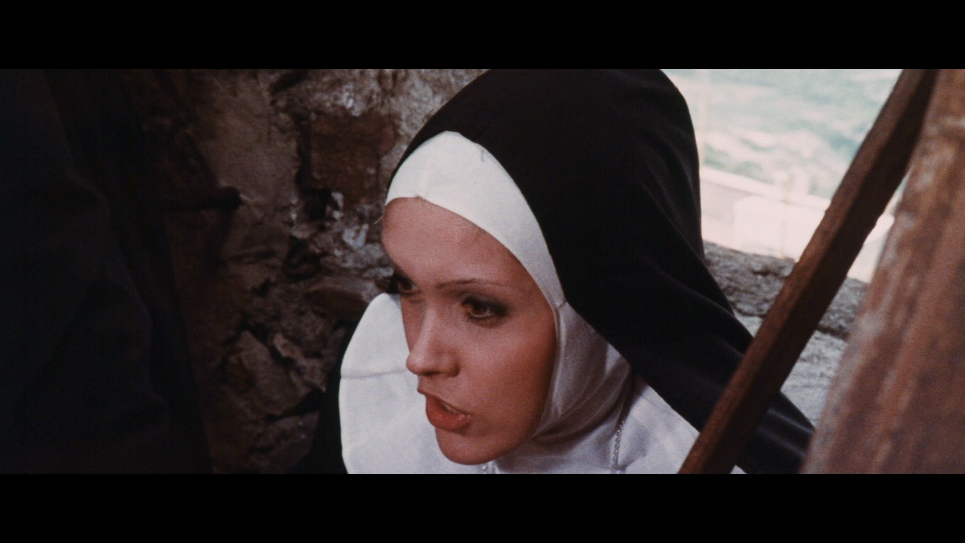 The Severin Blu-ray, featuring a 2K scan from the original negative, looks really lustrous and makes for a satisfying viewing experience all around. Given that this is also the most professionally mounted production of the batch, that shouldn't be too surprising. Both the Story of a Cloistered NunEnglish and Italian tracks are included (DTS-HD MA 2.0 mono) with optional English subtitles; overall the English one wins out since that's the language most of the principals are speaking, even ifStory of a Cloistered Nun some of them were looped after the fact. The extras begin with "Down the Well" (11m16s) in which Brochard remembers the importance of 1973 in her life and career, her earlier role in The Nun and the Devil, the challenging nature of her final scene, and the main reason she took the role. Then it's Giorgi's turn in "A Nun's Story" (23m28s), offering a fascinating account of how she made a pivotal life choice that turned her to acting, what drew her to the role in this film, the acting tips she learned on the fly making this film, the traits she shares in common with her character, and a very funny story about her big love scene with Falsi. Finally in "Within a Cloister" (16m1s), camera operator Daniele Nannuzzi shares his memories of shooting the more memorable scenes including a quasi-crucifixion, his pleasant surprise with Giorgi's performance and the joys of lighting her, his experience working for his father Armando Nannuzzi as director of photography, and his thoughts on his "genre" director.
