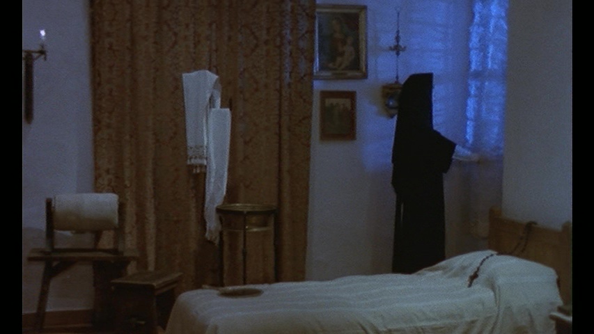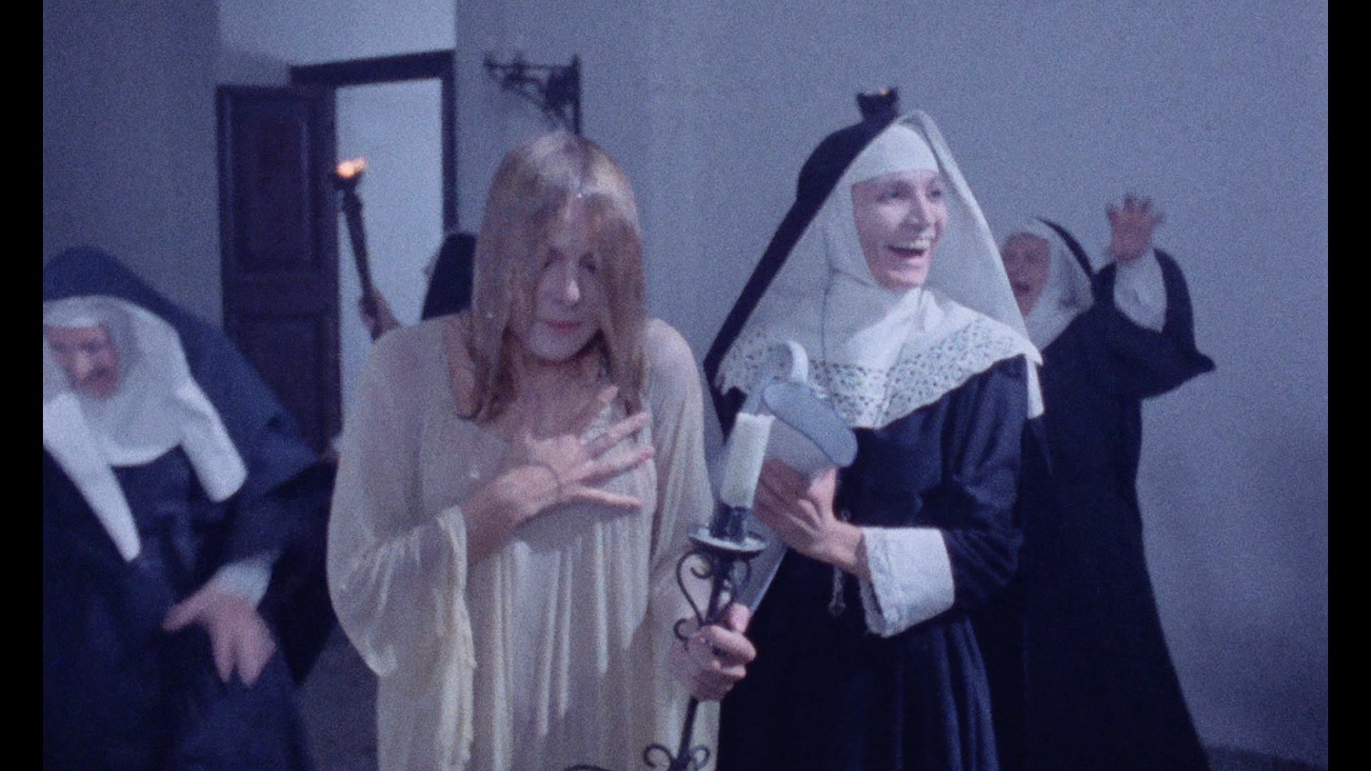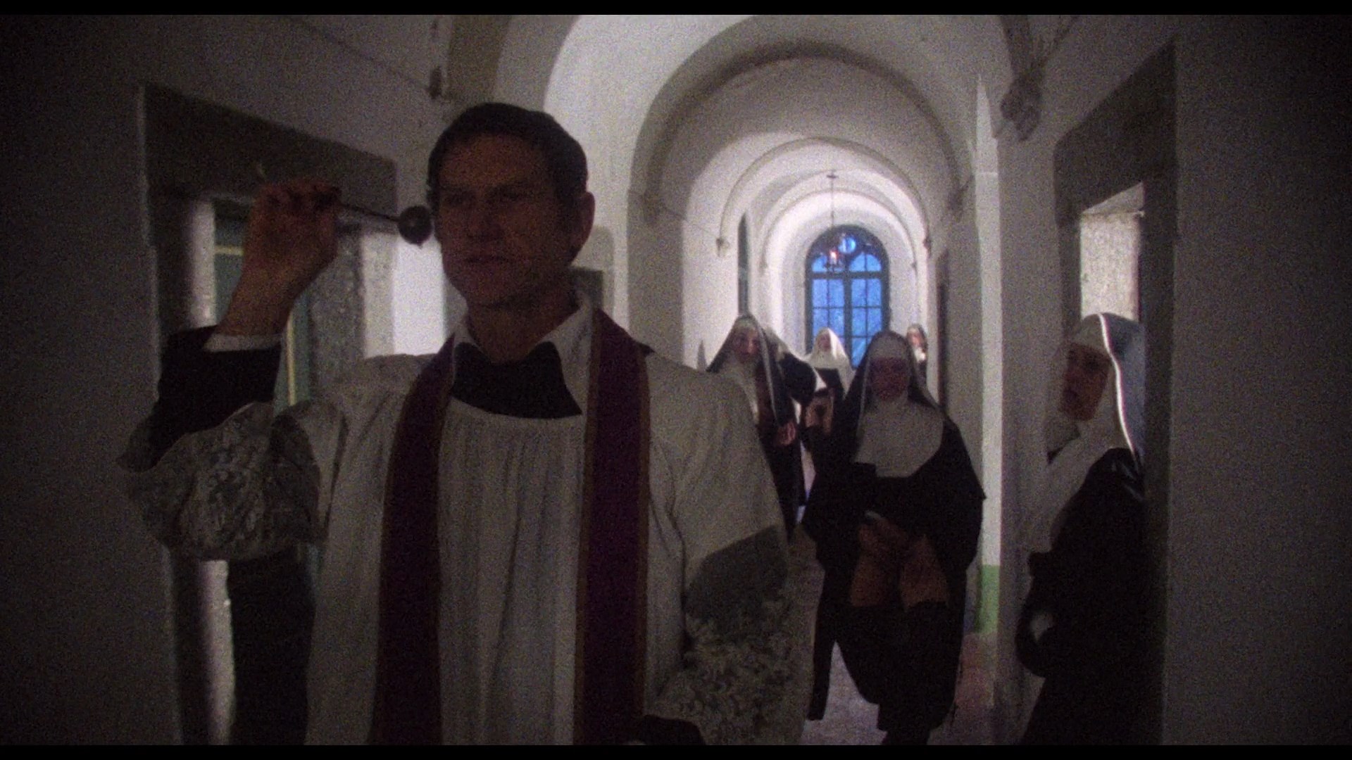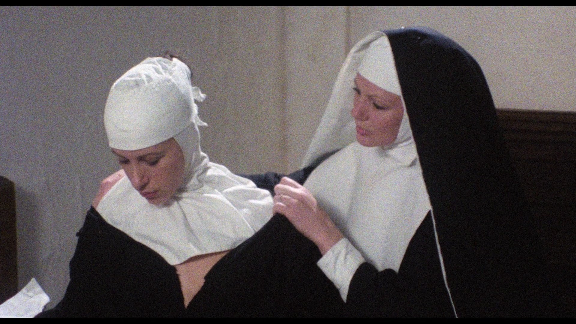 The Severin Blu-ray, featuring a 2K scan from the original negative, looks really lustrous and makes for a satisfying viewing experience all around. Given that this is also the most professionally mounted production of the batch, that shouldn't be too surprising. Both the Story of a Cloistered NunEnglish and Italian tracks are included (DTS-HD MA 2.0 mono) with optional English subtitles; overall the English one wins out since that's the language most of the principals are speaking, even ifStory of a Cloistered Nun some of them were looped after the fact. The extras begin with "Down the Well" (11m16s) in which Brochard remembers the importance of 1973 in her life and career, her earlier role in The Nun and the Devil, the challenging nature of her final scene, and the main reason she took the role. Then it's Giorgi's turn in "A Nun's Story" (23m28s), offering a fascinating account of how she made a pivotal life choice that turned her to acting, what drew her to the role in this film, the acting tips she learned on the fly making this film, the traits she shares in common with her character, and a very funny story about her big love scene with Falsi. Finally in "Within a Cloister" (16m1s), camera operator Daniele Nannuzzi shares his memories of shooting the more memorable scenes including a quasi-crucifixion, his pleasant surprise with Giorgi's performance and the joys of lighting her, his experience working for his father Armando Nannuzzi as director of photography, and his thoughts on his "genre" director.