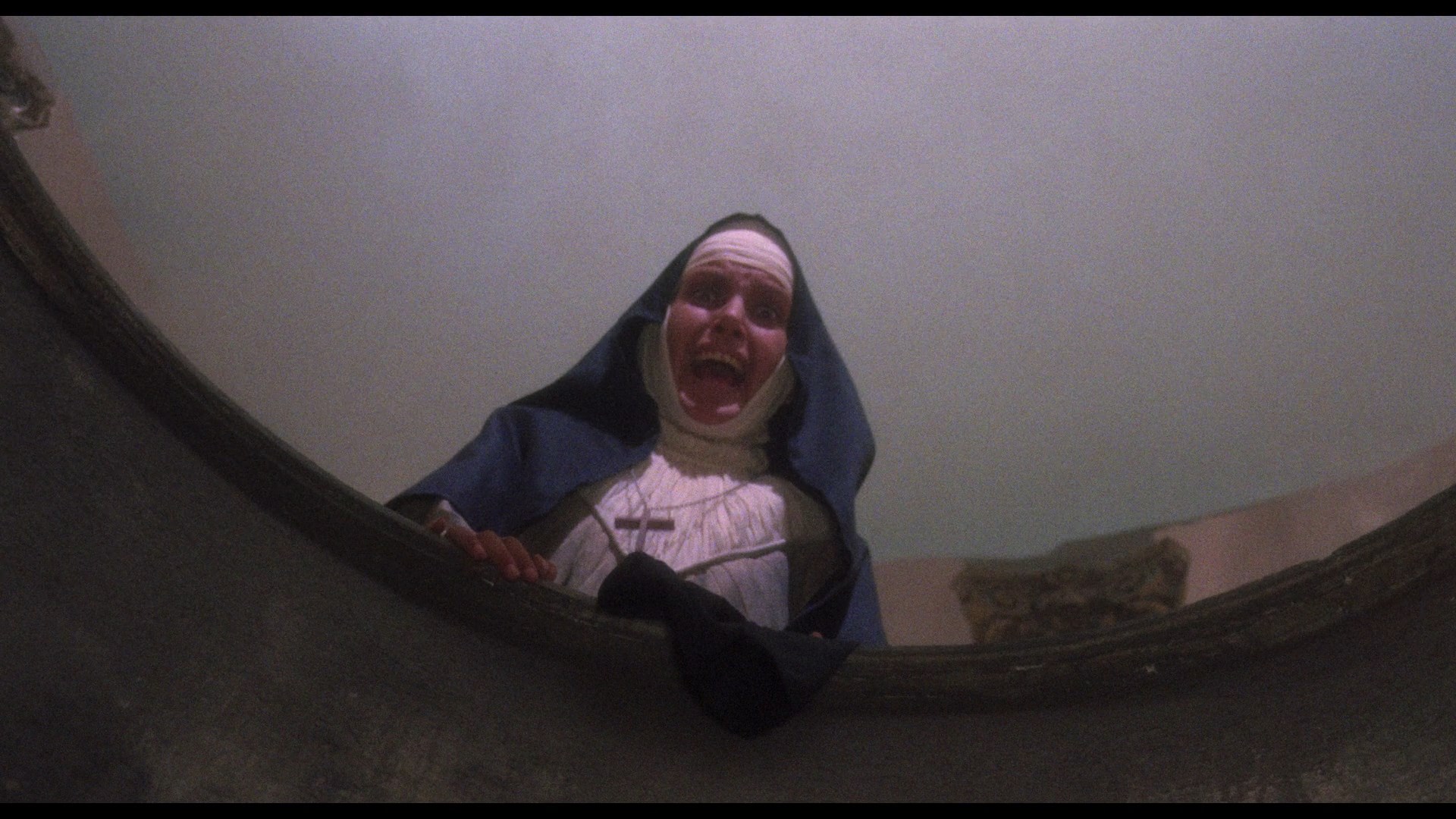 The Severin Blu-ray is a major improvement in every way, presenting the film in a new 2K scan from the original negative and finally running uncut (nearly ten minutes longer than the DVD). It's also far more detailed and brighter compared to the Media Blasters disc, which was drenched in noise reduction by comparison to tame what is a naturally grainy film. The LPCM Italian 2.0 mono audio sounds immaculate and features optional yellow English subtitles. Also included is a new audio commentary by Kat Ellinger who enthuses about her love for D'Amato while covering the intersection of nunsploitation and pornography, the state of Italian cinema around the turn of the decade, the film's domestic reception, and the conventions of the subgenre being used and manipulated here. You also get a fascinating 25m21s reel of deleted scenes, featuring quite a few bits of character extensions and, most notably, a great climactic bit involving the statue that goes into pure fantastique territory and would've been a great addition to the feature itself. This footage doesn't have any existing audio so Ellinger provides commentary here as well, positing what's likely going on and how it would've impacted the storyline.