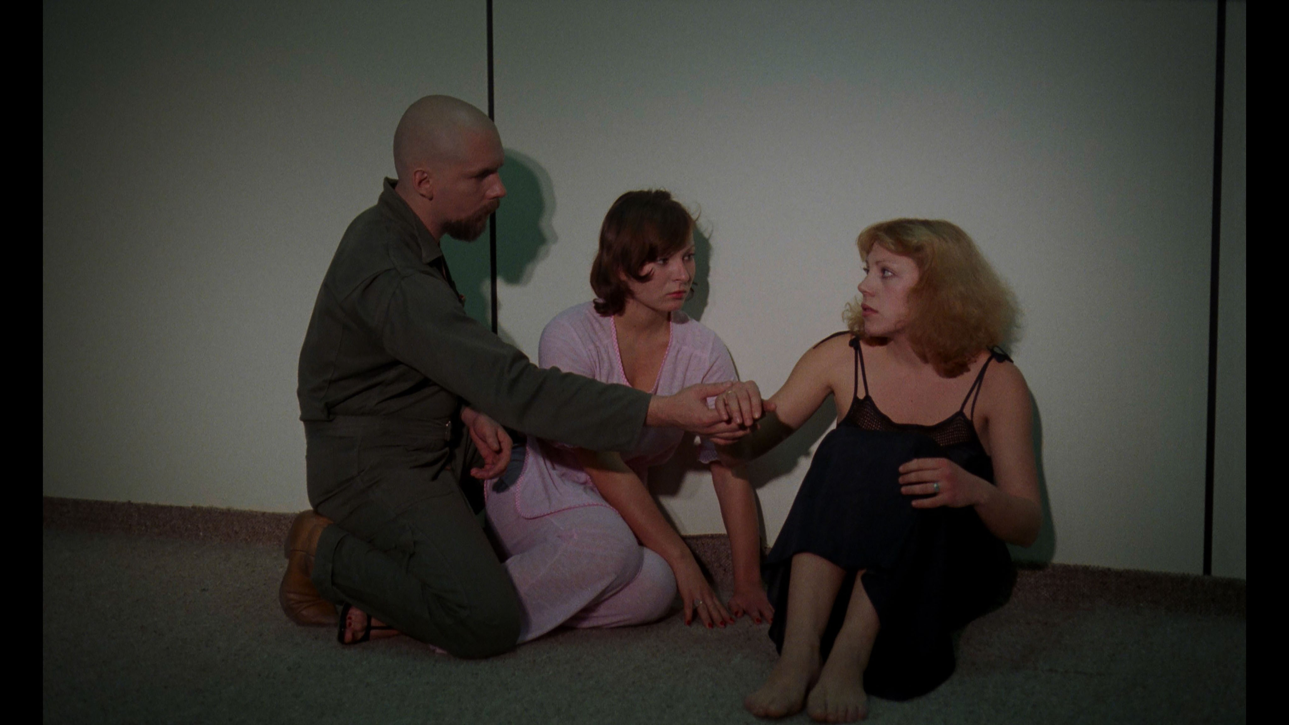 In 2023, Indicator revisited Rollin's film as separate 4K UHD and Blu-ray editions, a limited edition of 10,000 numbered units (6,000 4K UHDs and 4,000 Blu-rays) for the U.K. and U.S. In keeping with their other Rollin upgrades, it's a stunning improvement with excellent detail, beautifully rich colors, and a completely clean, impeccable presentation without the visible damage present on the earlier transfers. The UHD is quite the viewing experience with HDR bringing out some punch in the colors like never before, especially those hellish symbolic reds that pop up throughout the film. The French 1.0 mono track comes with optional improved English subtitles and also sounds excellent. Carried over here from the earlier Blu-rays are the two partial commentaries, a new 1m41s edit of the Rollin '98 intro, a revised and updated version of the "Perdues" doc (19m45s), the Plumey interview, a cleaned-up "Forty Years Together" (16m21s) edit of the Wallman interview, a refined and now illustrated 15m29s edit of the Lahaie interview now called "A Delectable Presence," the two softcore scenes, the hardcore reel, a quick 2m43s interview with Rollin at Montreal's Fantasia Film Festival in 2007, the French trailer, and a visually upgraded HD version of "Le Pont." A new audio commentary by Tim Lucas expands on his earlier liner notes, starting off with a comparison to Night of the Hunter and moving through the visual themes and motifs of Rollin's fantastic cinema present here, the ways it departs from what was expected at the time, the approach to dream logic and memory loss, and echoes of other sci-fi and horror films from the previous two decades. In "The Gulf of Emptiness" (20m47s), Stephen Thrower explores the significant departure this film marked from the vampire cycle in particular, the rocky state of genre cinema in France, the relief this marked while Rollin had been toiled recently in adult cinema without much enthusiasm, and the updating of Gothic narrative elements here in an austere, modern setting. A 56-image gallery of photos and promotional material is also included, while the package comes with an 80-page book featuring a new essay by Ruairí McCann, archival notes by Jean Rollin, an archival Lahaie interview with actor Brigitte Lahaie, and film credits.
