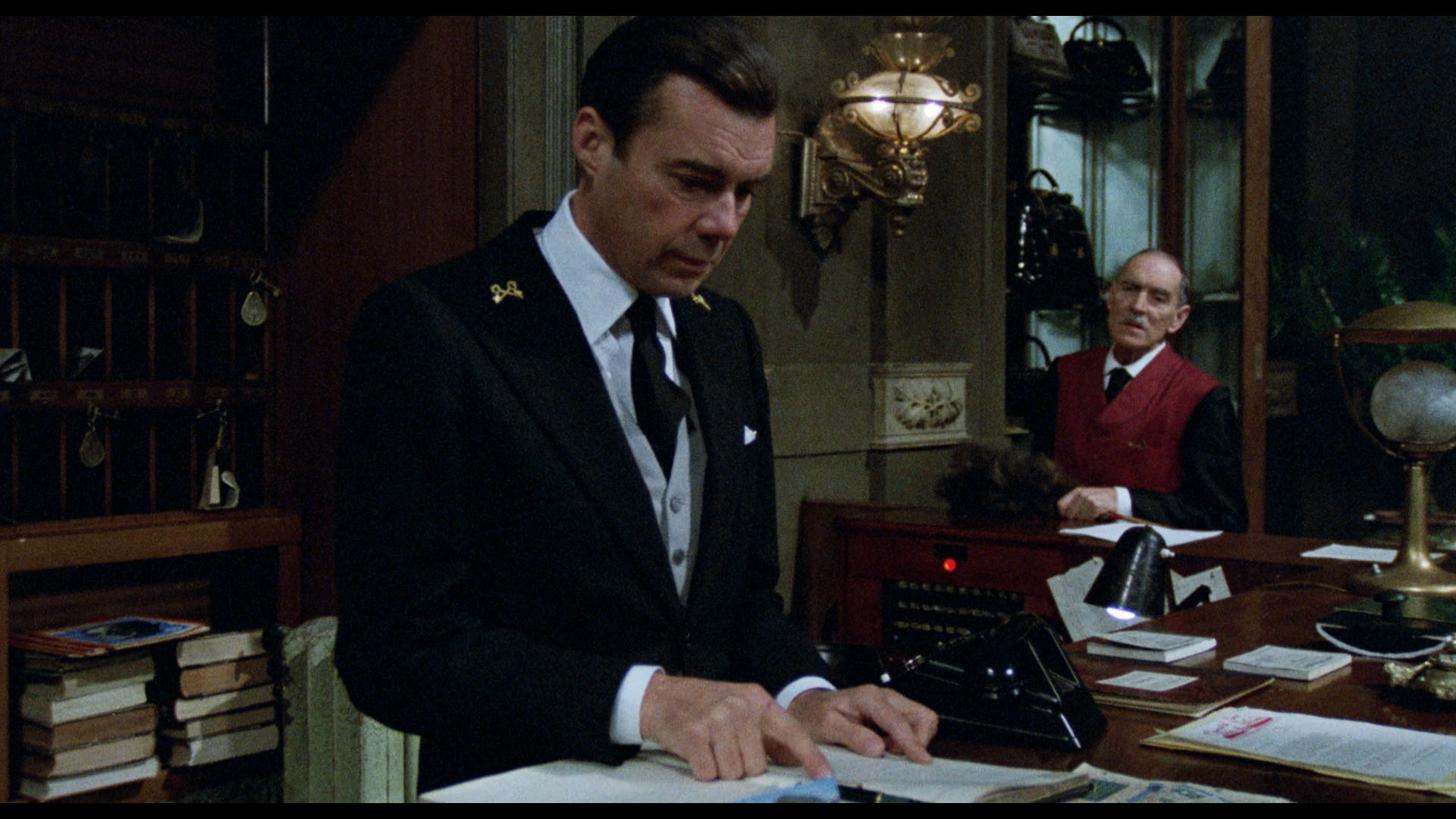 In 2018, the film underwent an extensive restoration under Cavani's supervision that made an appearance on U.K. Blu-ray in 2020 from Cult Films. The color timing and framing are close to what we've seen before, but there's a notable uptick in detail here with fine texture in hair, clothing, and walls looking more tactile here throughout. The LPCM English mono track sounds pristine and features optional English SDH subtitles. Also, the Cult Films transfer runs nearly a minute longer than the 118m21s Criterion due to quite a few extra opening logos at the beginning. A new Cavani interview (37m20s) is a thorough account of her career from her early days founding a film club in school and working at RAI, where she worked on four documentaries about Nazis that exposed her to considerable concentration camp footage. She goes in depth about how that experience informed this film, as well as the casting process, the contributions of costume designer Piero Tosi, and how it was financed and released including the participation of United Artists that saved it at a crucial point. Then a new video interview with Rampling, "The Reality of Emotions" (30m28s), touches on her thoughts on the "extreme" love story, her friendship with Bogarde while doing The Damned together earlier, the fact that she'd just given birth before receiving the script, the importance of the project to Bogarde tied to his own harrowing experiences during the war, the outraged reaction of Pauline Kael, and the sudden surge of interest in the film after a disappointing initial opening in France.