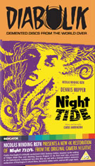 by cult horror director Curtis Harrington (Games), this bizarre little tribute to both experimental cinema and Val Lewton's methods of "suggestive terror" is one of the more memorable independent films of the 1960s. Rarely seen for years after its initial release in any form other than choppy TV screenings or blurry public domain titles, Night Tide was given its due with a variety of restorations on laserdisc, DVD and eventually Blu-ray, each improving significantly upon its predecessors. A sailor on shore leave, Johnny (a very young Dennis Hopper) roams along the coastal boardwalks of Southern California and encounters many of the local residents. He meets and immediately falls in love with Mora (Linda Lawson), who poses as a mermaid in a local sideshow. Their romance takes a sinister turn when Johnny begins to suspect that Mora may in fact be a cursed sea creature who murders a hapless man during every lunar cycle, but the answer to the mystery isn't quite what he expected.