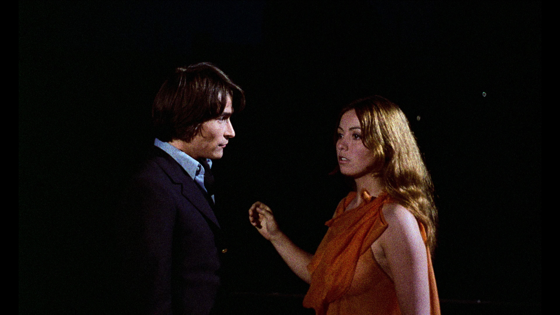 A new audio commentary by the always engaging Kevin Lyons and Jonathan Rigby takes you through the peculiar landscape of Rollin's cinema and touches on his manipulation of vampire, pulp novel, and comic art tropes, the transition in Euro vampire cinema taking place that would reach fruition in the more sexually liberated 1970s, comparisons to Rollin's prior feature, the reception by the French press, and the ideas established here that would blossom in his later work. Video extras here include a slight polish of the '98 Rollin intro (5m26s), an updated revision of the "Journey" featurette by Rollin assistant Daniel Gouyette as "Le Passage" (8m54s) with Natalie Perrey, Jean-Noël Delamarre, and Jean-Pierre Bouyxou, and a streamlining of the "Memories" featurette here as "Fragment d'un dialogue" (19m23s) collecting Rollin interview highlights with Gouyette from a five-year period up to 2003. New here are "An Anarchist Vampire in Paris" (5m26s), with archivist Lucas Balbo explaining how his father's friendship with Rollin and their association with the Fédération Anarchiste provided an unusual gateway to these films, and "Countercultural Gothic" (10m2s) with the always insightful Virginie Sélavy parsing out the film's place within the uniquely French strain of the hippie movement and its aesthetic ties to what was going on in pop culture. Also included are the French and English trailers, plus hefty galleries for promotional and publicity material (104 images), behind the scenes (59 images), and additional photography (46 images). The limited edition package also comes with an 80-page book with a new essay by David Jenkins, an archival Rollin intro and interview highlights from 1973 and 1996, and a dive into Lettrist artist, filmmaker, and Rollin collaborator Maurice Lemaître.