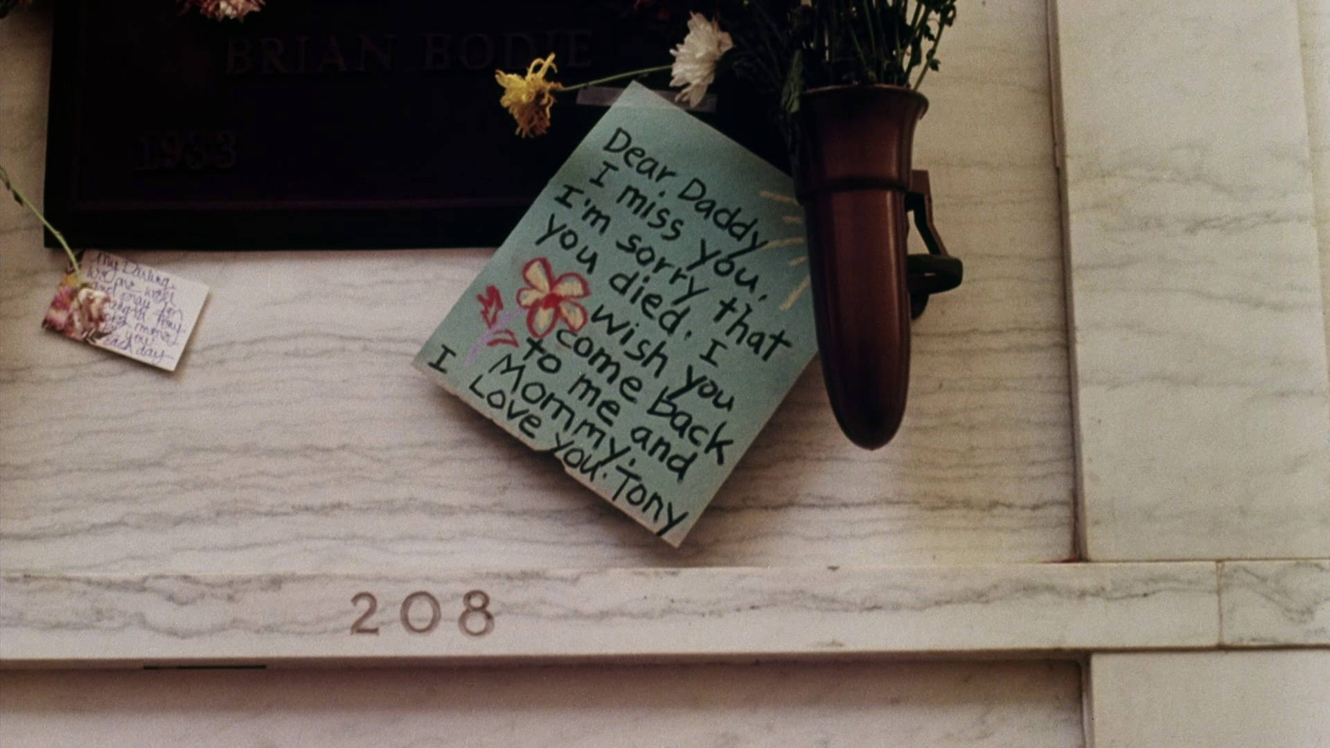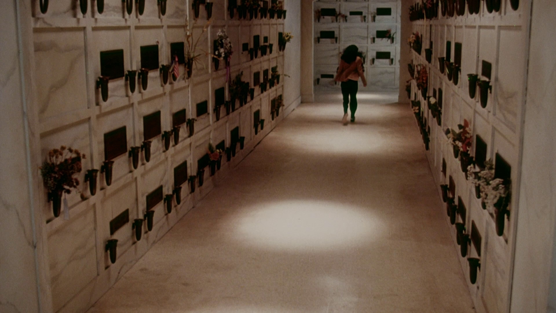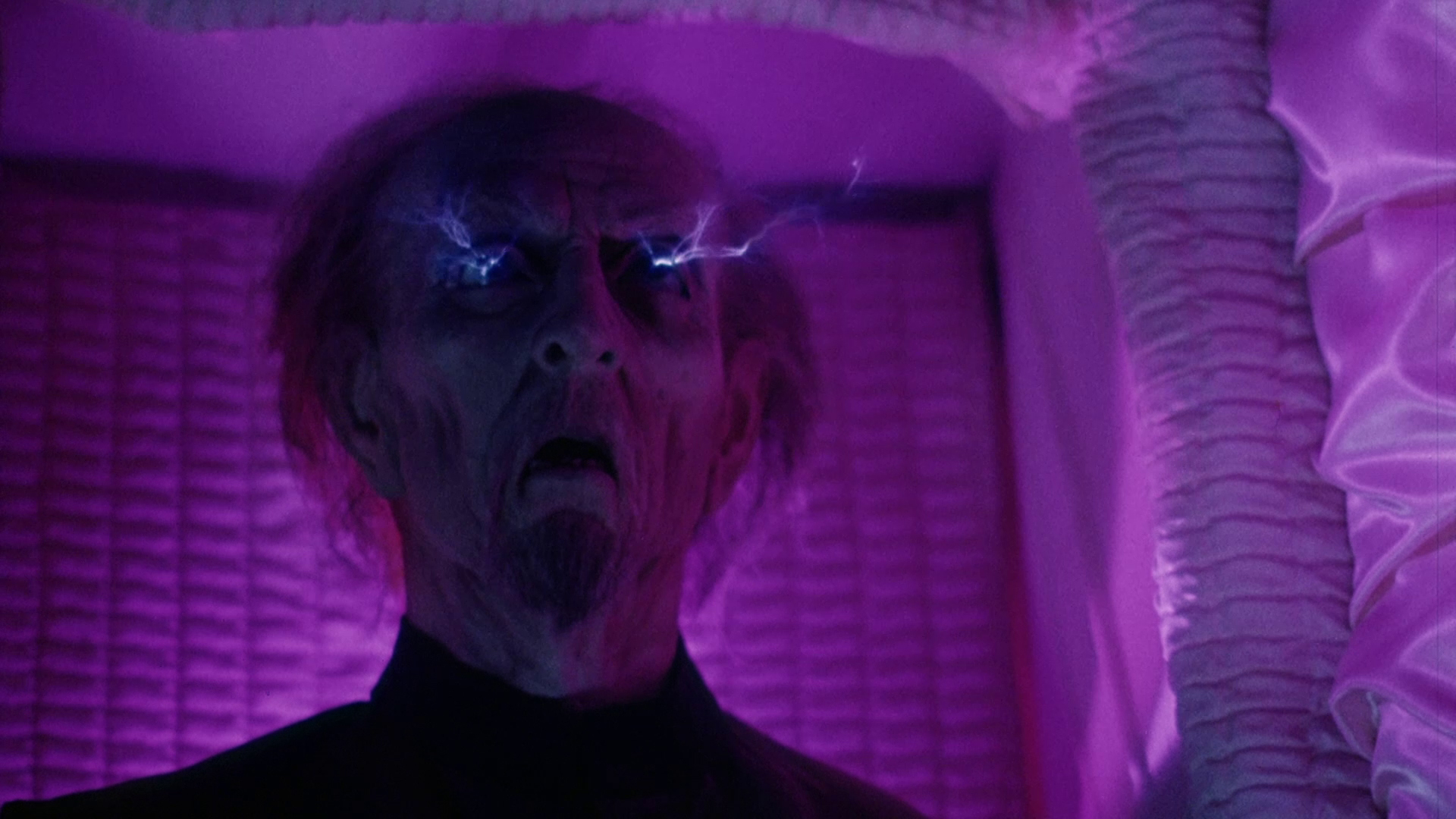 license"), the reshoots on the film including all the Newman footage including the opening scene, the low budget (a bit less than the million they hoped for), the importance of the red Mustang, the connection to John Frankenheimer's Prophecy, and lots more. The volume of the film itself is way too loud during the track, but it's worth sifting through for a more recent, detailed perspective on the production. The theatrical trailer is included at last, but the real good stuff here is the barrage of new interviews starting off with McLoughlin (16m15s), credited here as "Tommy McLoughlin" just to confuse things further, who goes into his shock at the film getting a PG rating, more about the financing, the origin of that toothbrush business, and the film's reception in the horror community. He also reveals the celebrity source for Raymar's face, which is... kind of shocking, and chats a bit about his later projects. Up next is a new interview with Daily (32m3s), which touches on this film a bit but really encompasses her entire career with a focus on her '80s work, ranging from Street Music to Wacko to recording the big single for Summer School. Schroeder returns for a new interview (14m42s) inside the stage where they shot the mausoleum scenes, going into more detail about how it was all constructed on a limited budget with an ability to do some elaborate lighting and camera tilting effects. He also mentions some of
