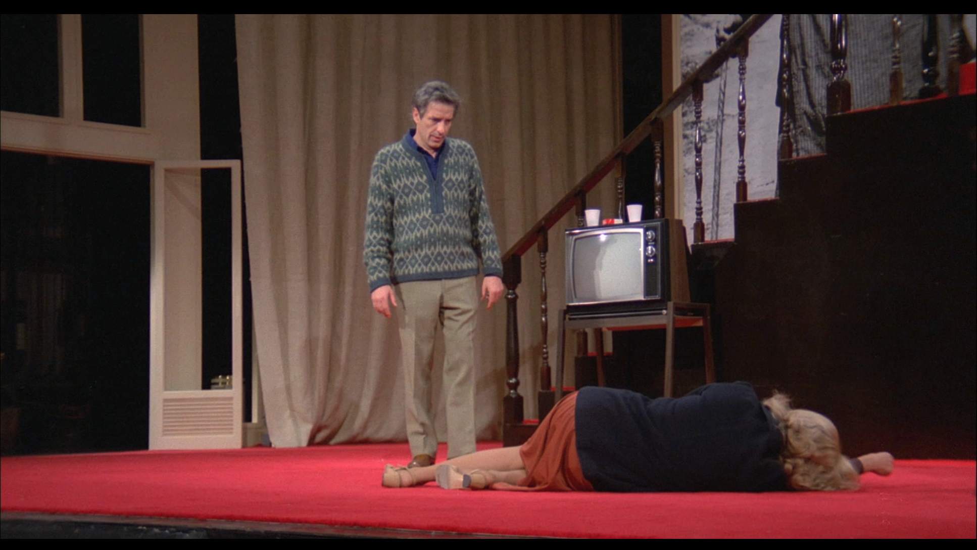 That same commentary appears again on both iterations in the dual-format 2013 BFI release, containing a Blu-Ray and DVD. The otherwise bare bones Blu-Ray wisely fills up the dual-layered disc to the max and looks spectacular; the wide shots of the theatrical performances in particular are much more vivid and impressive than ever before, with an often shocking clarity and richness of color lost in past transfers. It's a sterling presentation and likely the definitive A/V edition for a very long time to come. The DVD adds on two solid video extras: "Memories of John," a half-hour 1993 video chat with Falk and Ruban about life and work with the filmmaker, and the much briefer (13 minutes and clip heavy) "Falk on Cassavetes," in which the late actor recalls working with his frequent director, whom he felt regarded the role of love in humanity with a broader, unflinching perspective than most. Also included is a hefty insert booklet containing a chapter on the film originally written by Charity for the book John Cassavetes: Lifeworks, a Monthly Film Bulletin print interview with Cassavetes about the film, a brief Ruban remembrance about making the film and getting into a violent fight with Cassavetes during the production, an additional appreciative essay by Peter Bogdanovich, and a Charity bio of Cassavetes.
