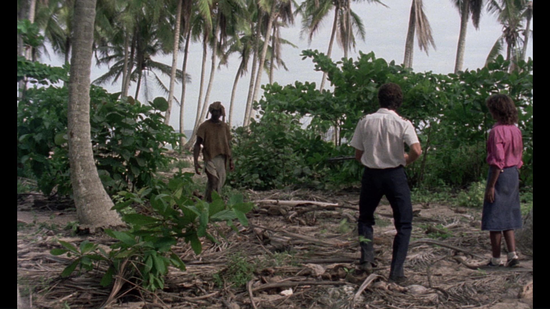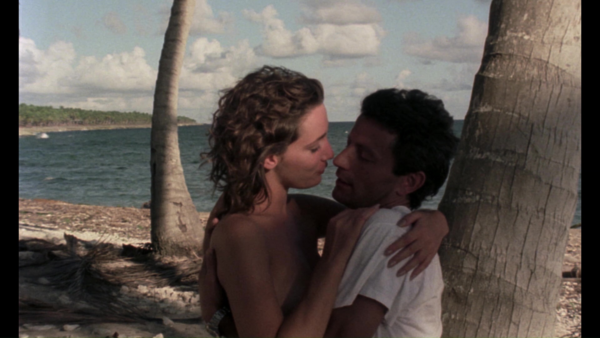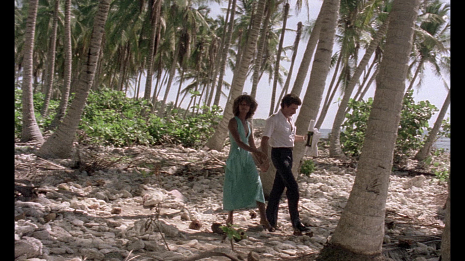 natural tropical colors and very fine detail (maybe too fine in some shots!). Some white specks pop up here and there, indicating there hasn't been ton of clean up but also confirming the original grain structure has been left intact here. Compared to the older DVD some drastic framing differences are obvious throughout, opened up to 1.66:1 here versus the earlier 1.78:1 and featuring major additional info on the top and left while losing some from the bottom and right. The opening