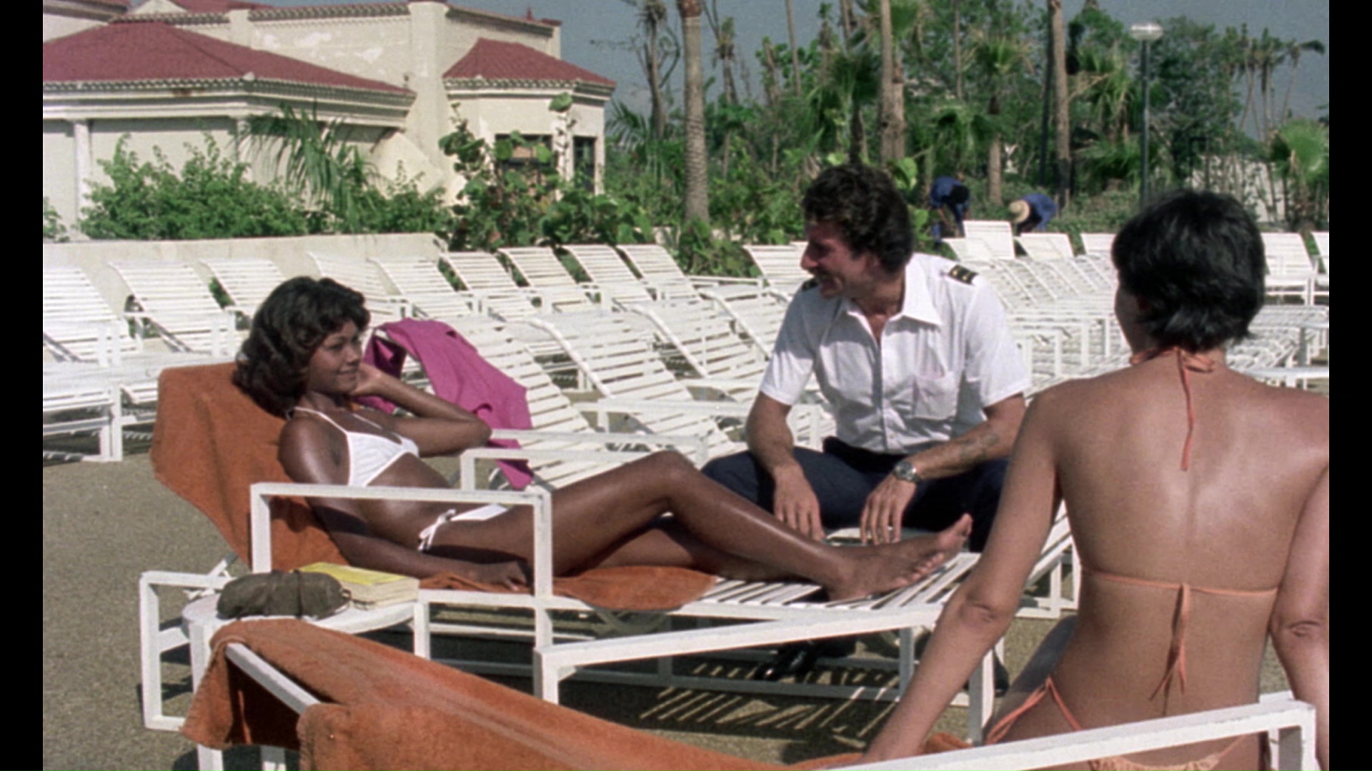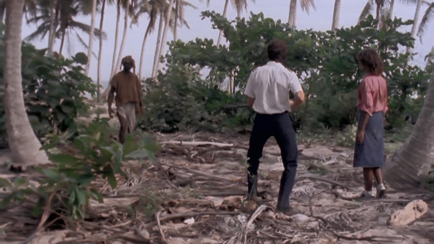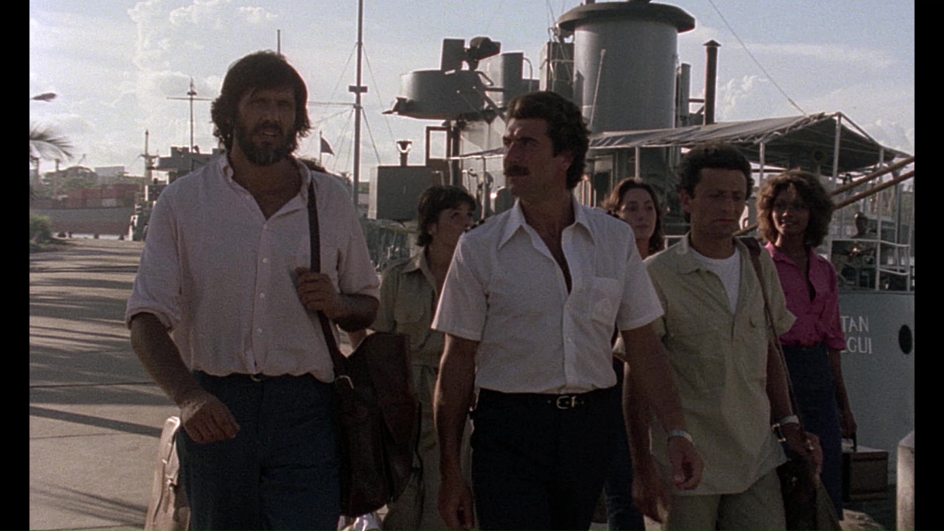 natural tropical colors and very fine detail (maybe too fine in some shots!). Some white specks pop up here and there, indicating there hasn't been ton of clean up but also confirming the original grain structure has been left intact here. Compared to the older DVD some drastic framing differences are obvious throughout, opened up to 1.66:1 here versus the earlier 1.78:1 and featuring major additional info on the top and left while losing some from the bottom and right. The opening