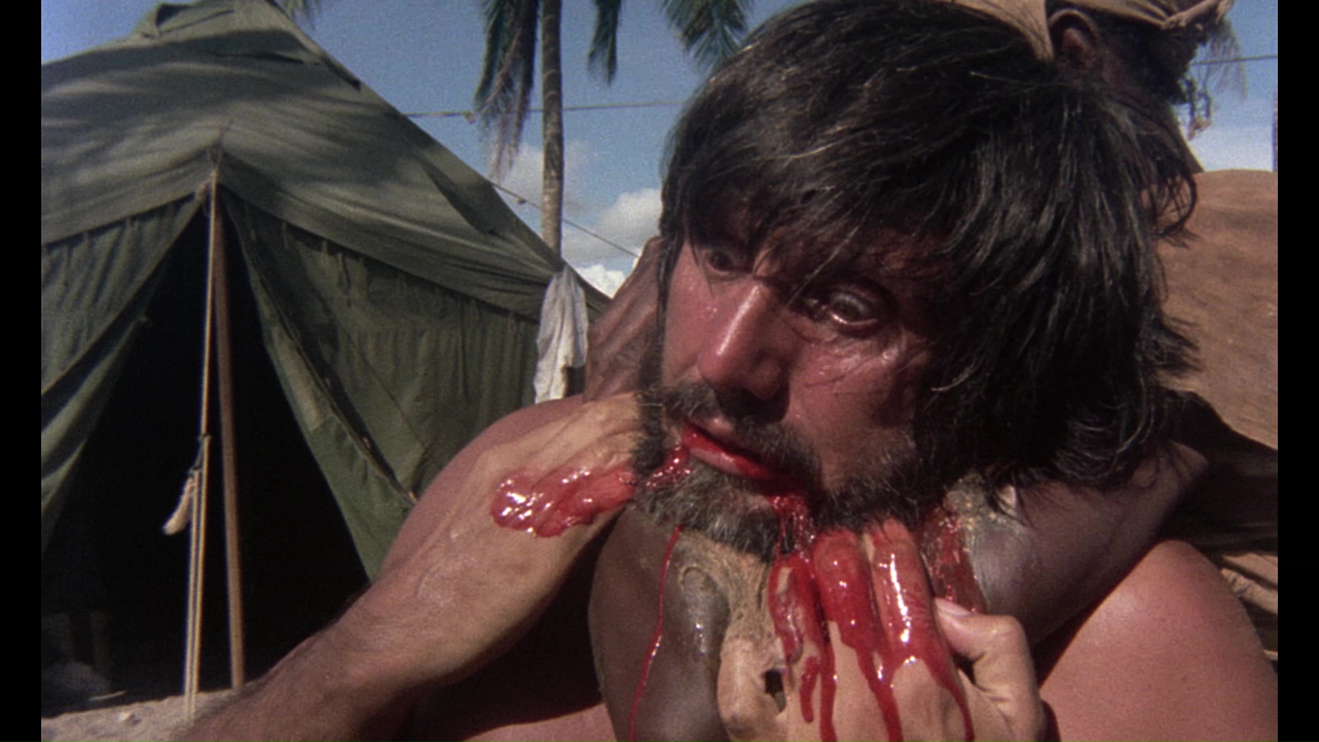 titles are completely different as well, shown in white text here versus the orange seen on the DVD and with different timing as well. (See below for comparisons.) The DTS-HD MA Italian 2.0 mono audio is clear and quite punchy whenever the music kicks in. As for extras, "The Real Italian Stallion Part 1" (25m20s) with Shannon is basically a companion piece to his interview on the Erotic Nights disc, complete with a hilariously tacky opening title card. It's a fascinating look at the life of one of the most familiar names from the golden age of Italian adult films as he goes into his surprisingly prestigious family background, his other job pursuits before he went into movies, and his cycle of seven Santo Domingo movies made with D'Amato including this one, during with Funari's sudden refusal to do some scenes caused substantial production issues. Again the subtitles are incredibly bulky with a ton of text crammed on the screen, so prepare to do a lot of reading. Ported over from the Media Blasters DVD (the only significant extra from that earlier disc) is an unusually sedate Eastman interview (11m30s) covering his D'Amato collaborations including Absurd and their Caribbean detour around the turn of the '80s, with additional thoughts about other directors like Mario Bava, Pupi Avati, and Michele Soavi. Two theatrical trailers are also included along with a bonus one for Erotic Nights.