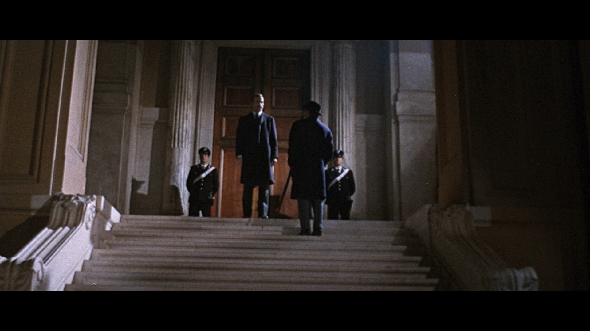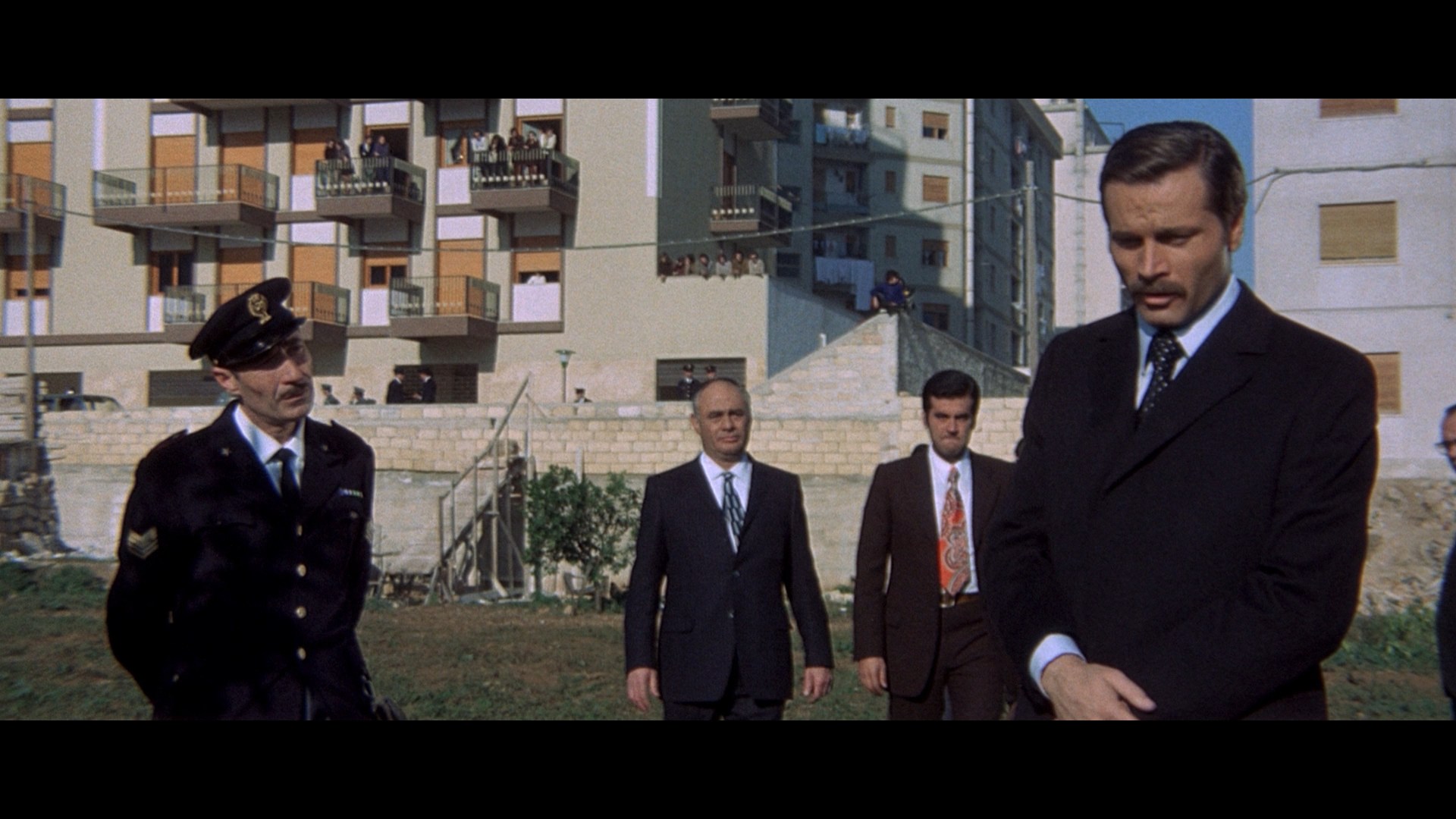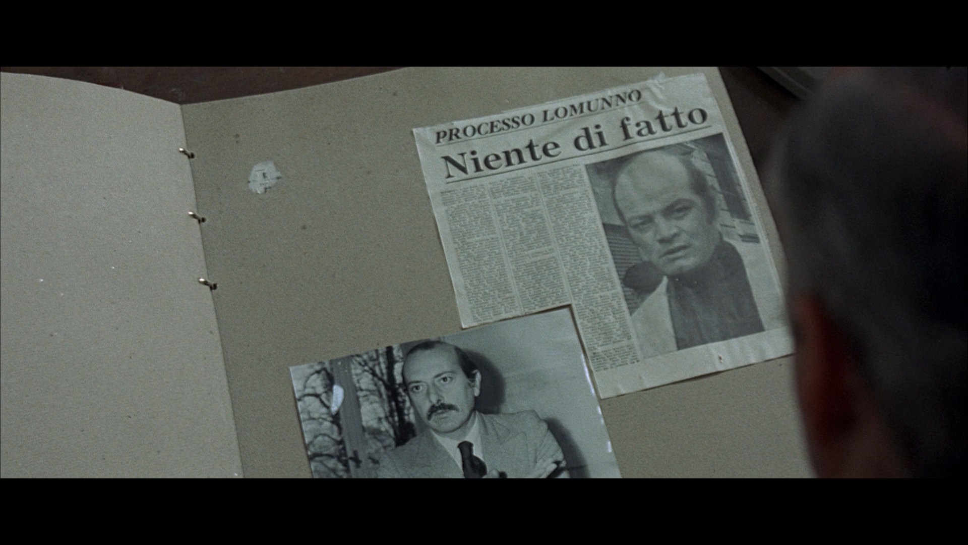 Films Blu-ray released in both the U.S. and U.K. comes from the same excellent 2K presentation as the German disc, featuring 1.0 mono English and Italian audio with optional English SDH or improved English-translated subtitles for their respective tracks. It's a bit of a toss-up which version to watch as the actors were almost entirely performing in English but with more care given to the mixing and dynamic nature of the Italian option. Try 'em both. The extras kick off with a new interview with Nero (29m15s) about his first job for Damiani, their films together, the intended casting of Ben Gazzara in the role that fortuitously went to Balsam instead, the moral lessons he learned from his Carabiniere father, the public response to this film, and more. Then you get an interview with actor Michele Gammino (22m47s) about making his debut with this film after working for Damiani as a dubber, the challenges of shooting in English, the importance of this film on his career, and the collaborative work he enjoyed with Balsam. An interview with editor Antonio Siciliano (26m49s) goes into the tweaks the film underwent in the post-production process, the cadence he established in key scenes like a lengthy confrontation between the two leads, and the conditions of working for companies like RAI and notable directors and producers of the period. Finally an insightful analysis of Ortolani's score is provided by Lovely Jon (31m) who contextualizes this within the maestro's output and the crime and jazz music idioms of the time, as well as notable collaborators like the members of I Marc 4. A 79-image gallery is also included, and the disc comes with a limited edition booklet which was announced as featuring an essay by Mark Shiel but instead has two archival Damiani interviews, "Justice Is Never Neutral" with Gerard Langlois and an untitled one with Guy Braucort, both from 1972, covering American noir, the relationship between the law and organized crime, and more. Radiance Films (Blu-ray)